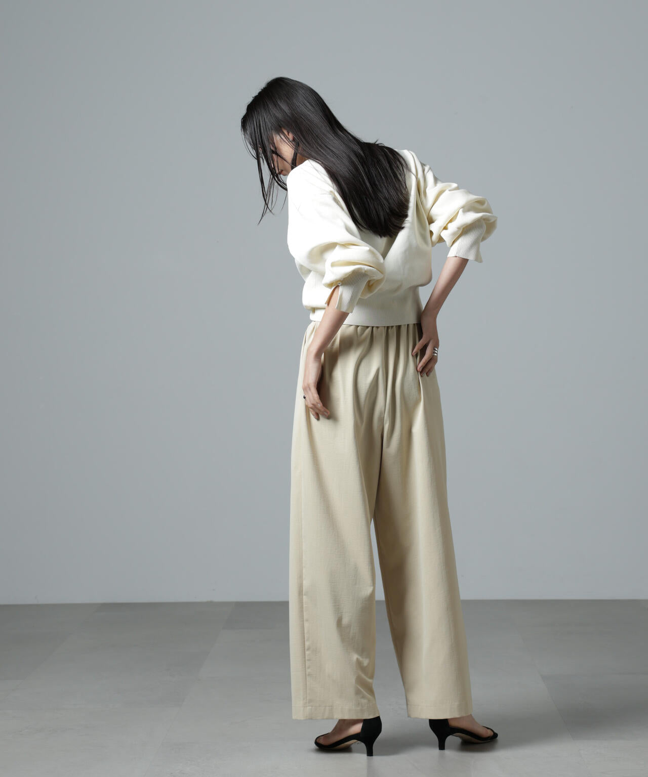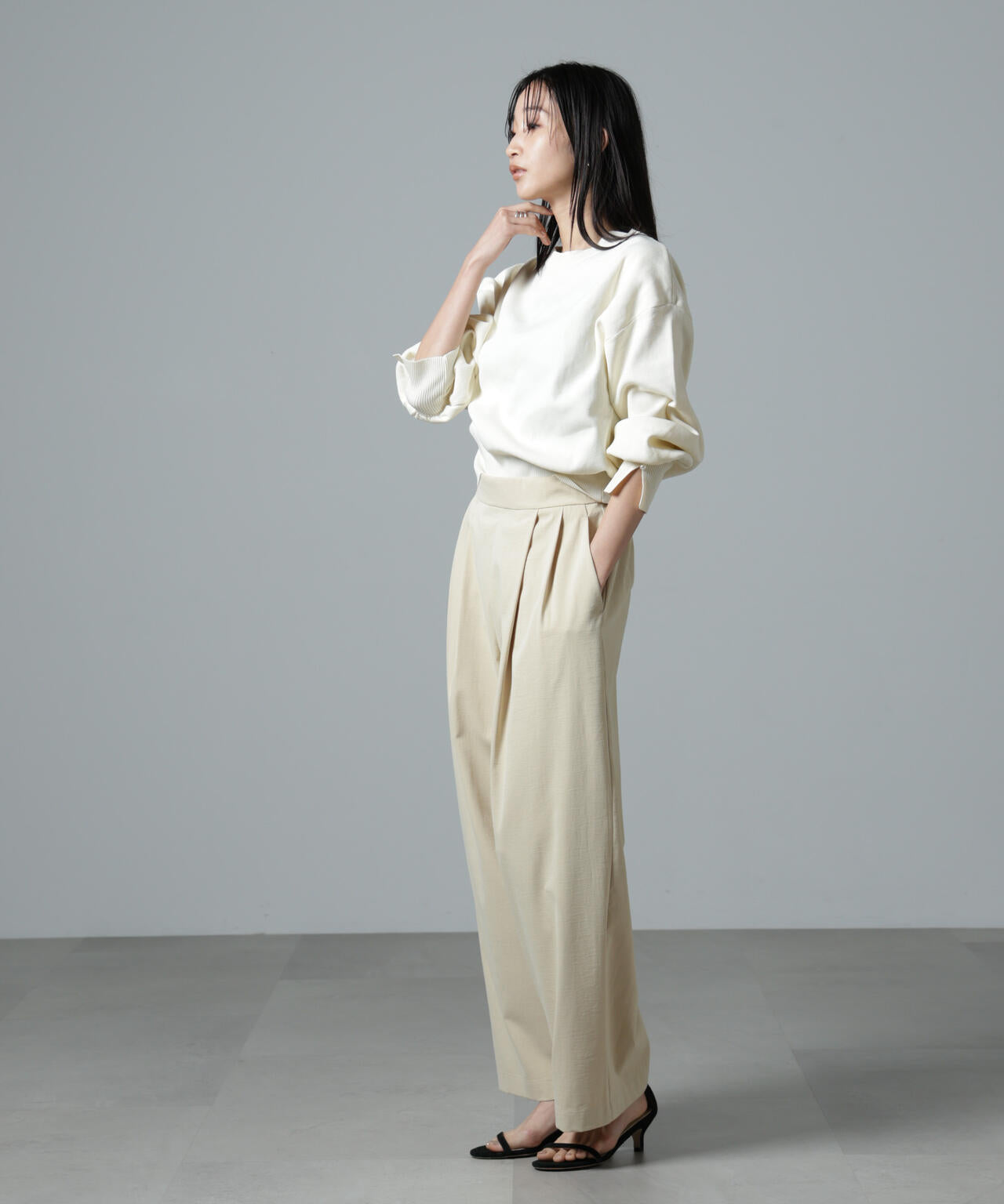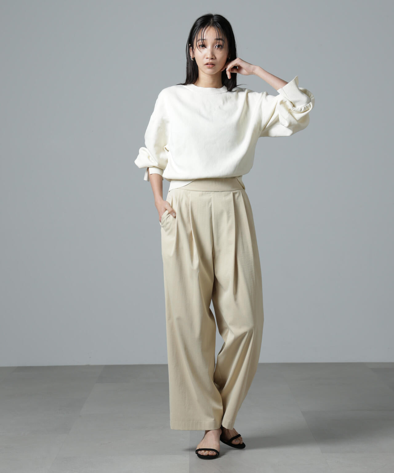 ・ハイウエストパンツや、プリーツやフレアスカートとも好バランスで着こなせる一着