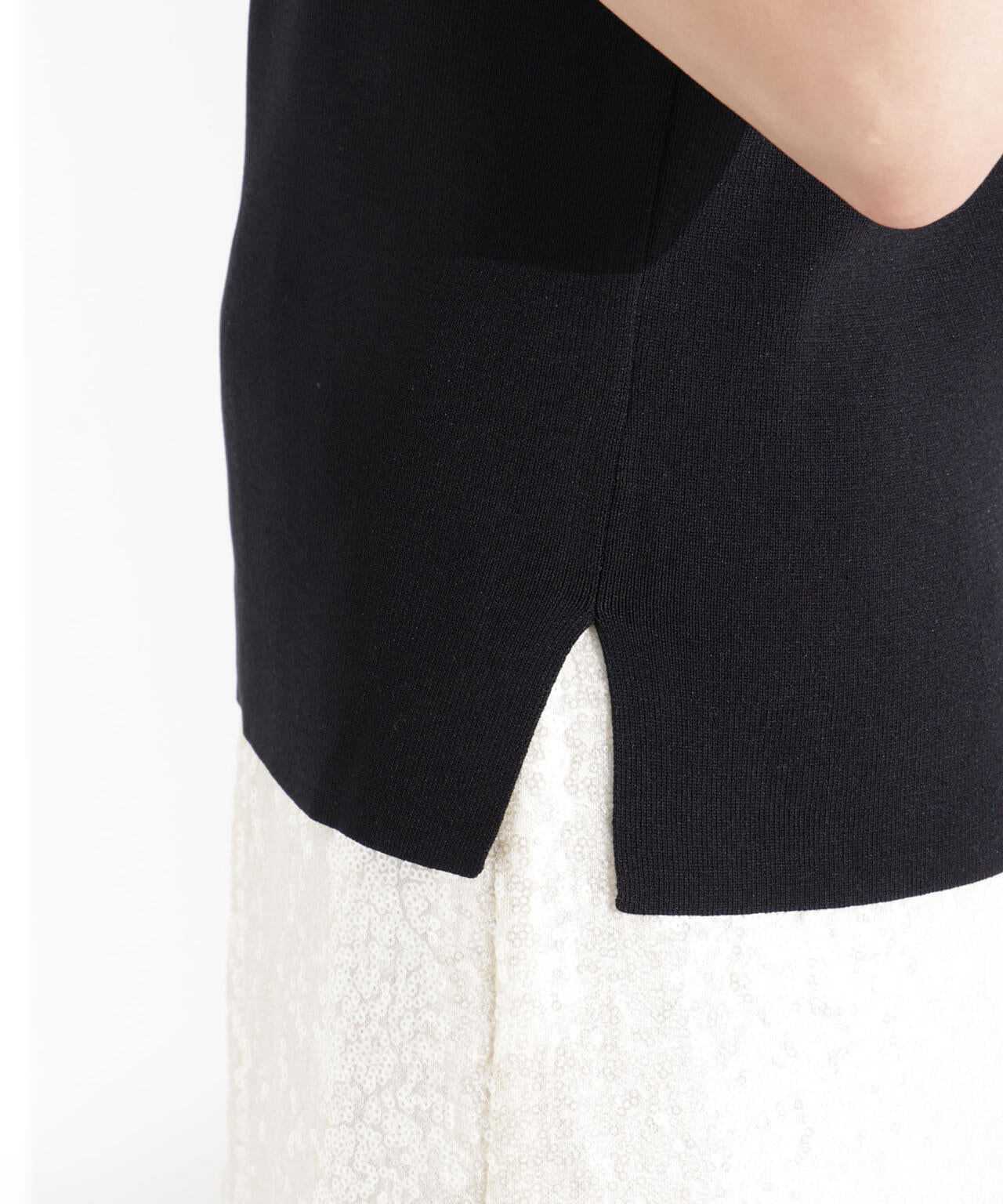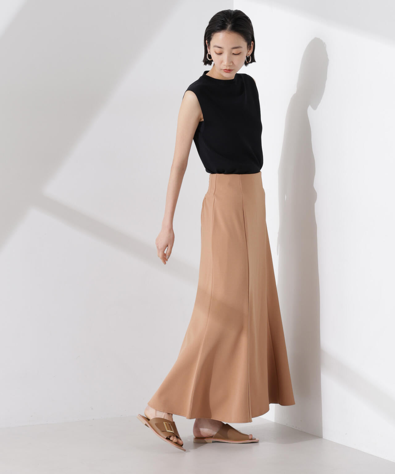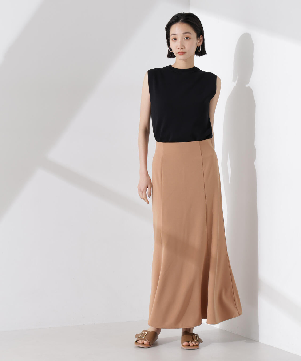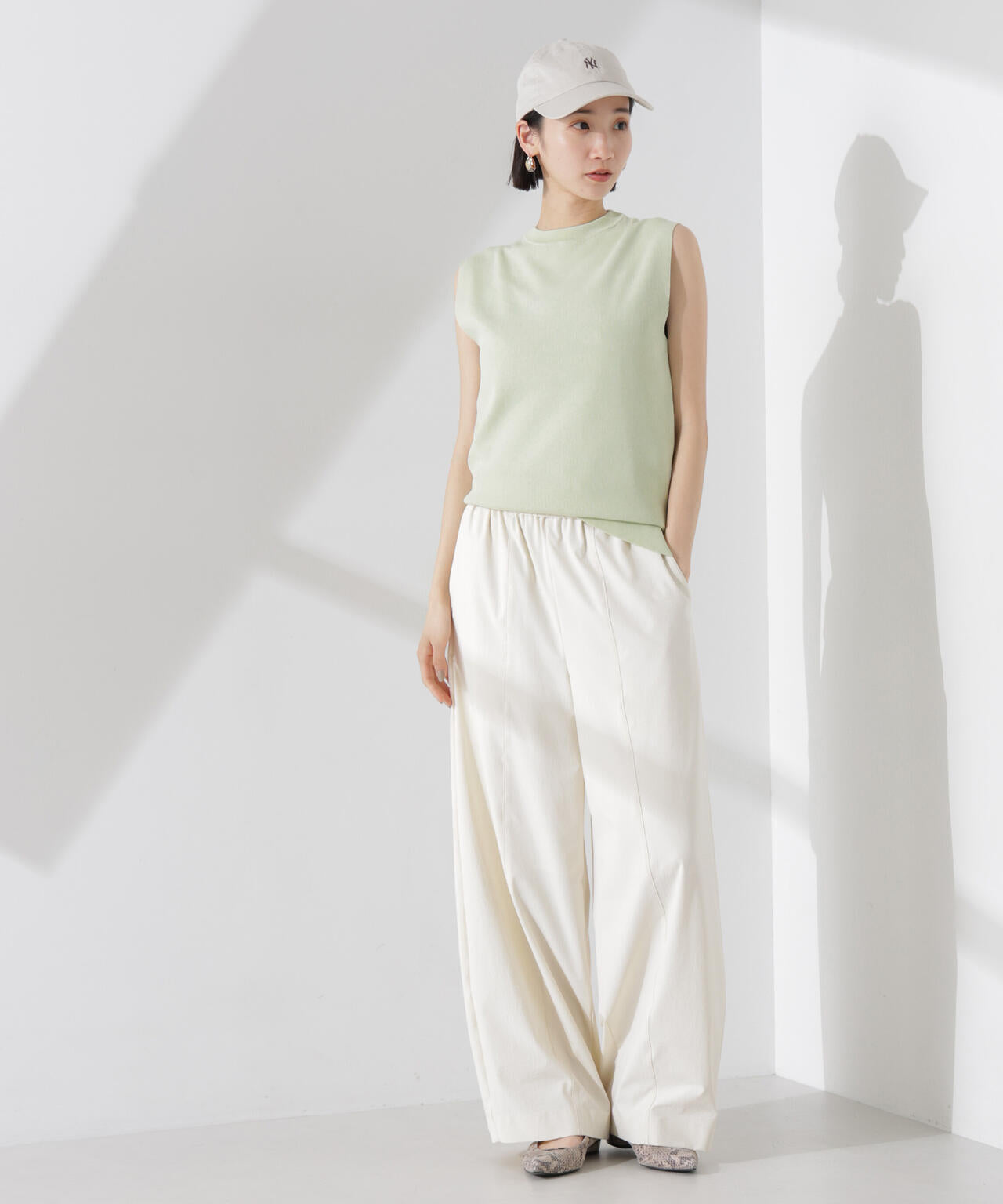 ・詰まった首元とノースリーブが好バランスな一着