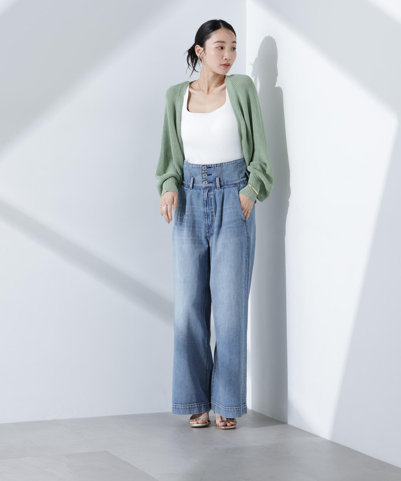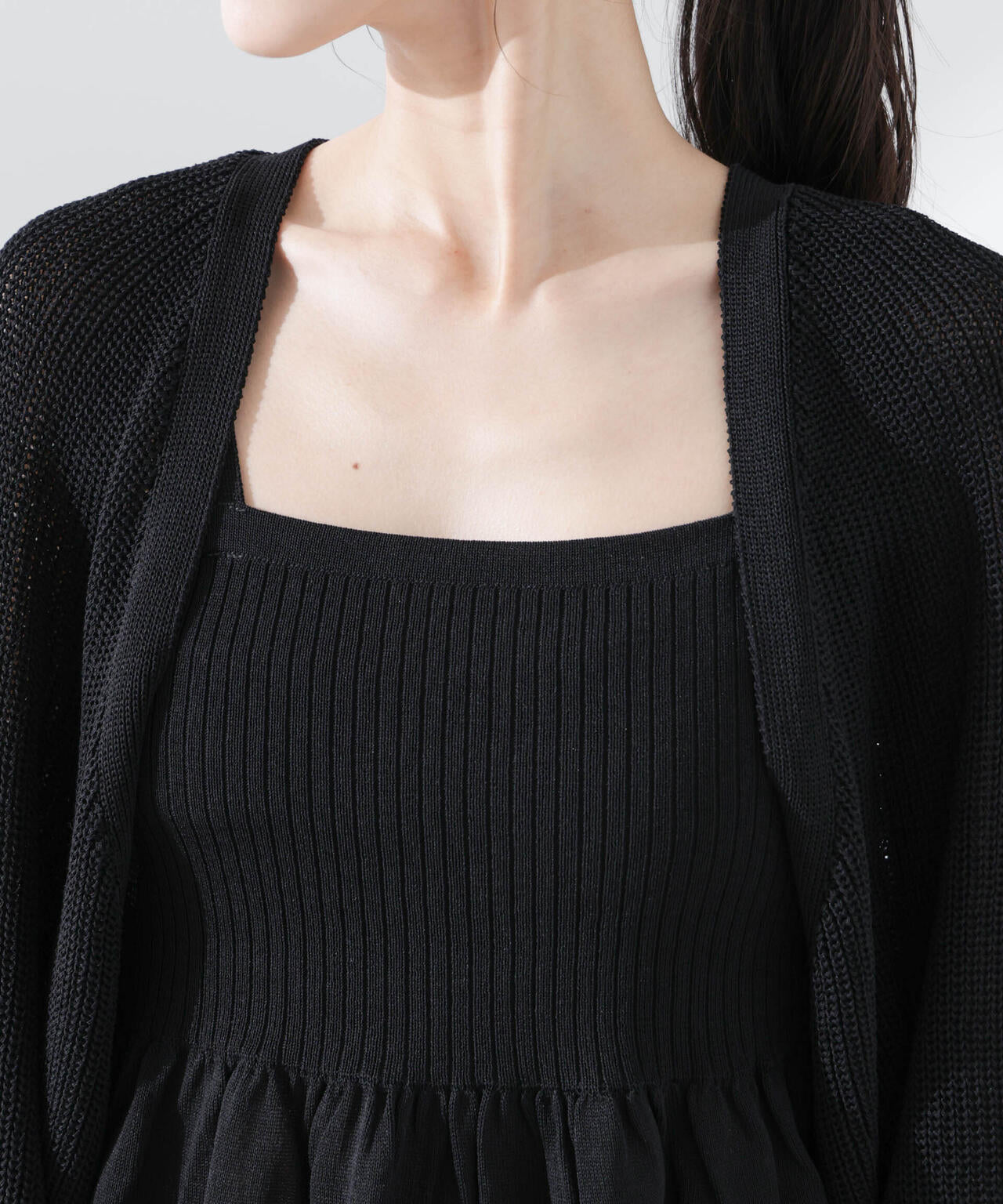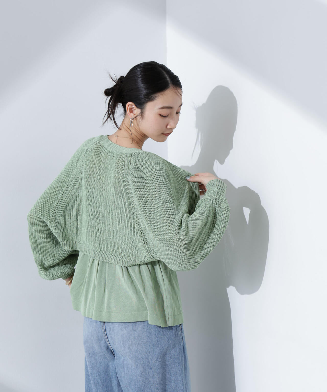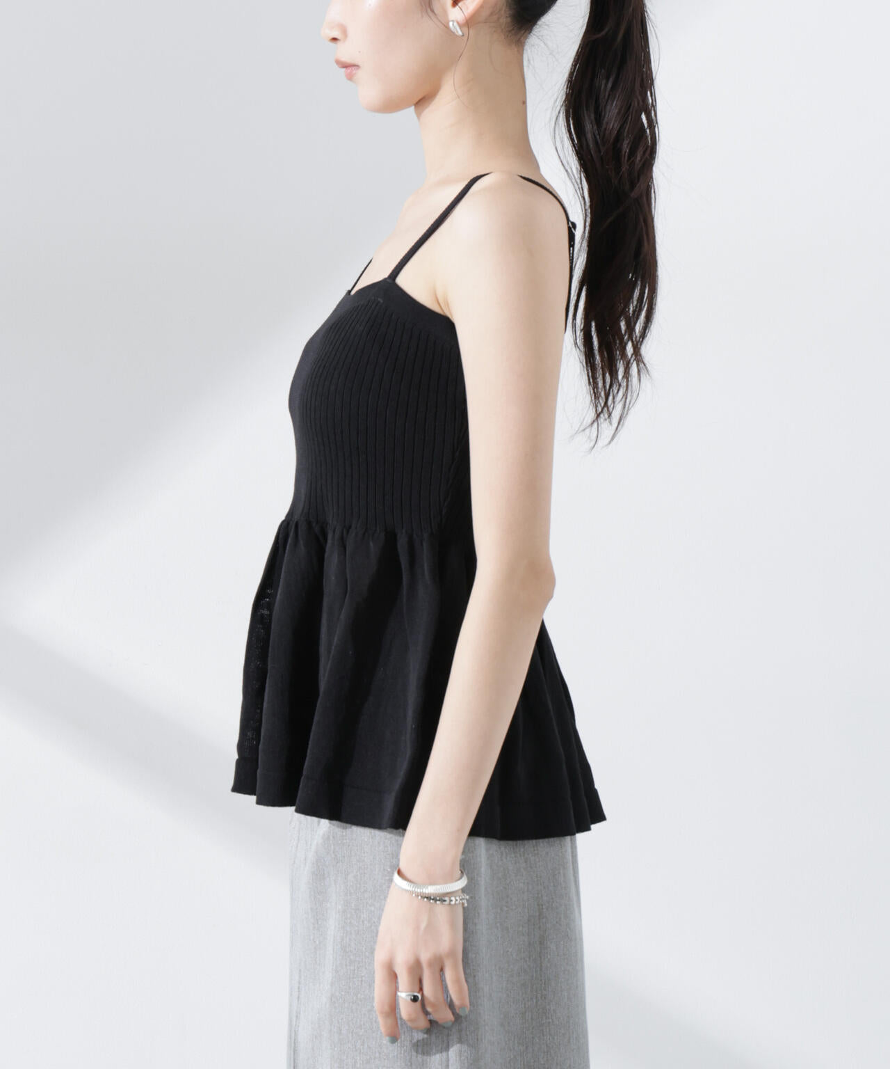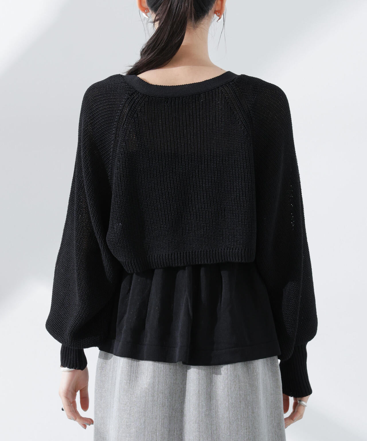 キャッチーなペプラムシルエットのキャミソールと、ショート丈ボレロのニットアンサンブル。セットで着用してトレンドスタイルが様になるだけでなく、それぞれ単品でも着回しやすく、コーディネートの幅が広がる万能アイテムです。