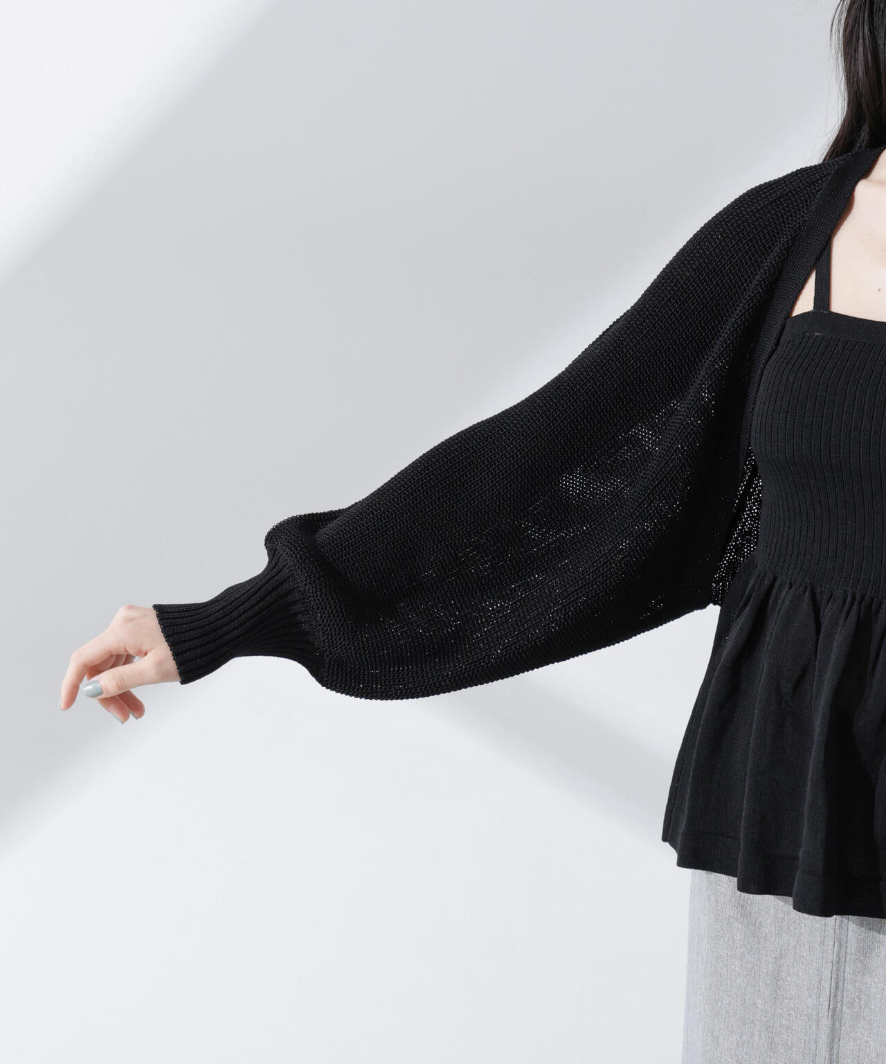 ・さらっと羽織りやすいフロント留めなしのボレロ