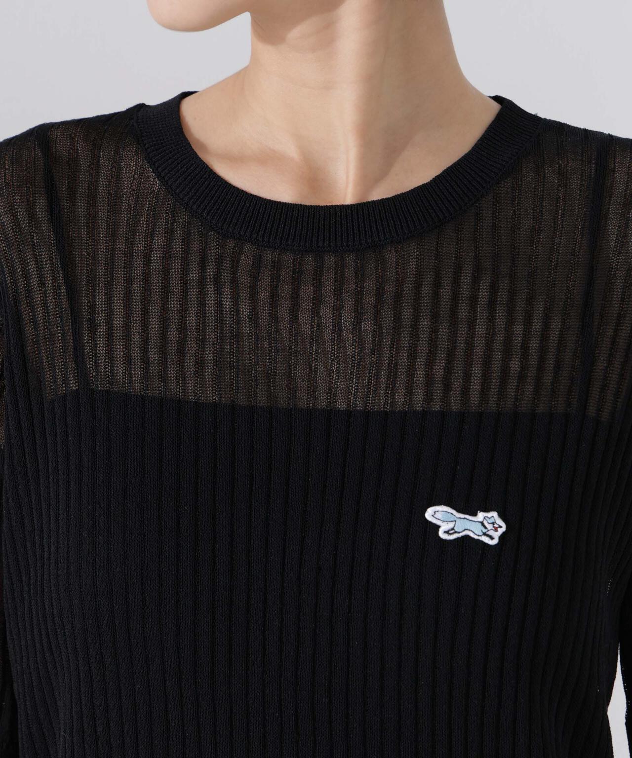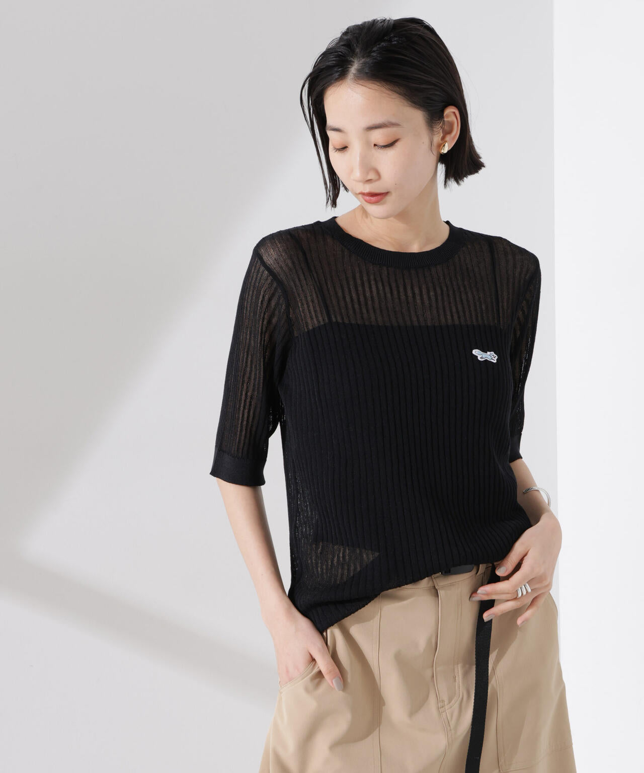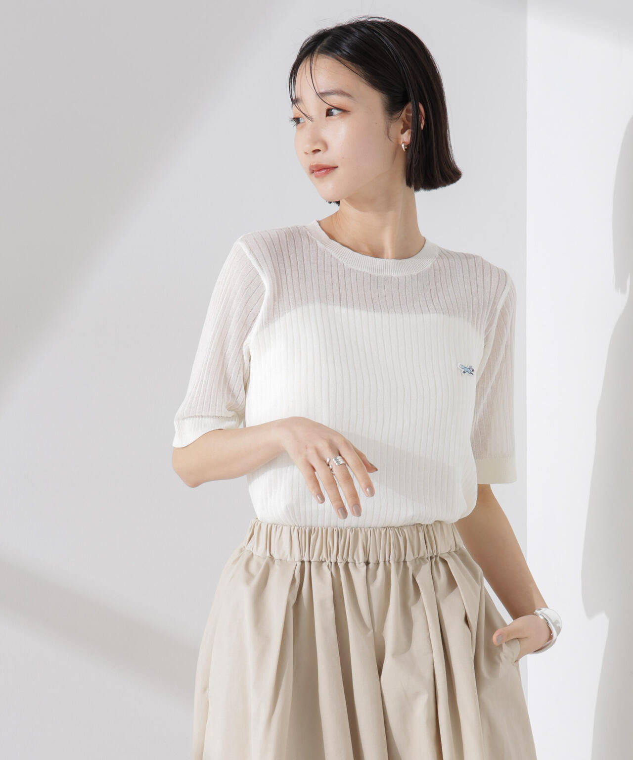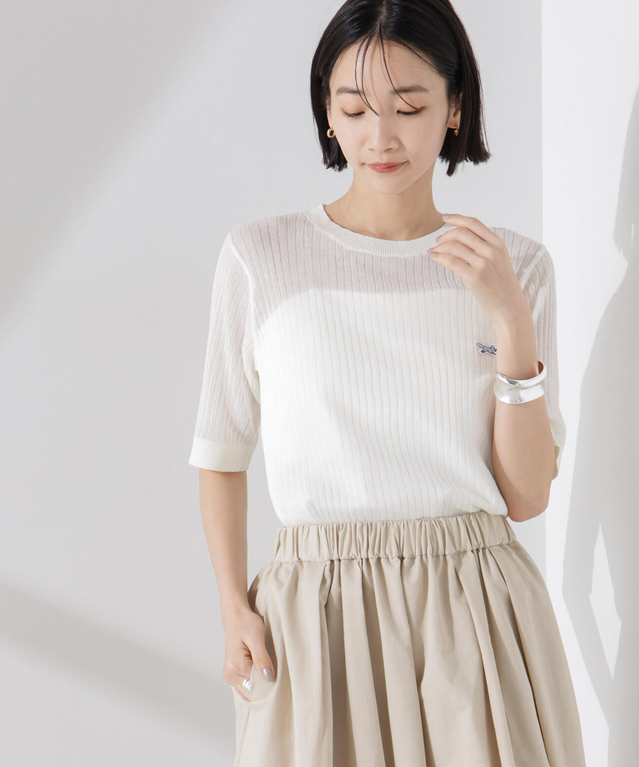 程良いシアーの透け感とリブデザインが上品な雰囲気のニットトップス。身体のラインを拾わないややゆとりのあるシルエットで、インナーも合わせやすいデザイン。ワイドパンツやフレアスカート等、シンプルなボトムスと相性の良い一着です。