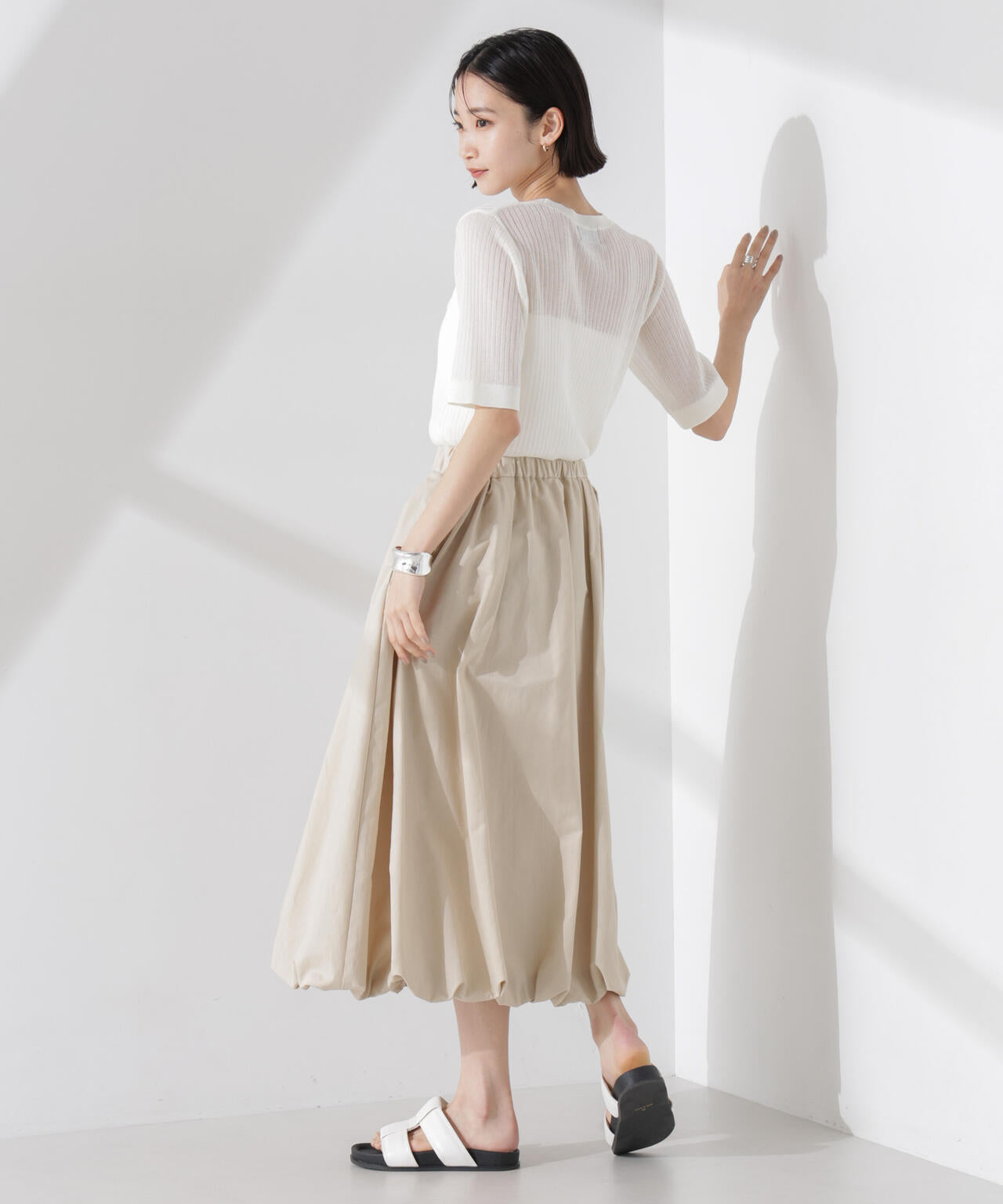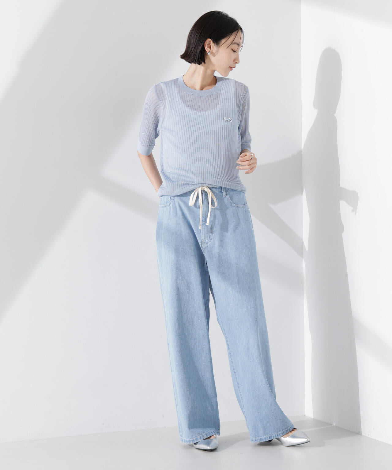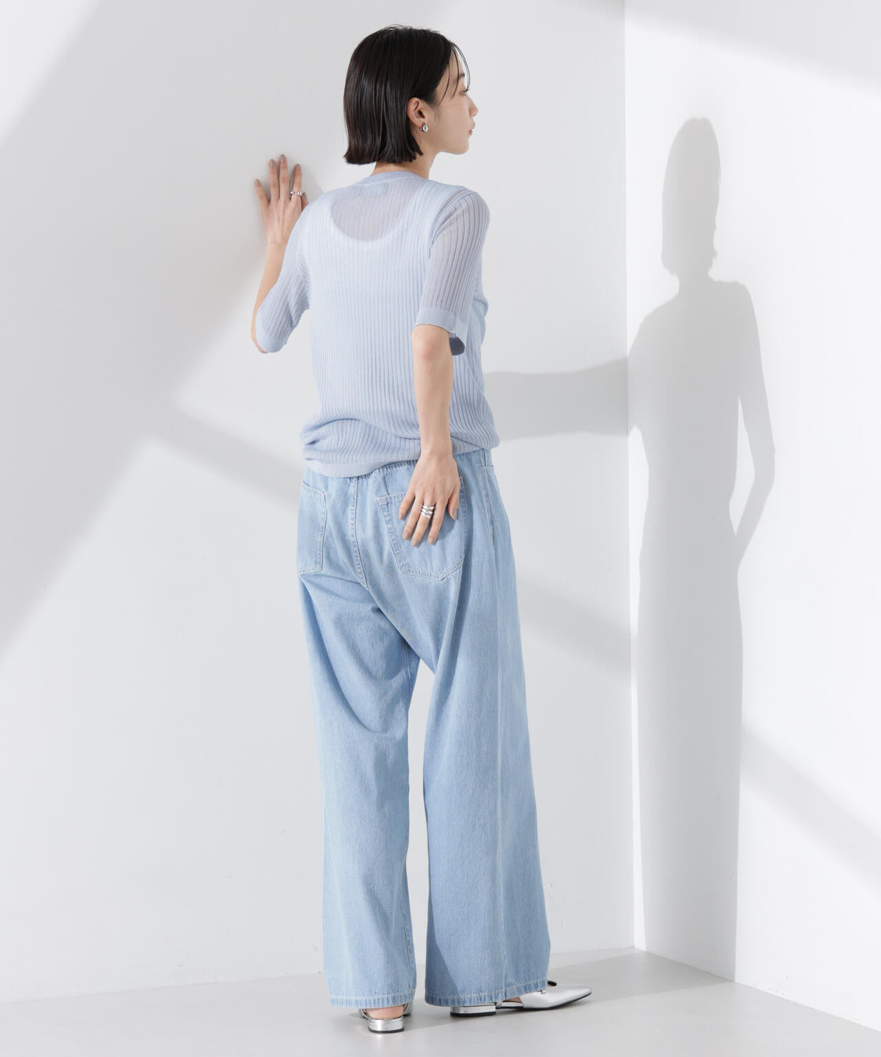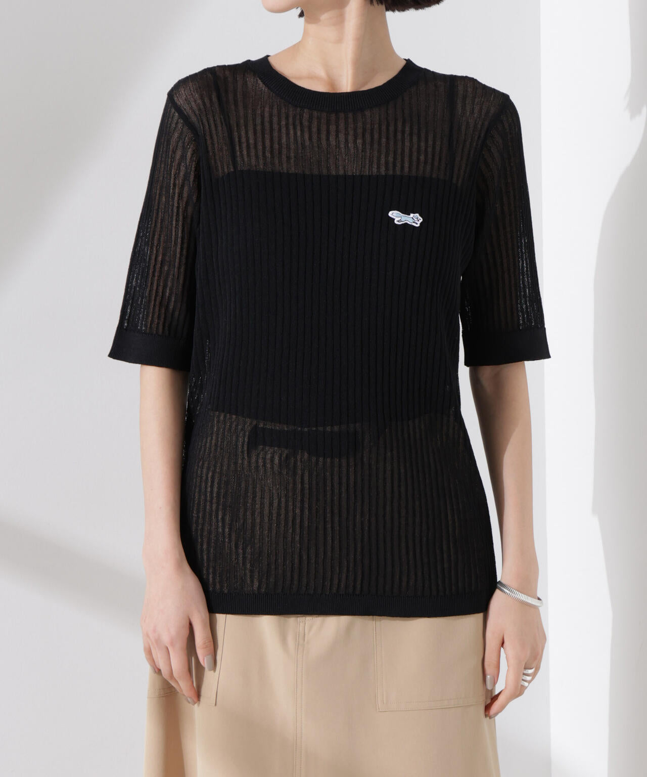 程良いシアーの透け感とリブデザインが上品な雰囲気のニットトップス。身体のラインを拾わないややゆとりのあるシルエットで、インナーも合わせやすいデザイン。ワイドパンツやフレアスカート等、シンプルなボトムスと相性の良い一着です。