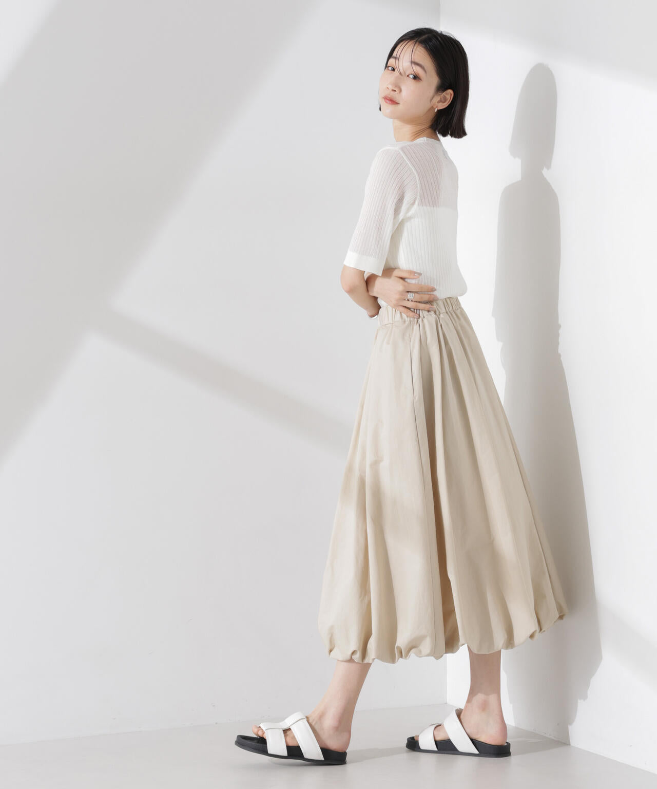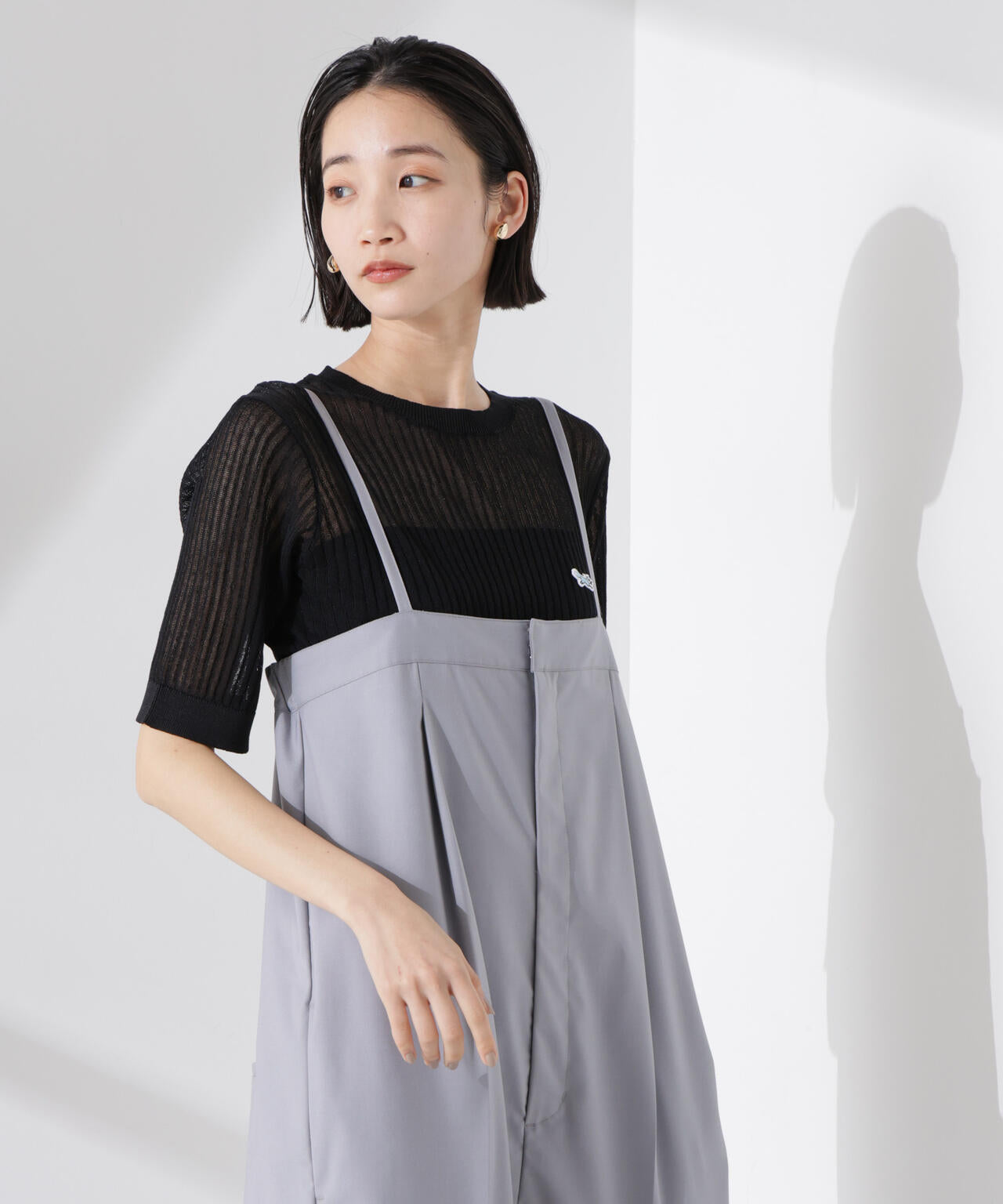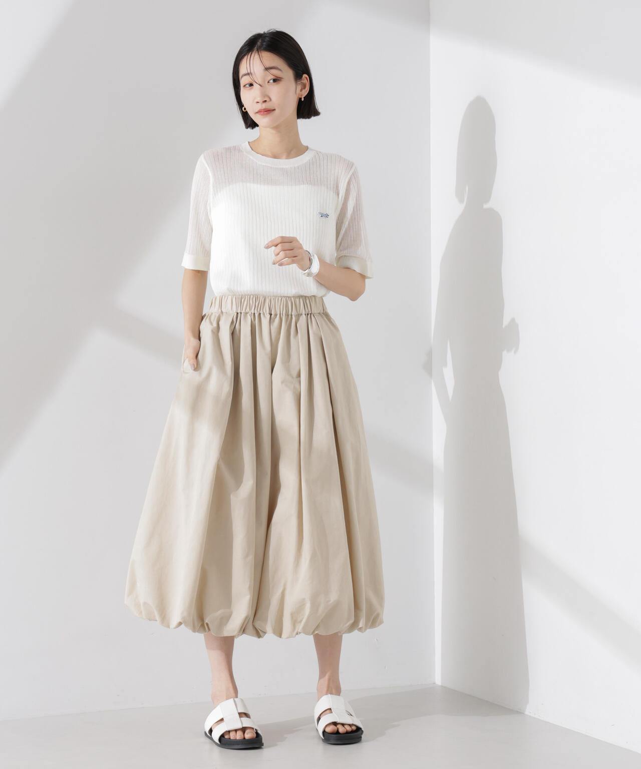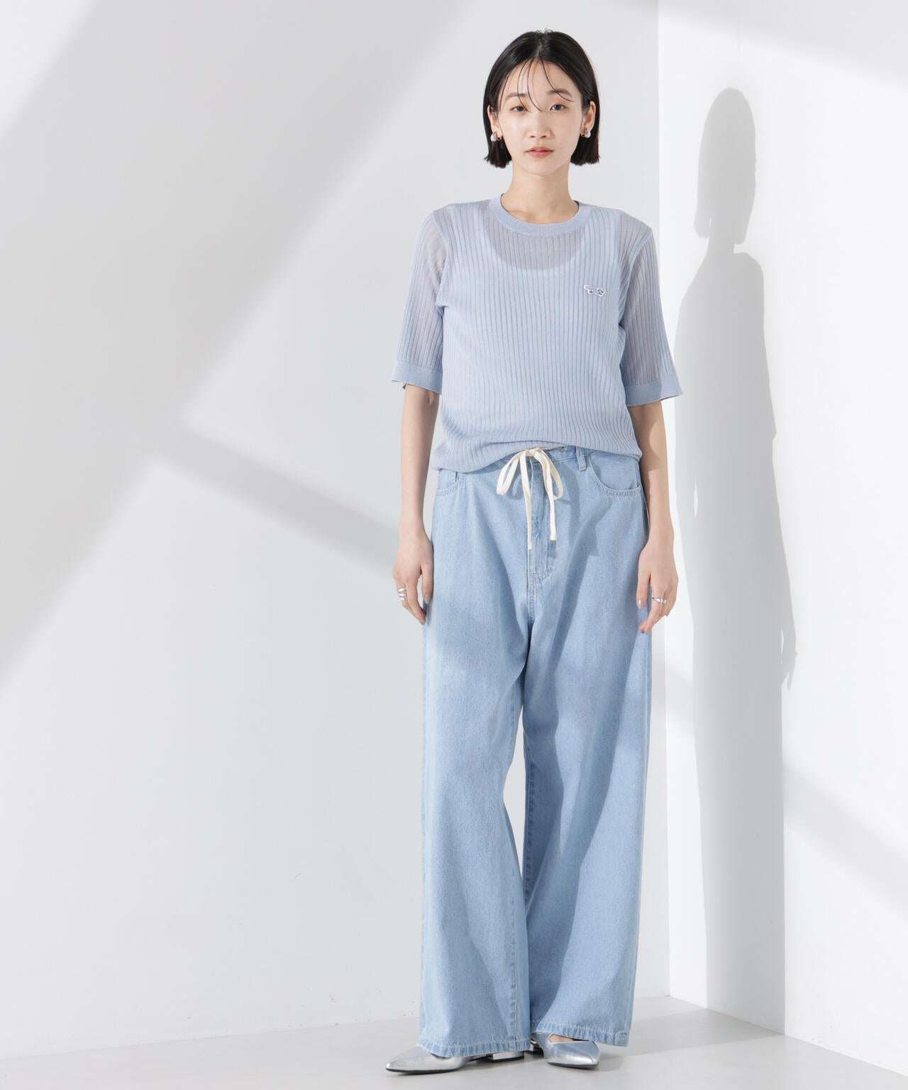 程良いシアーの透け感とリブデザインが上品な雰囲気のニットトップス。身体のラインを拾わないややゆとりのあるシルエットで、インナーも合わせやすいデザイン。ワイドパンツやフレアスカート等、シンプルなボトムスと相性の良い一着です。