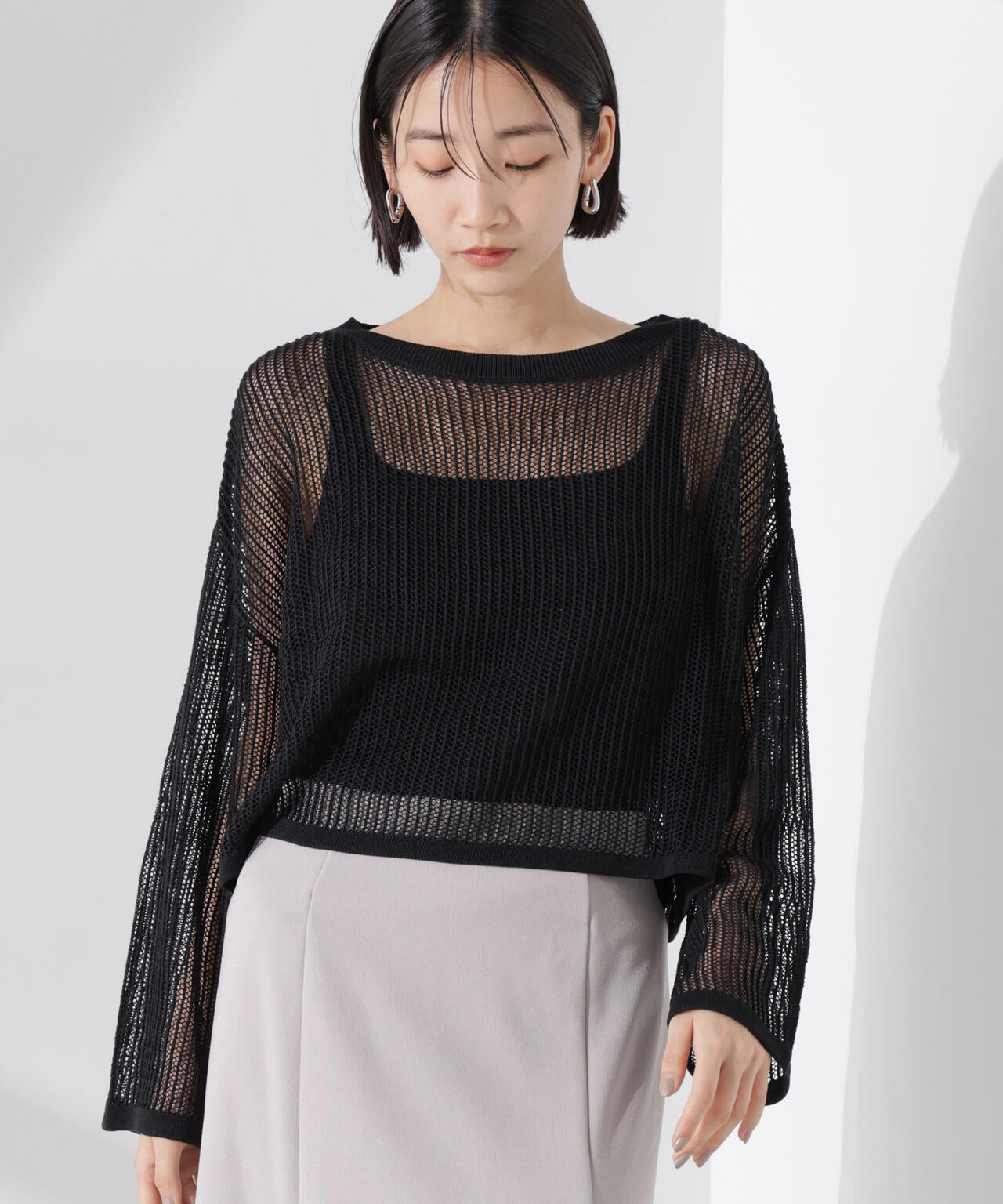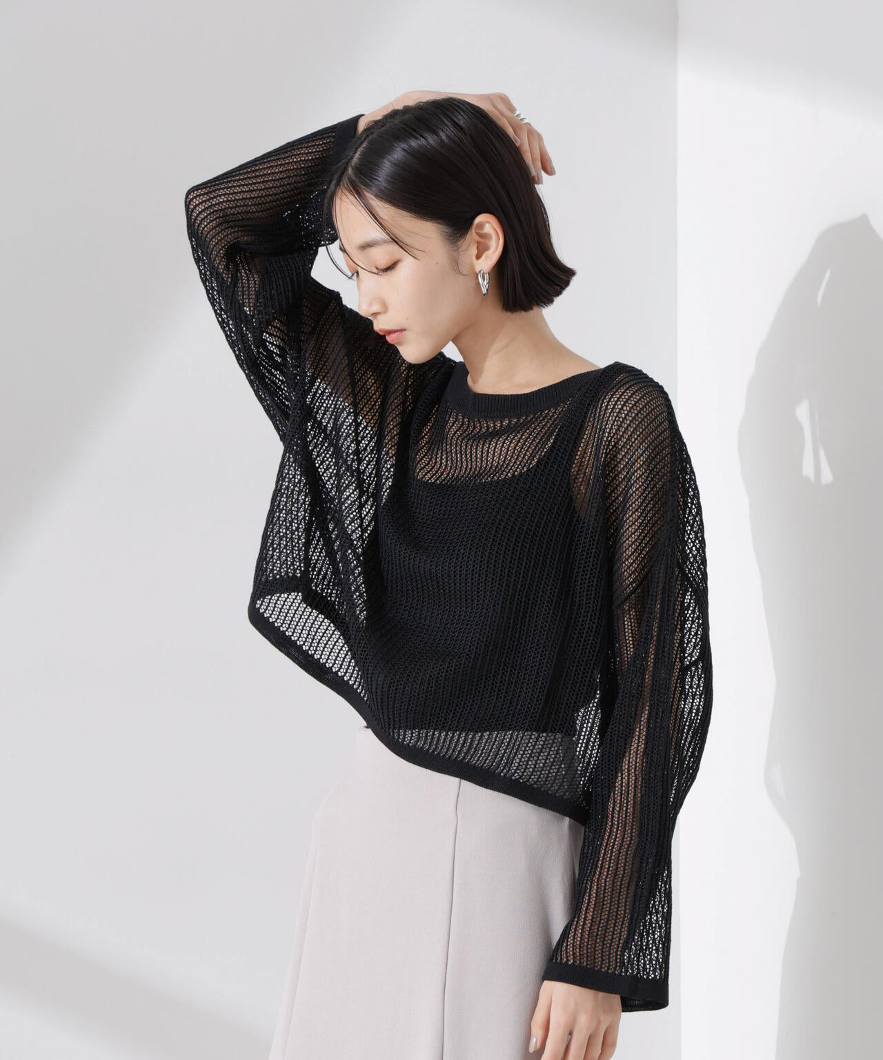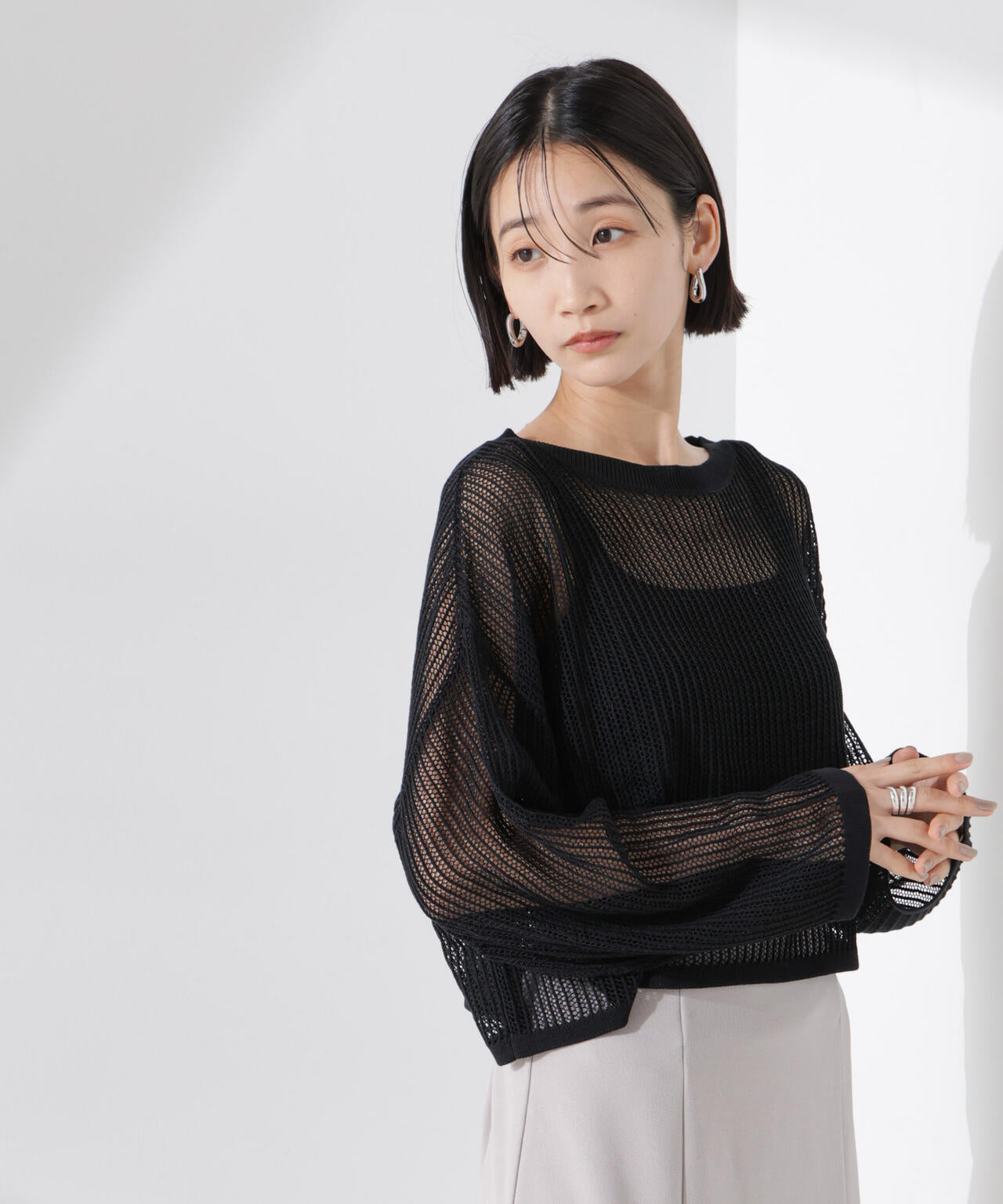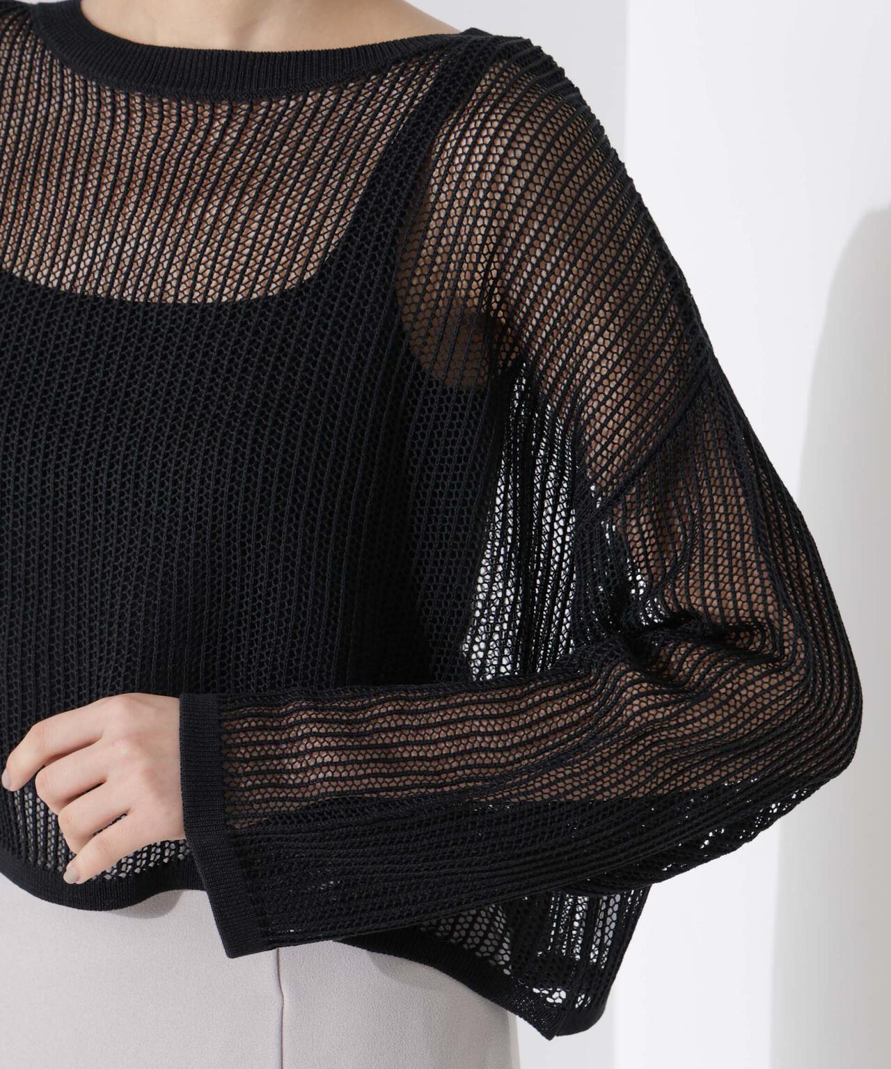 ・トレンドの透け感をメッシュ編みで表現したニットトップス
