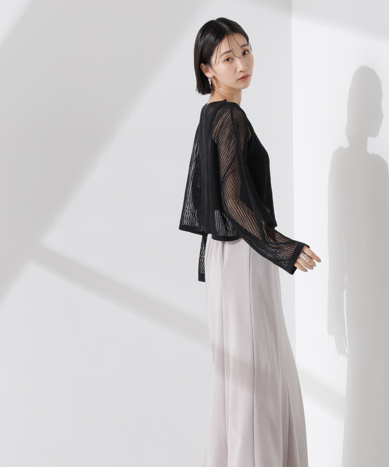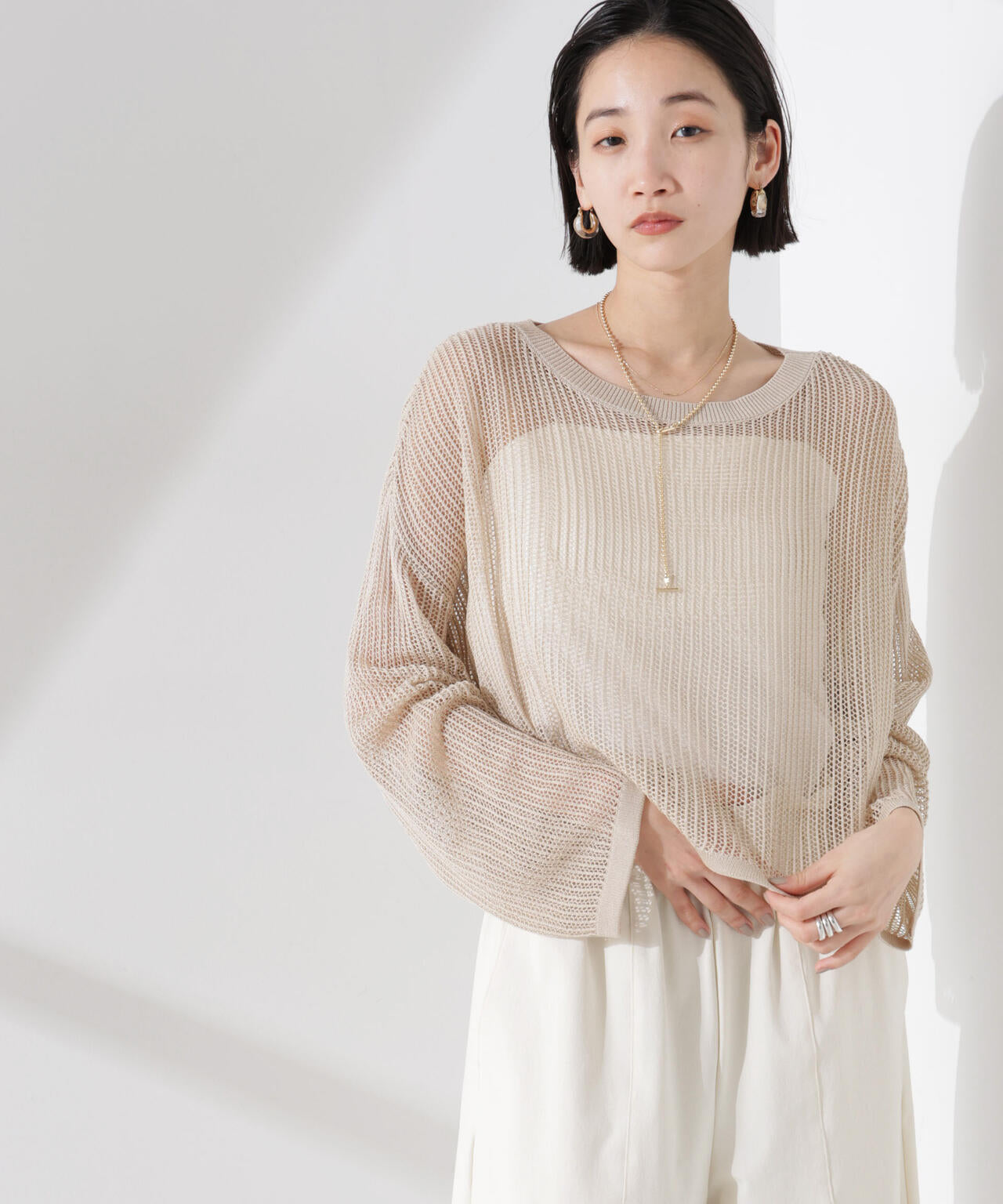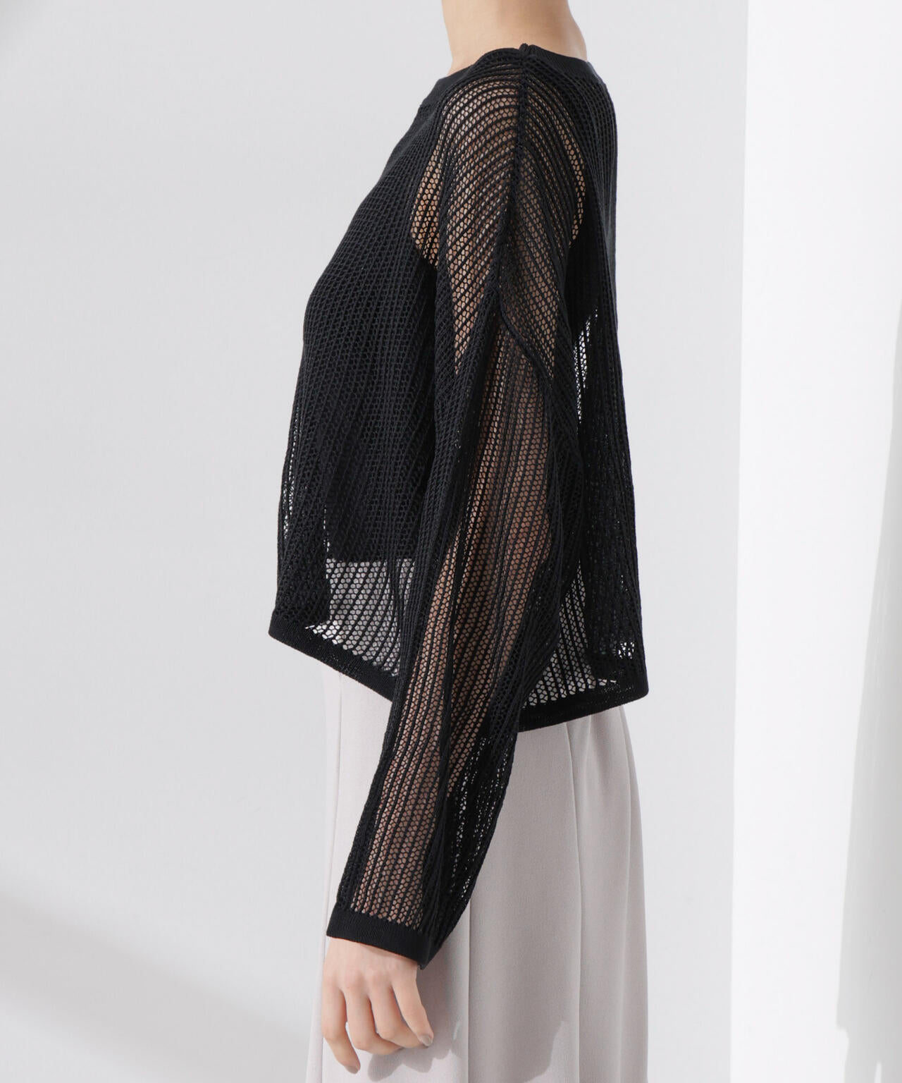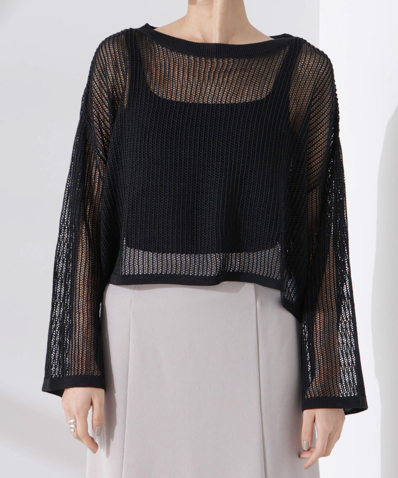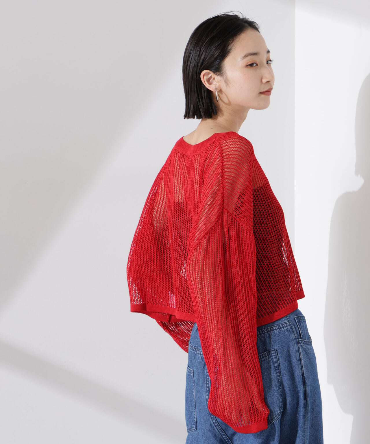 ・トレンドの透け感をメッシュ編みで表現したニットトップス