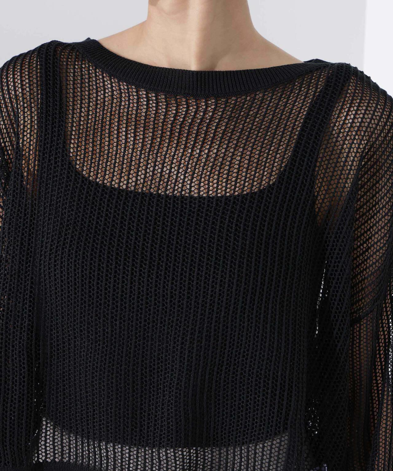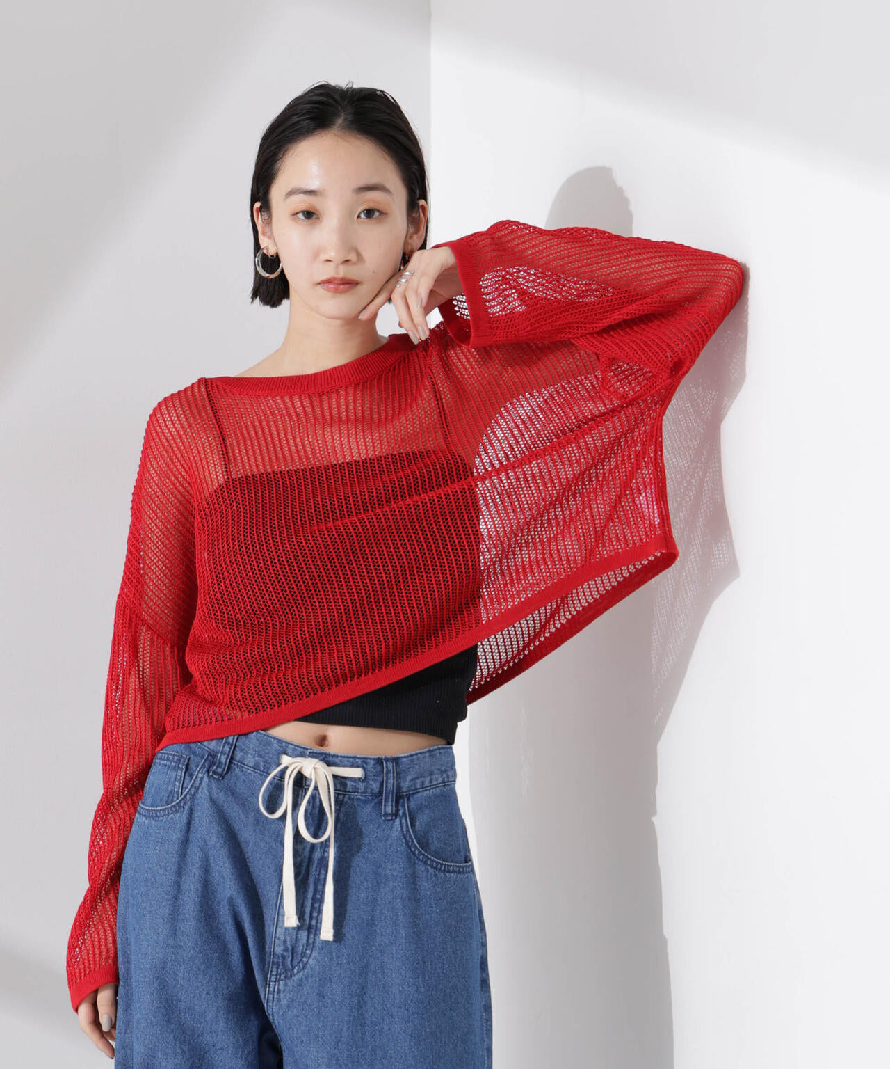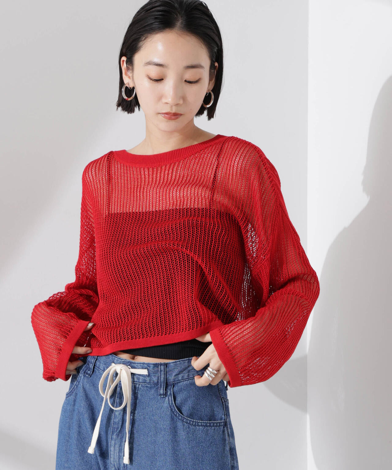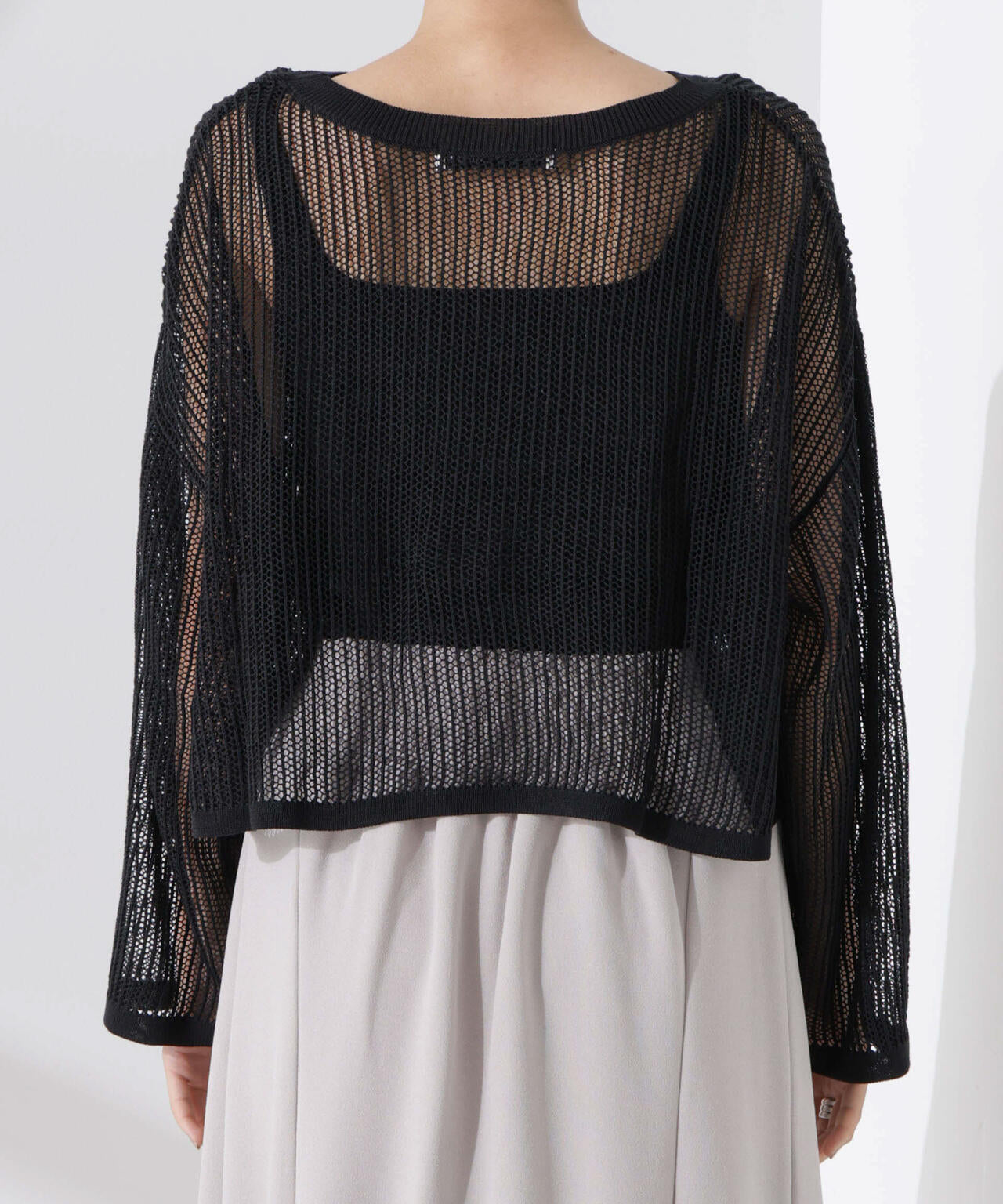 ・トレンドの透け感をメッシュ編みで表現したニットトップス