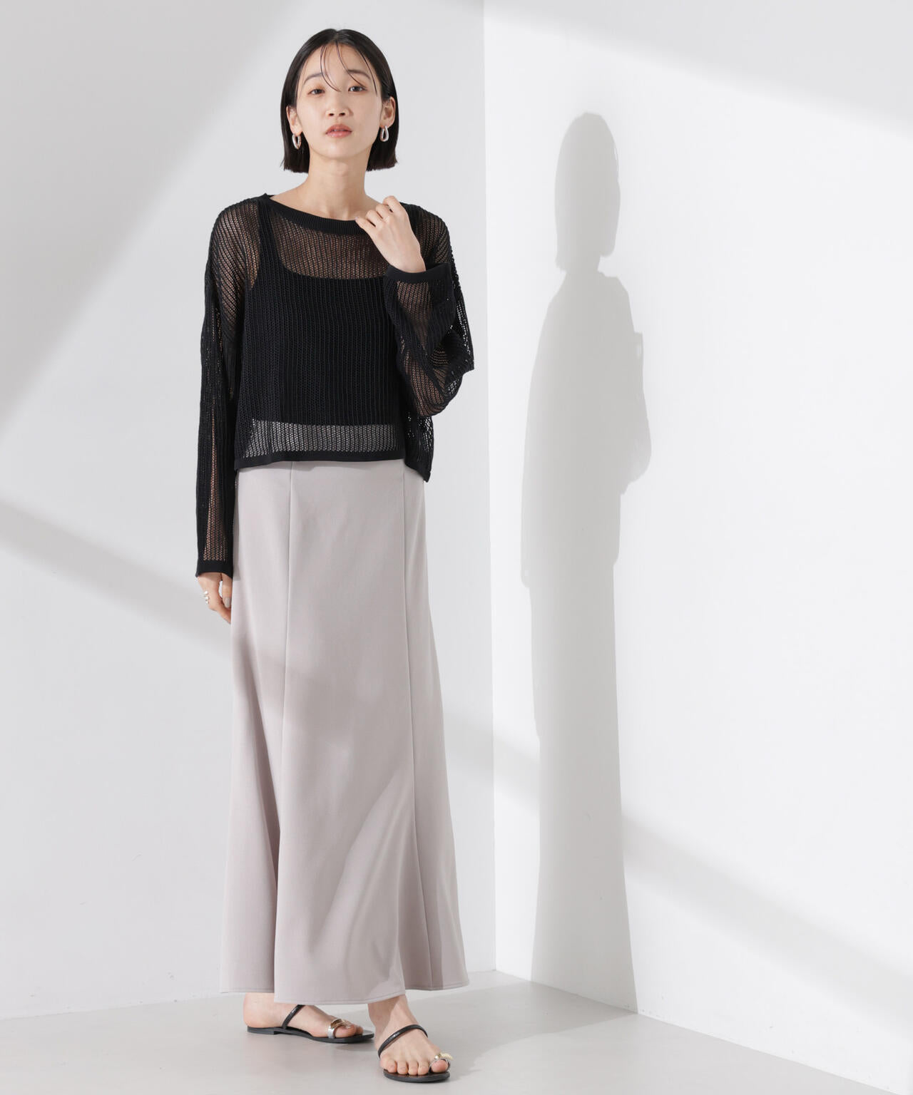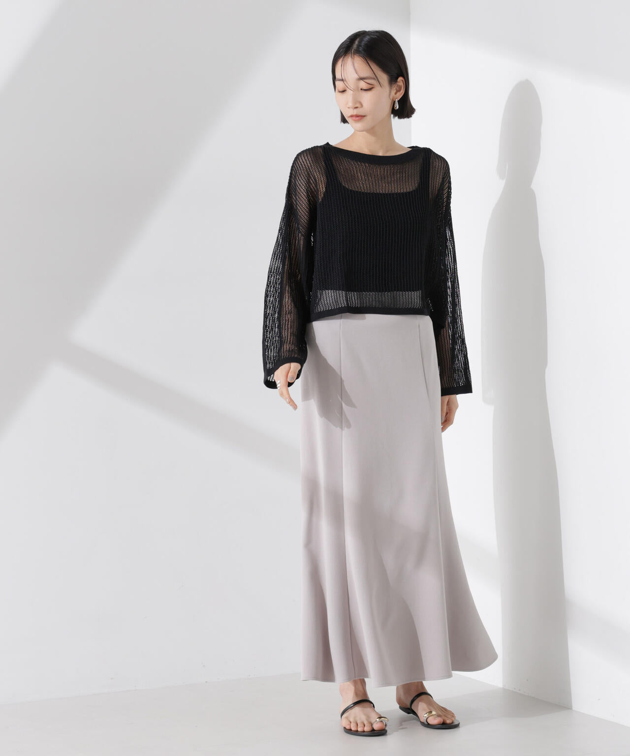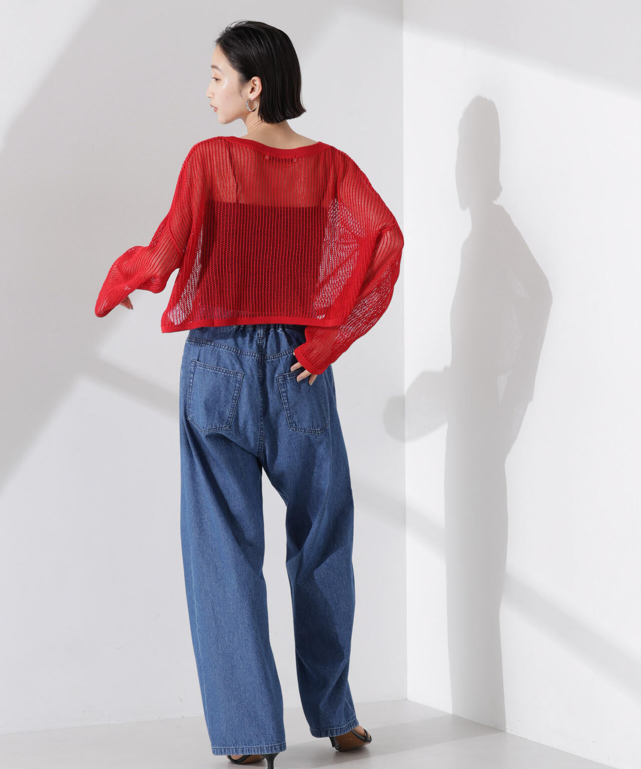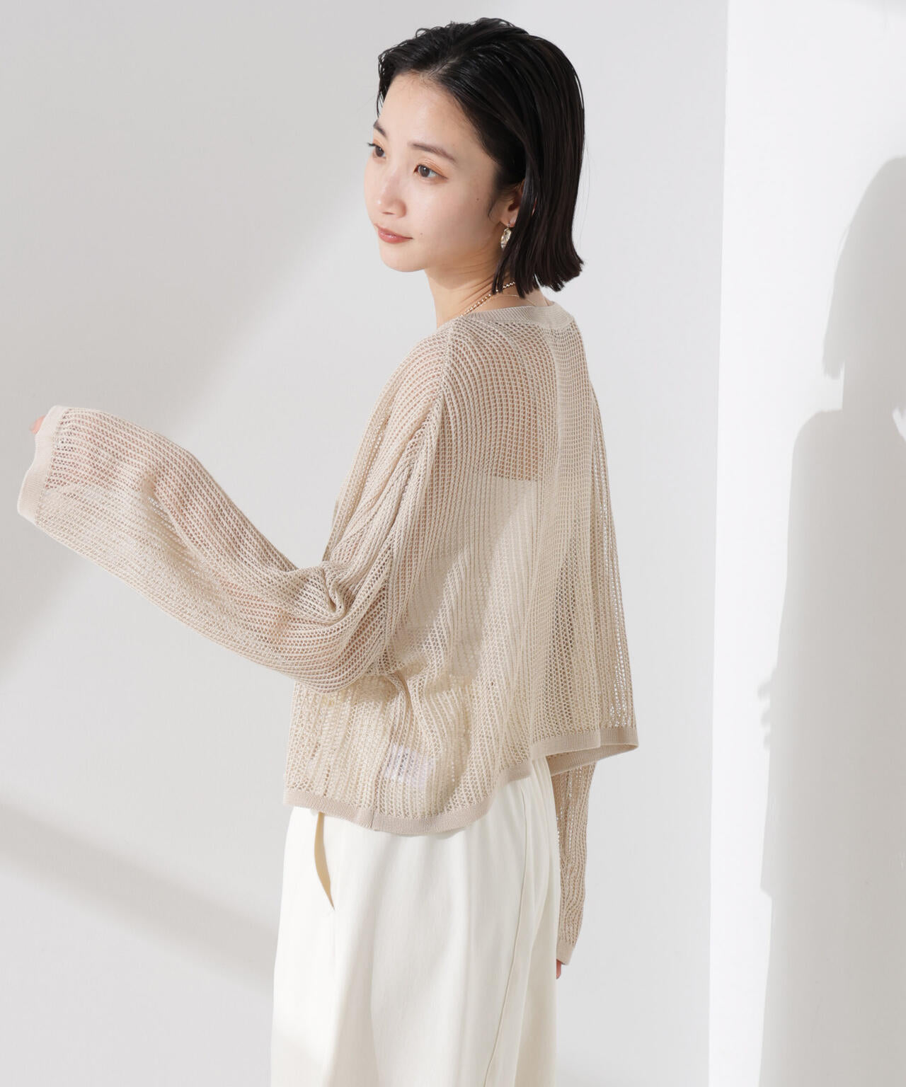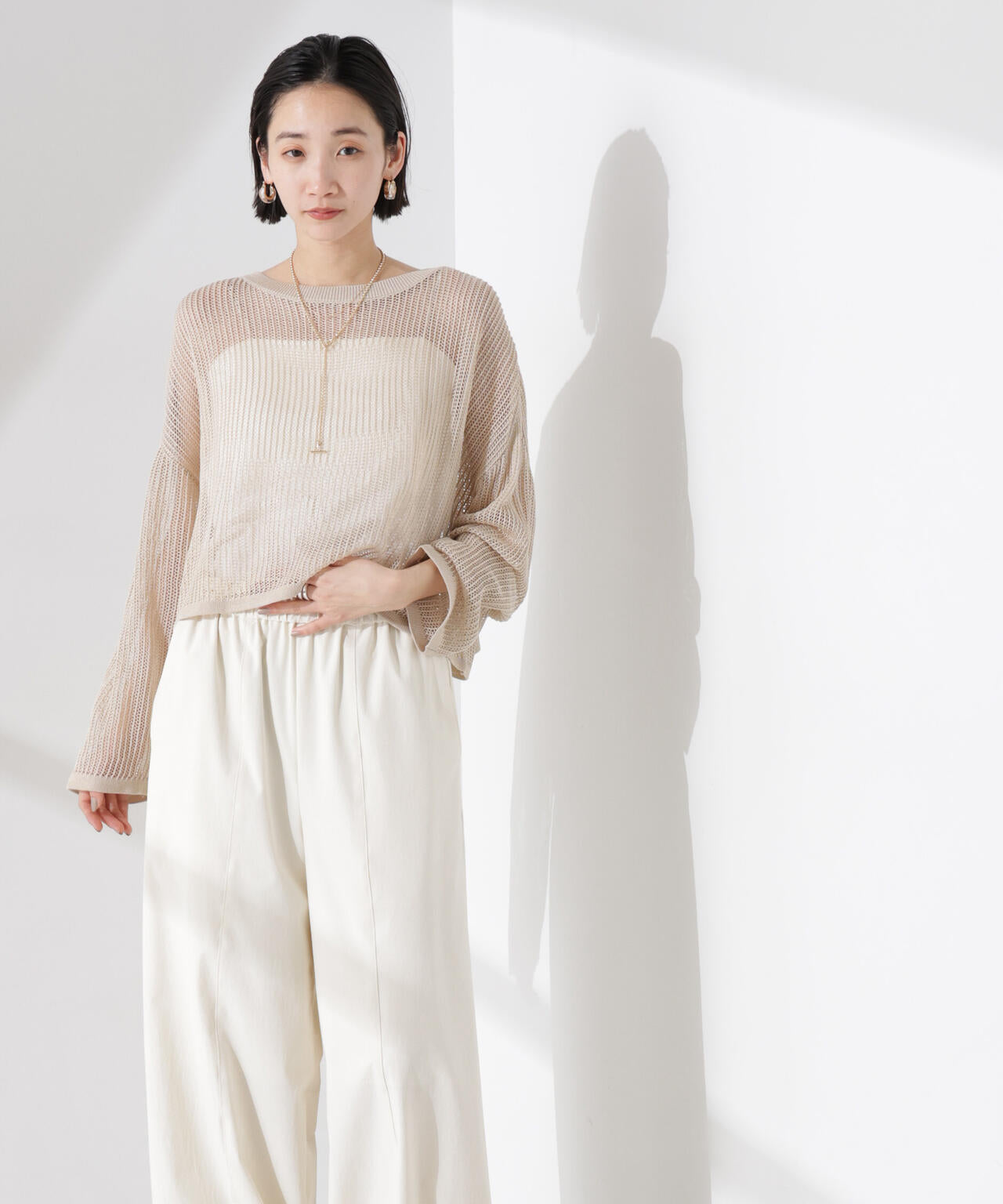・トレンドの透け感をメッシュ編みで表現したニットトップス