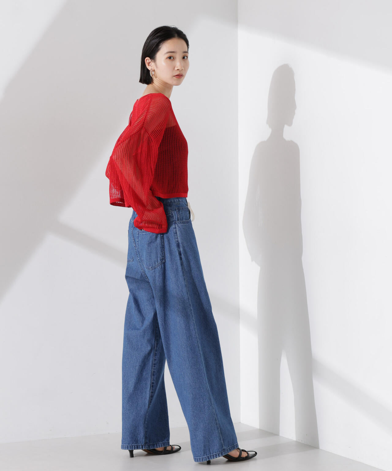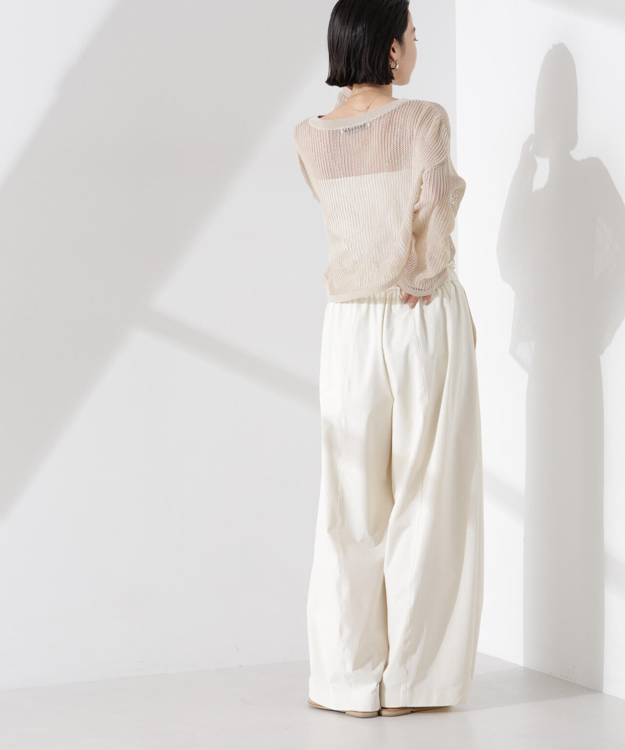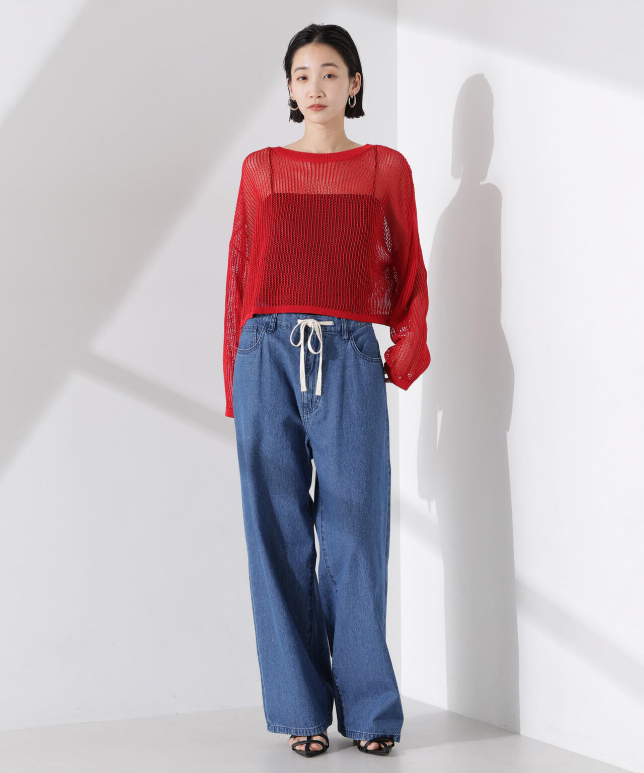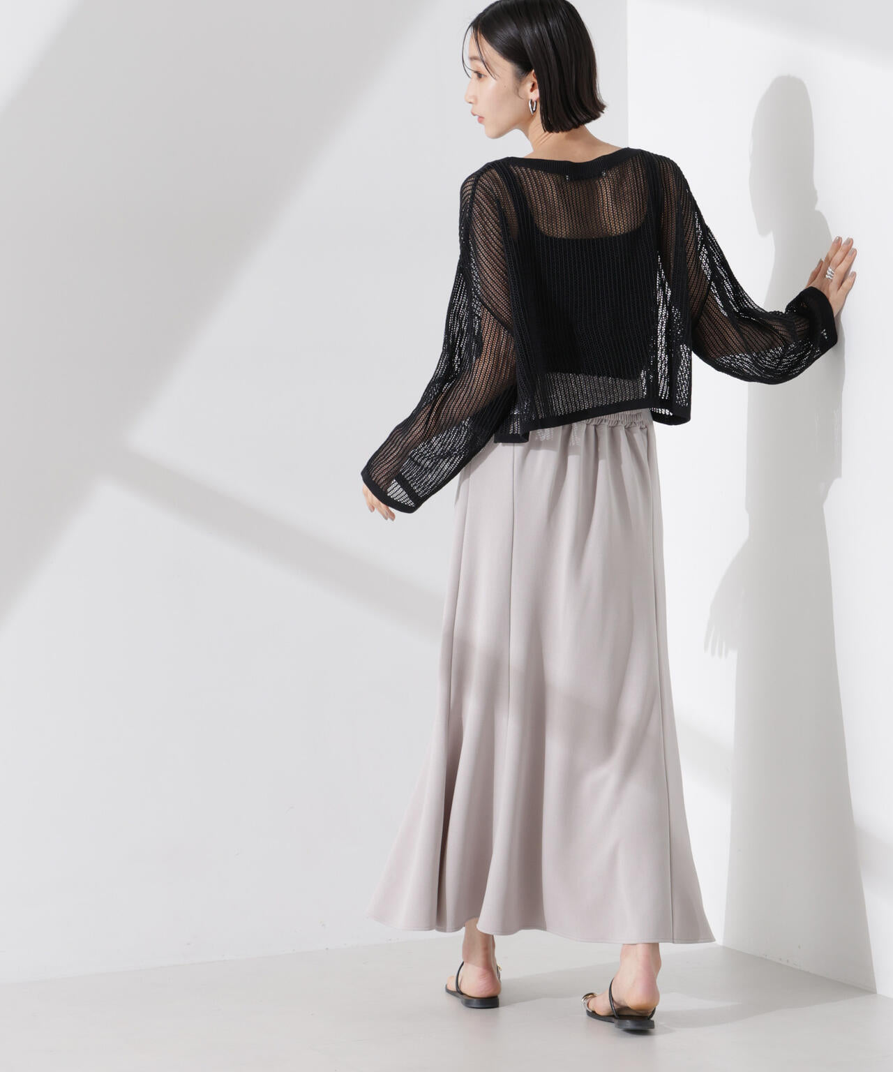 ・トレンドの透け感をメッシュ編みで表現したニットトップス