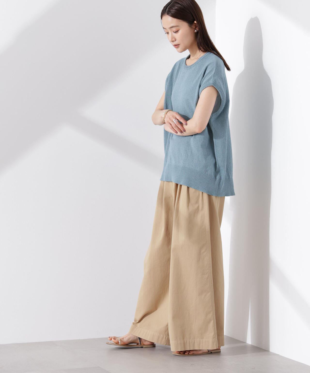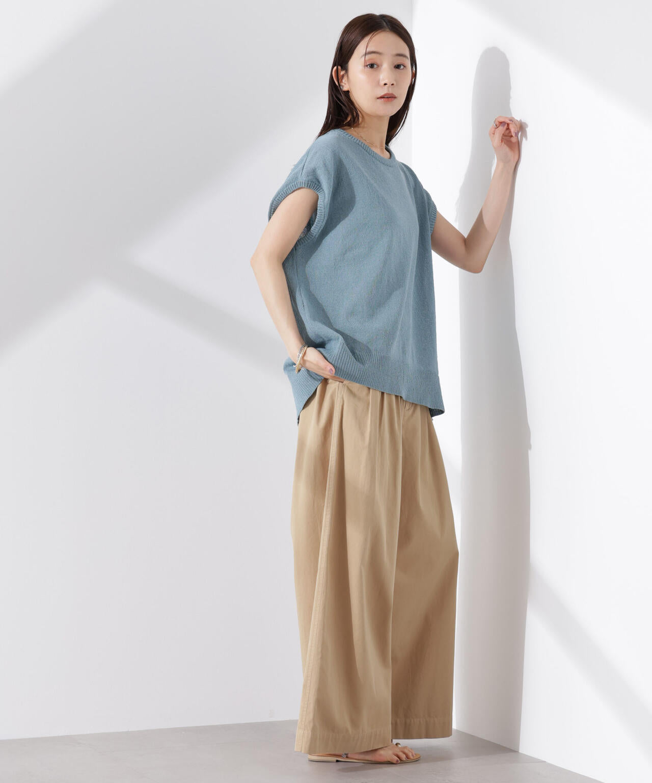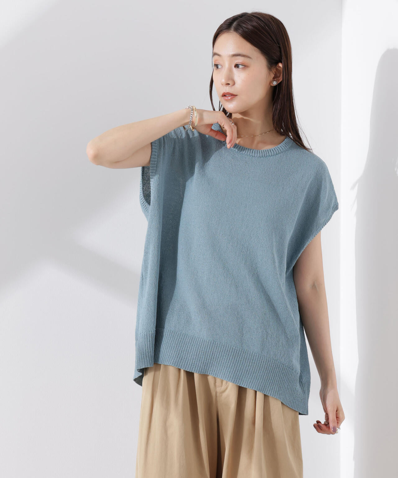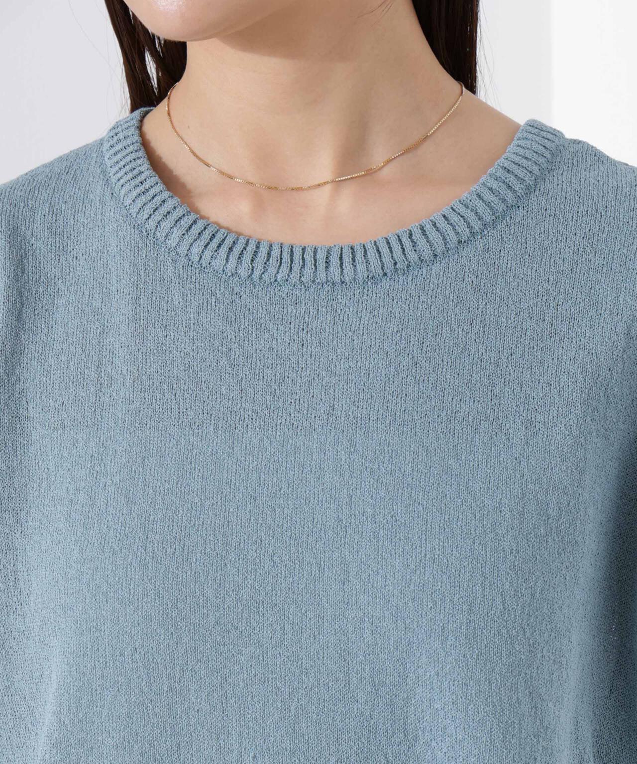 ・肌見せし涼し気な印象を与えるニットプルオーバー