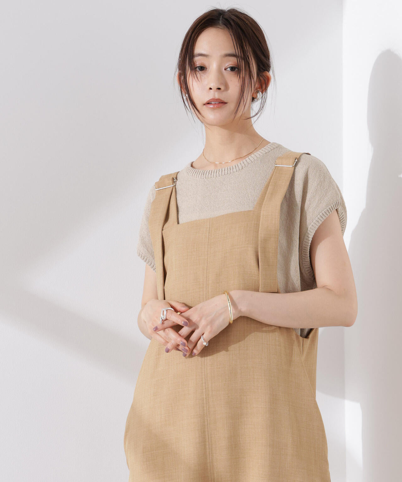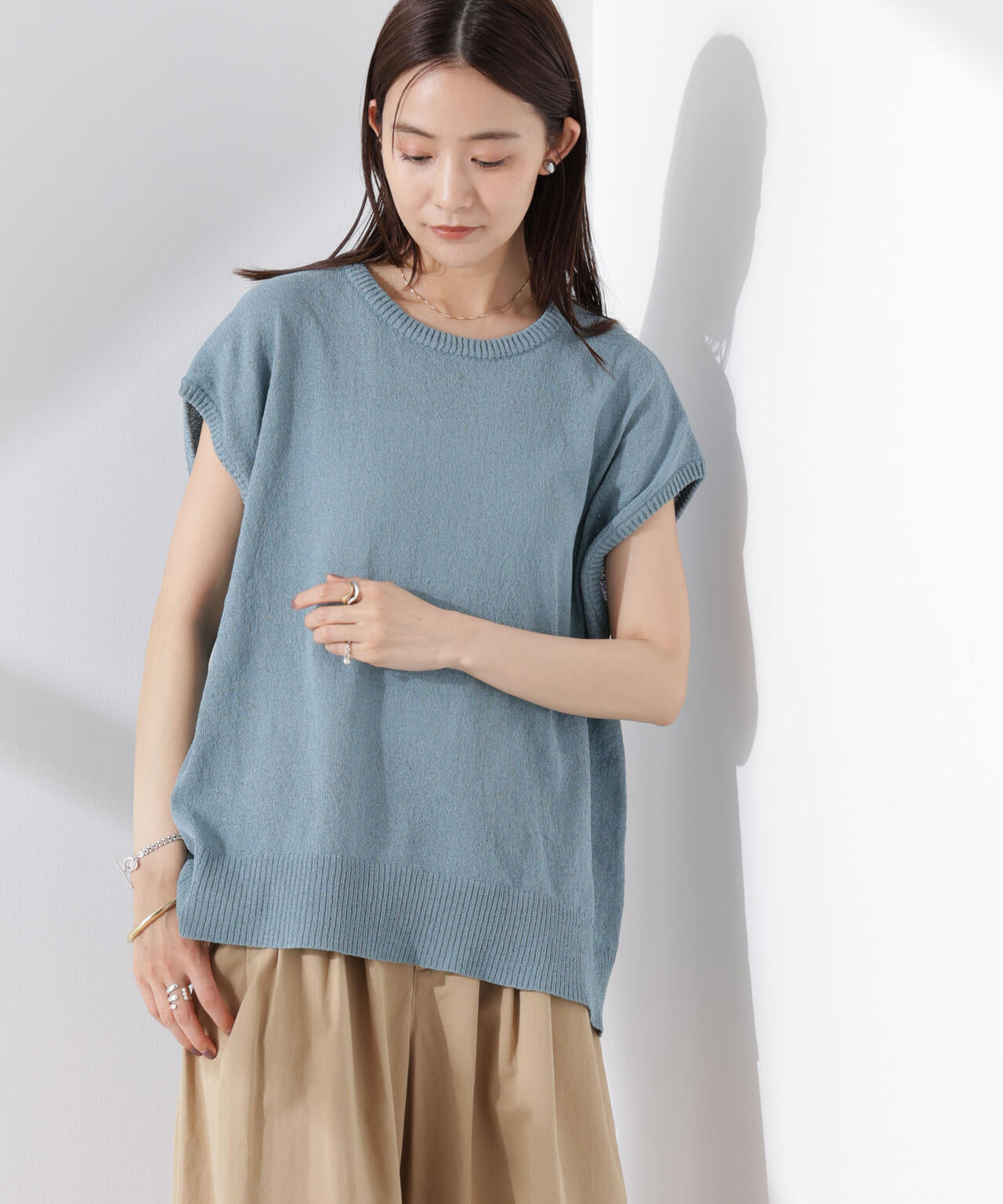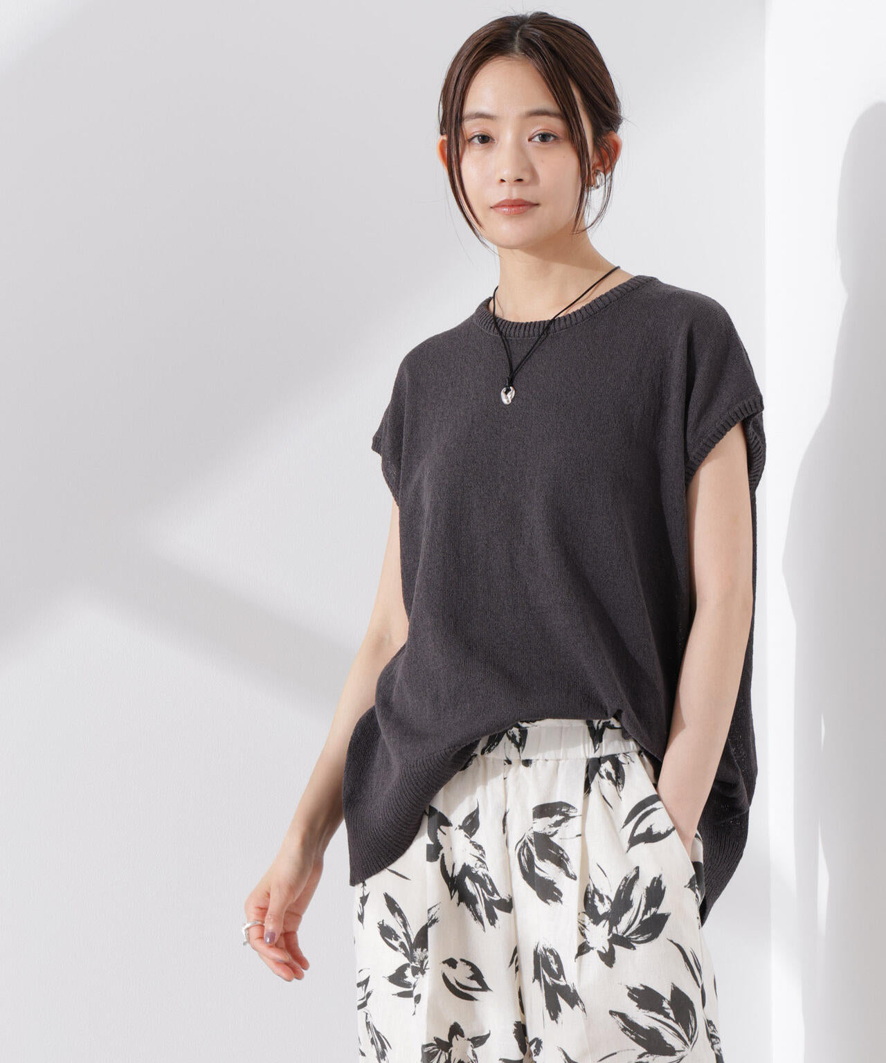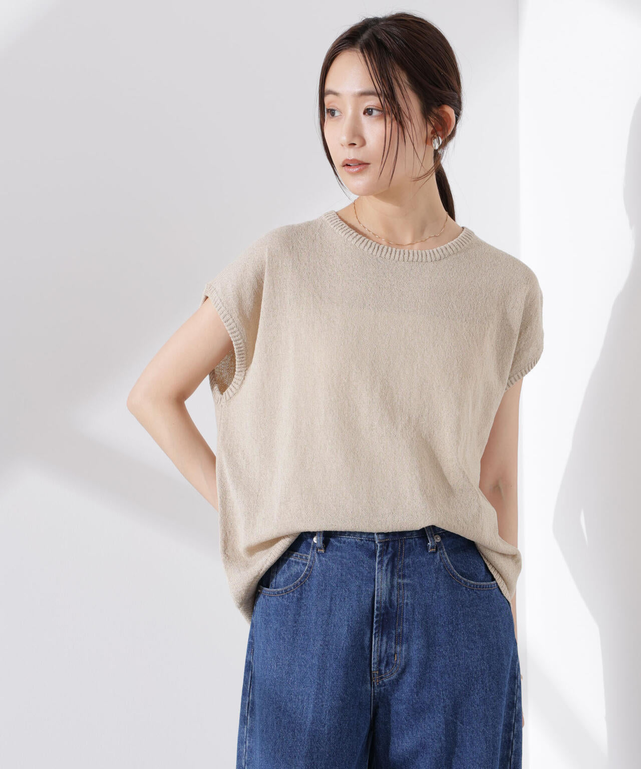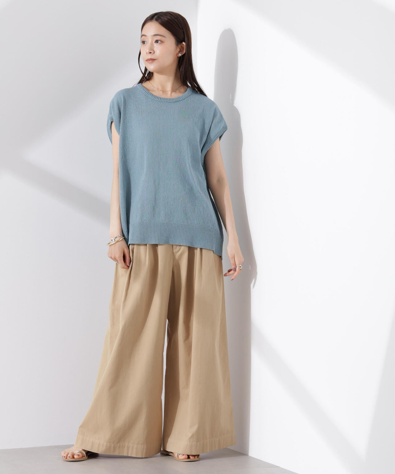 ・肌見せし涼し気な印象を与えるニットプルオーバー