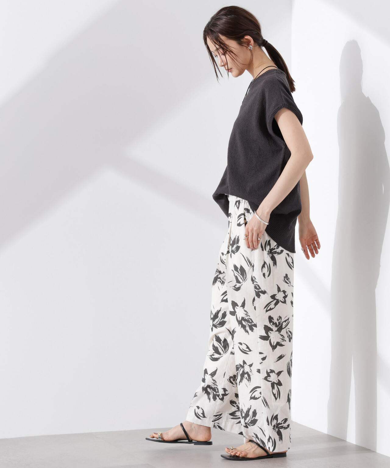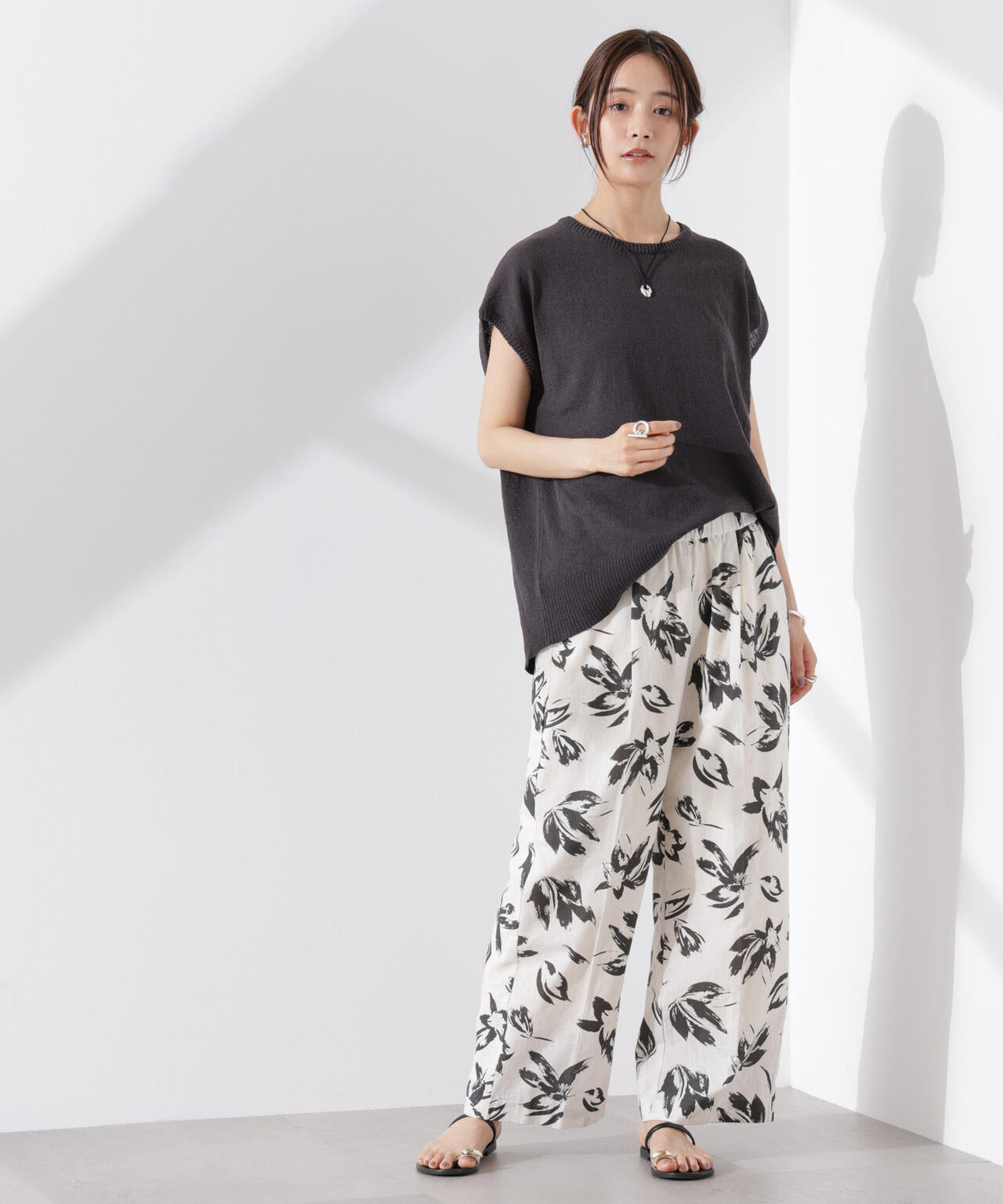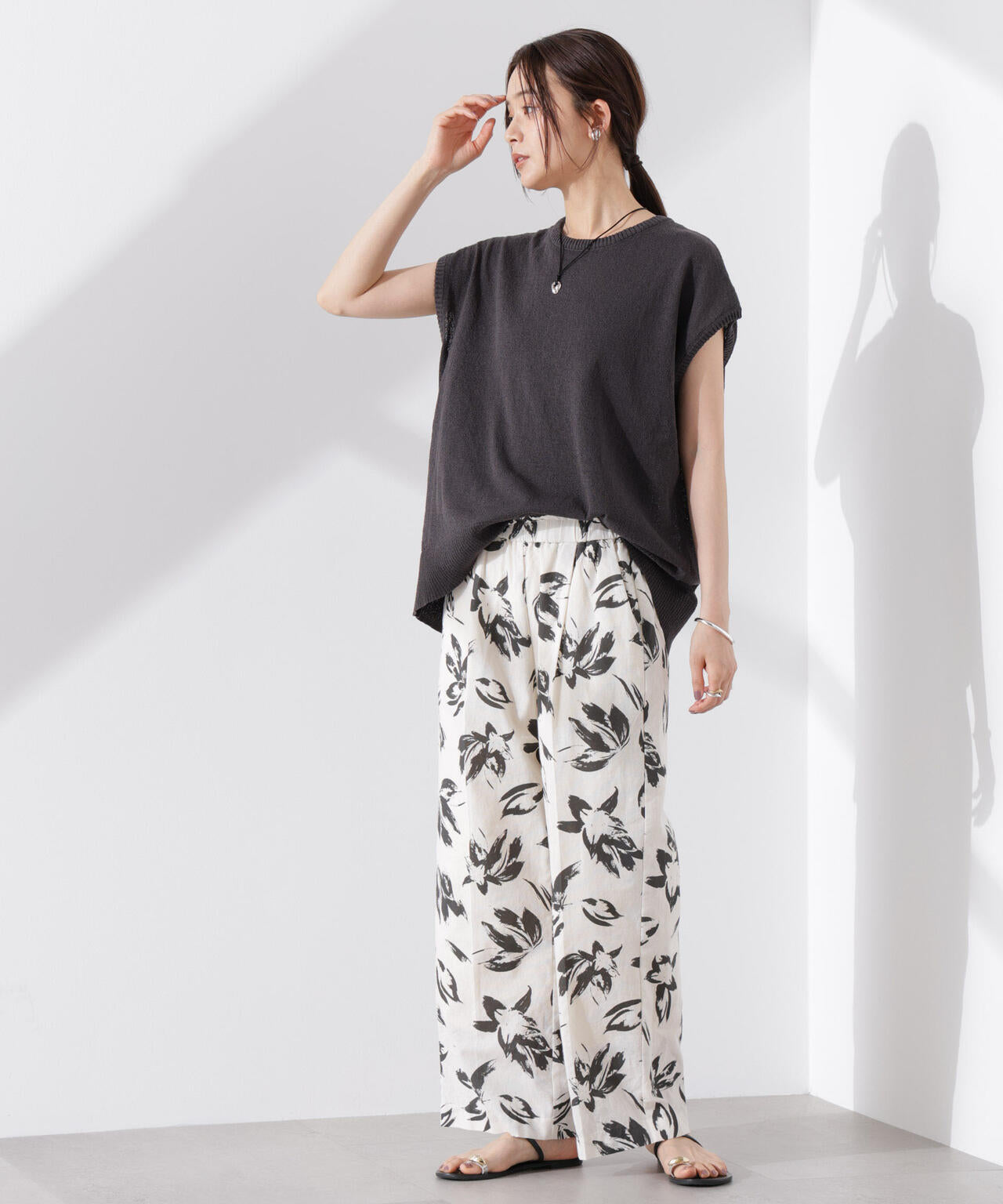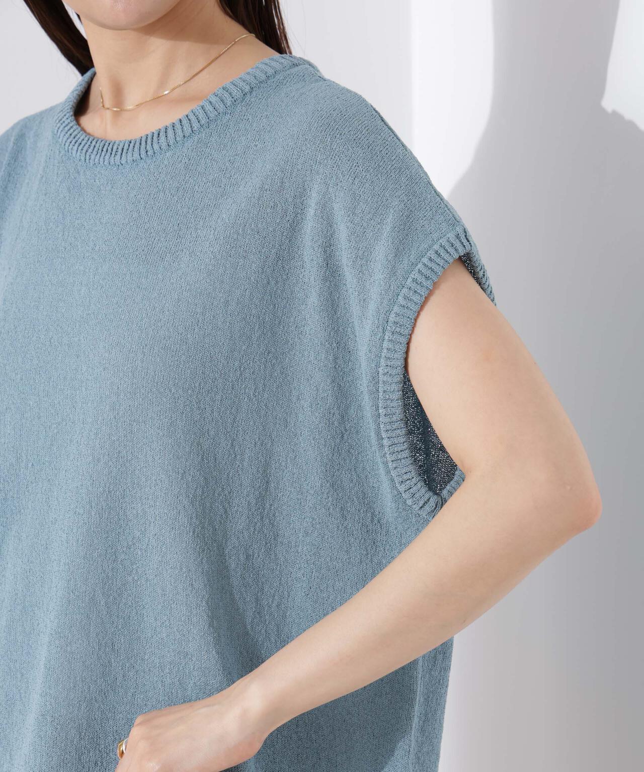 ・肌見せし涼し気な印象を与えるニットプルオーバー