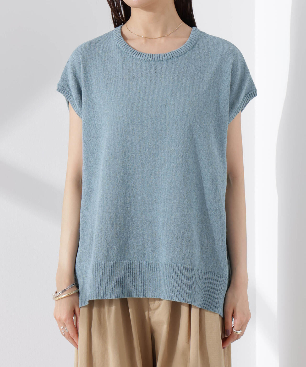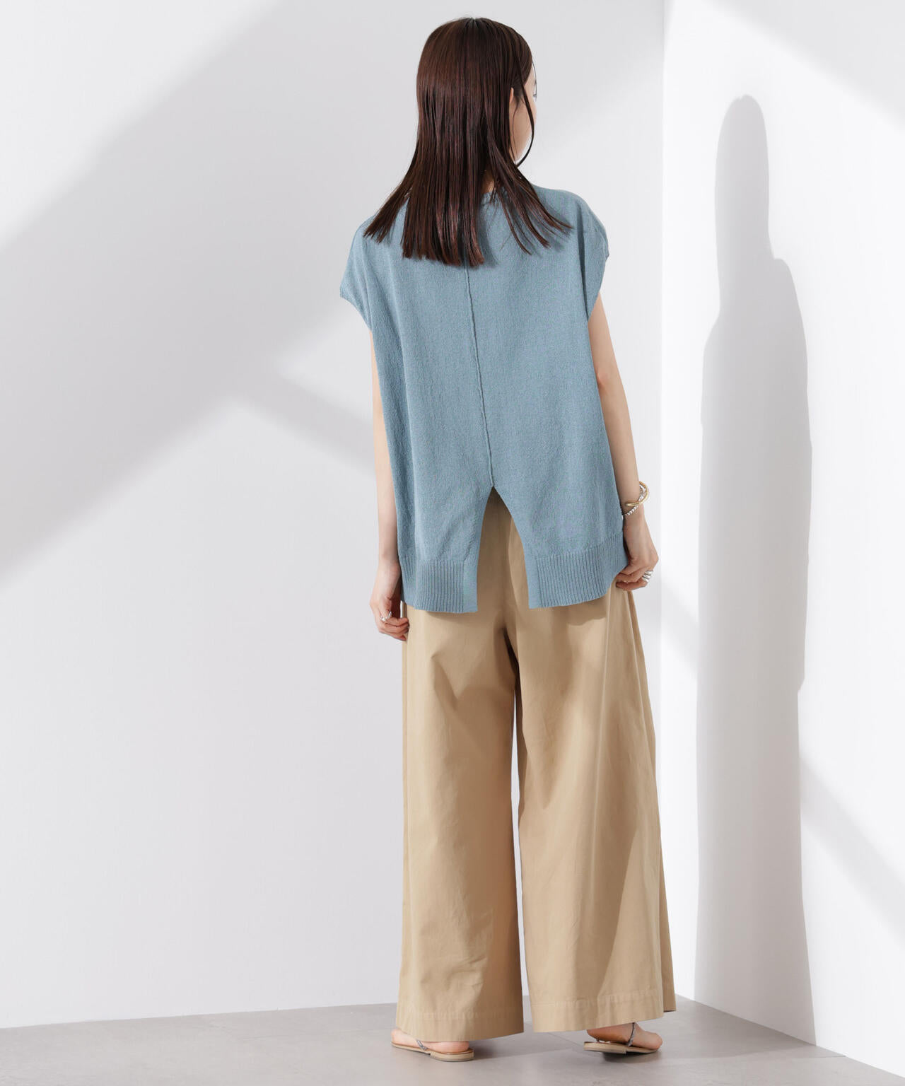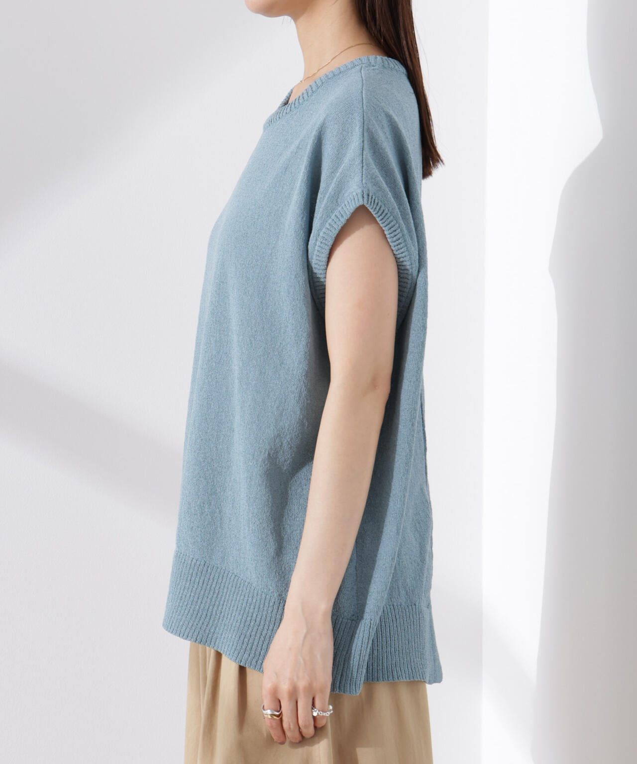 程良いシアー感がアクセントになった清涼感のあるサマーニット。バックスリットがポイントで夏のレイヤードスタイルにぴったりなアイテム。ポリエステルの軽量で通気性の良い素材使用し、夏でも快適に着ることができる一枚です。