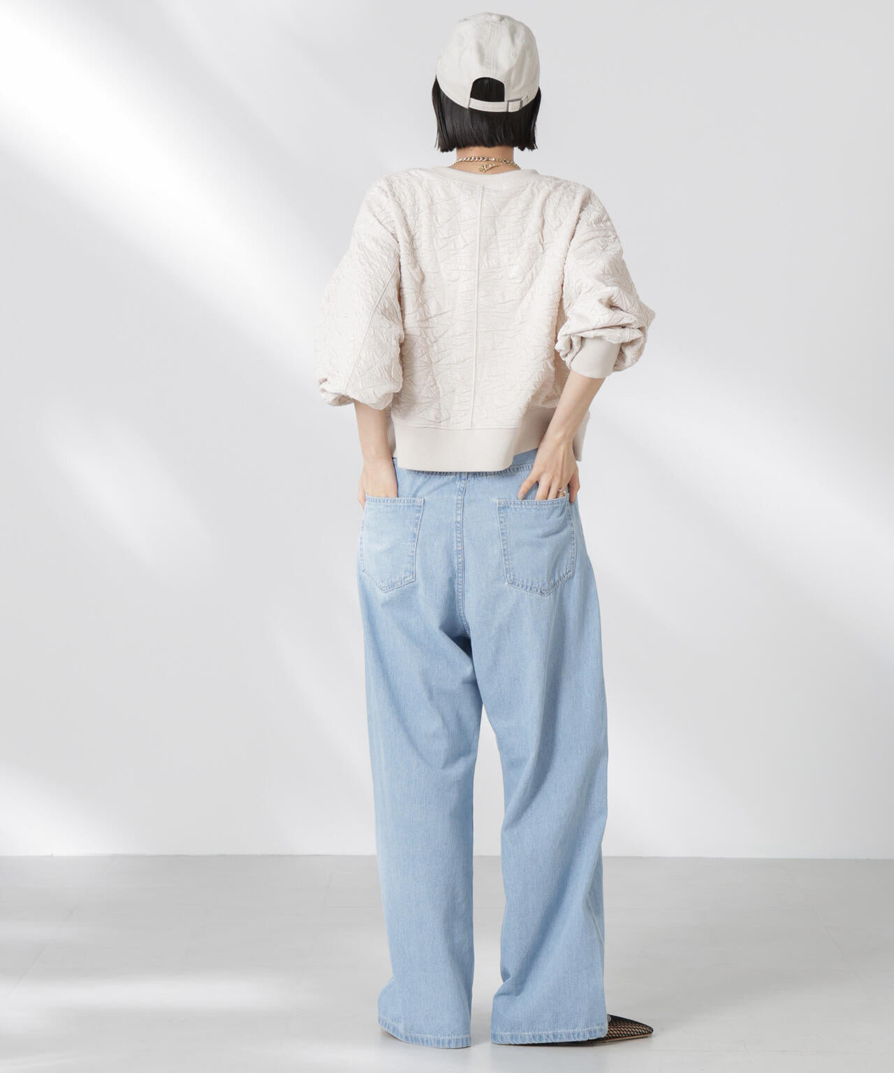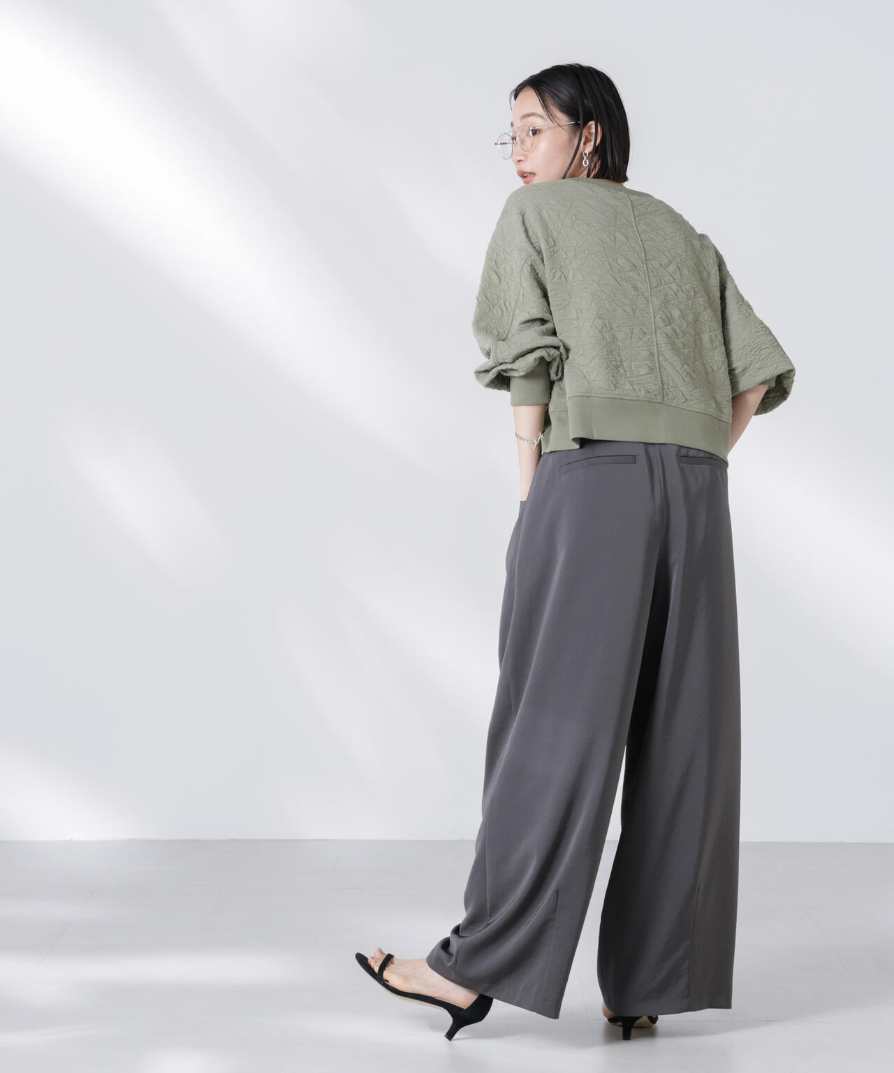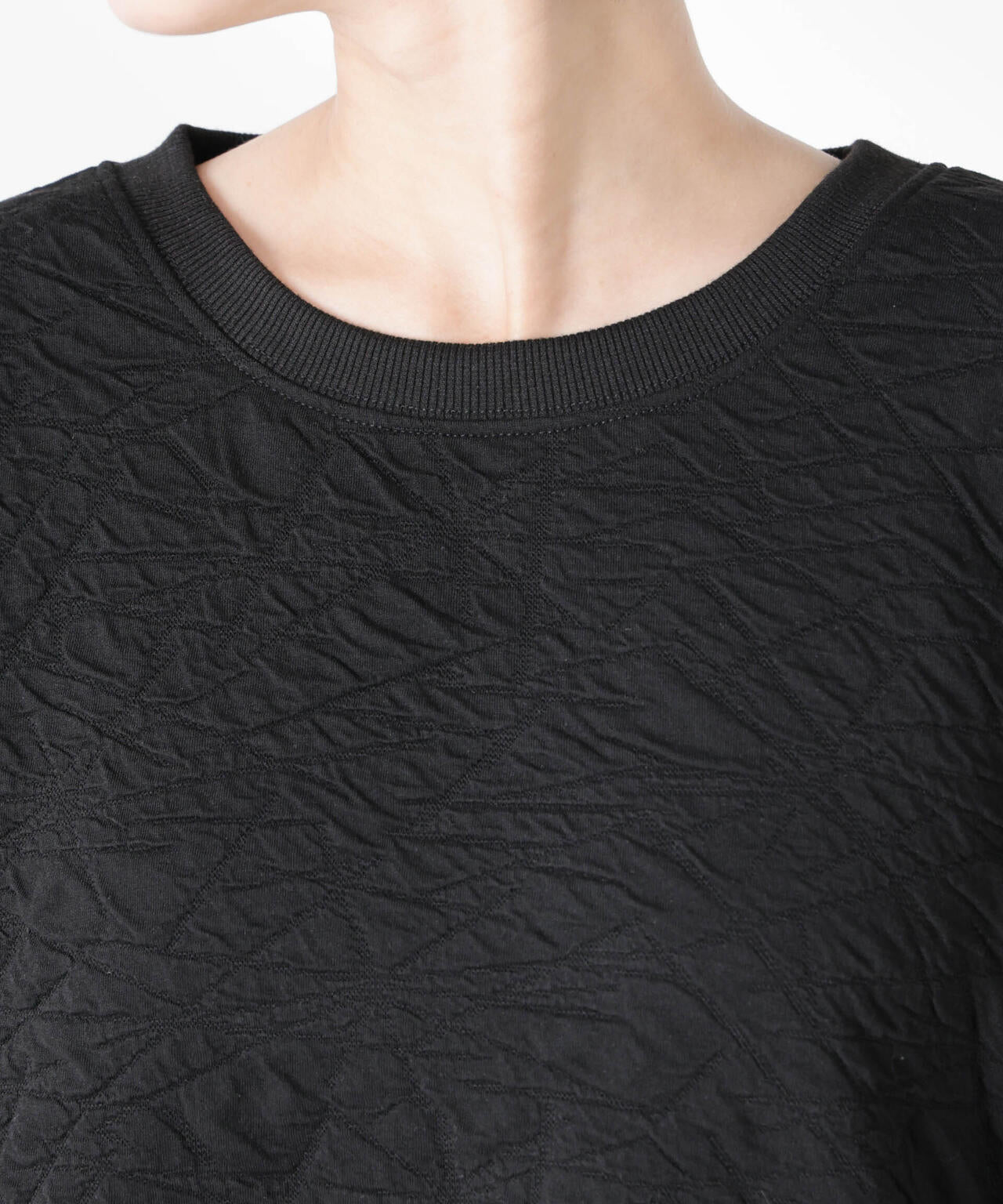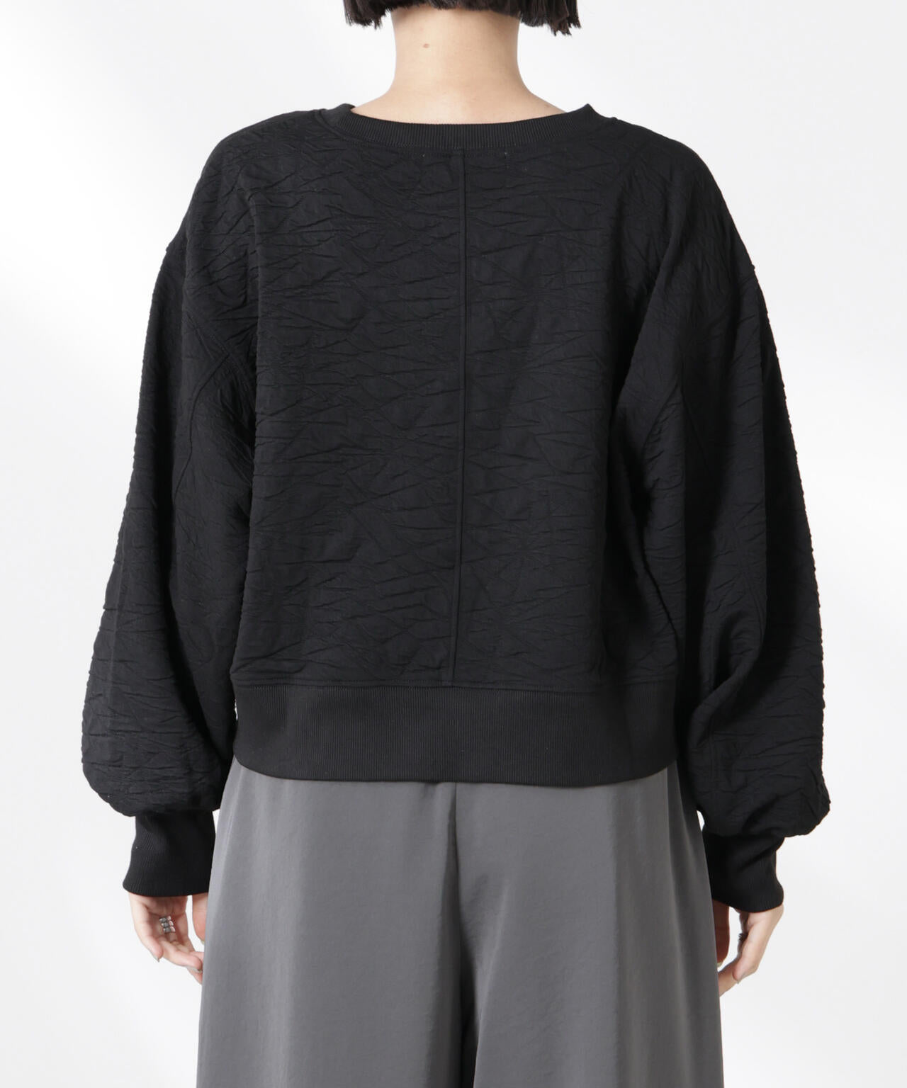 ポコポコした素材が魅力のクルーネックプルオーバー。ドロップショルダーで肩と身幅にゆとりを持たせた着心地のよいサイズ感で、やや短めのクロップド丈がスタイルアップに貢献。程よい凹凸感がコーディネートのアクセントにもなるデイリーに着回したいアイテムです!