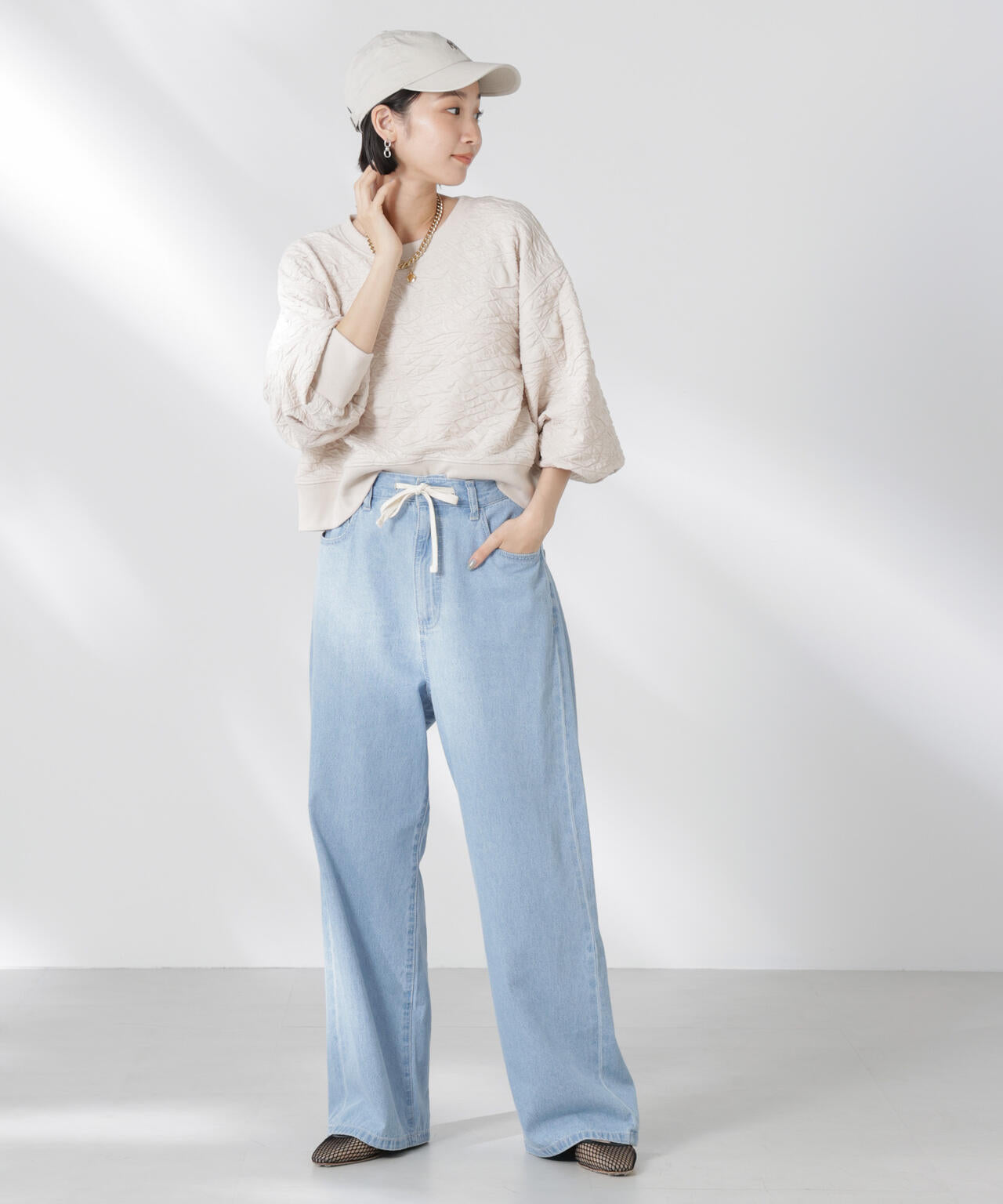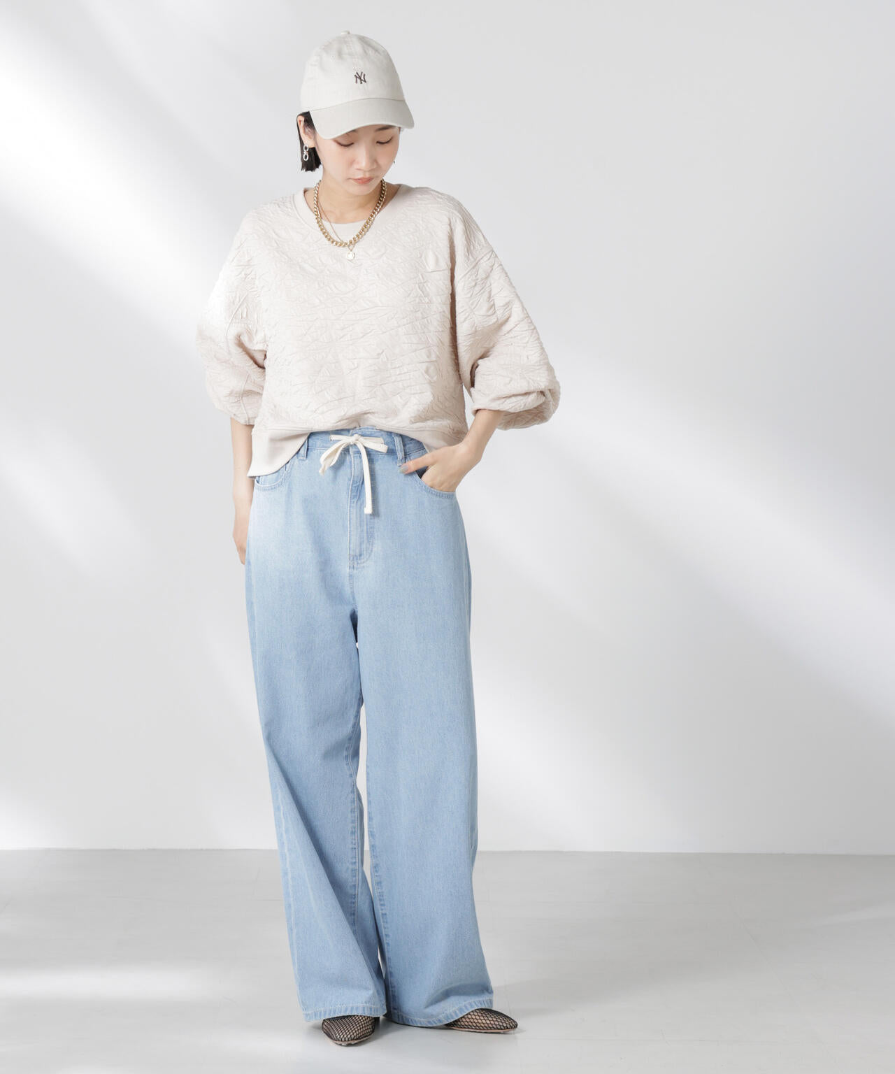 ・カジュアルにデニムパンツと合わせたり、ギャザースカートやフレアスカートと合わせてもフェミニンすぎない雰囲気に◎