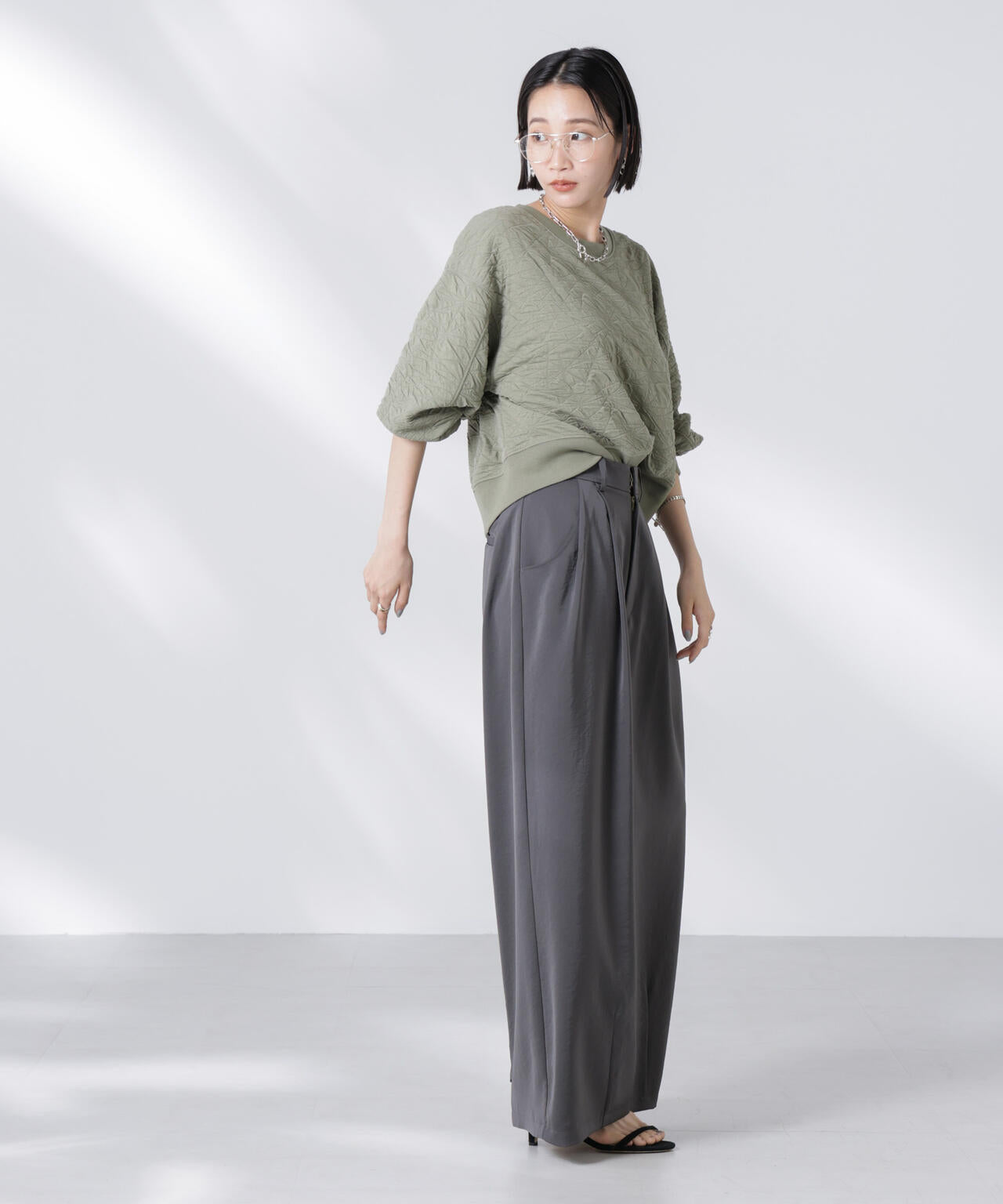・ドロップショルダーで肩と身幅にゆとりを持たせたサイズ感