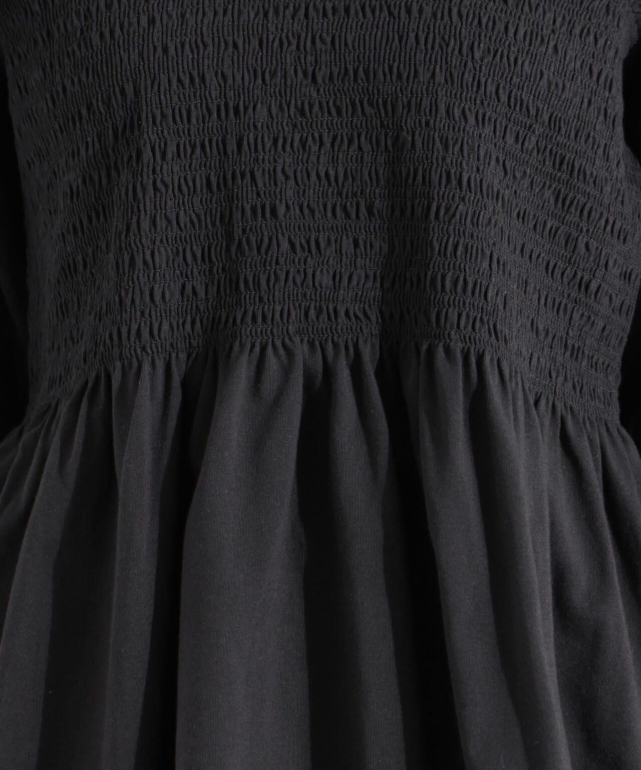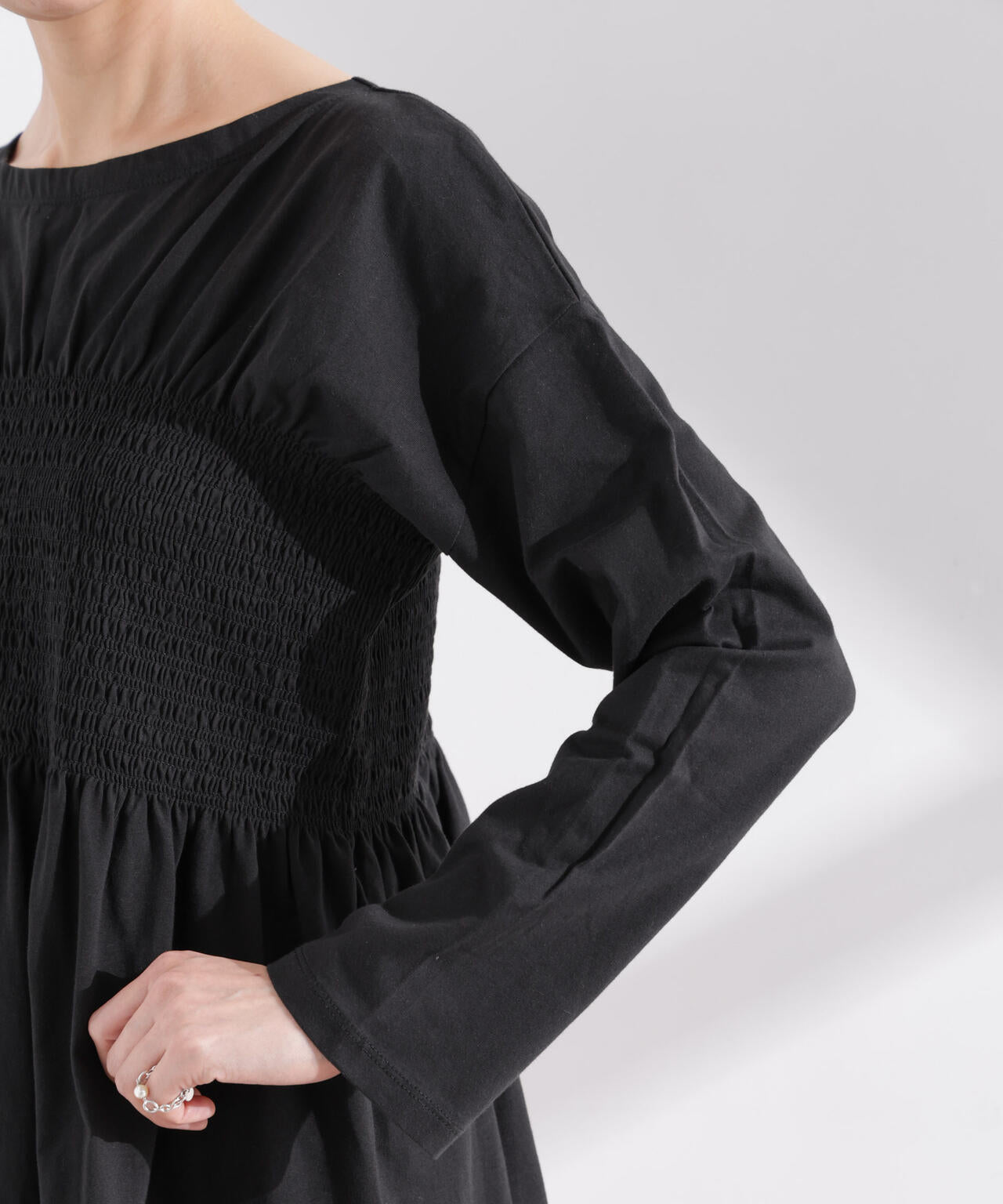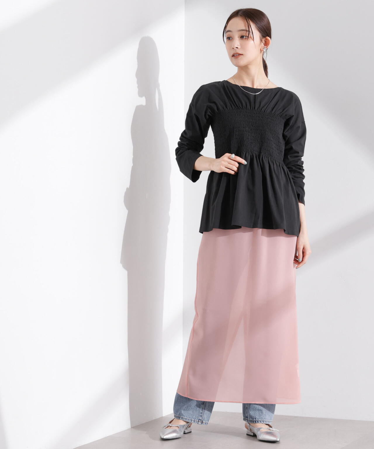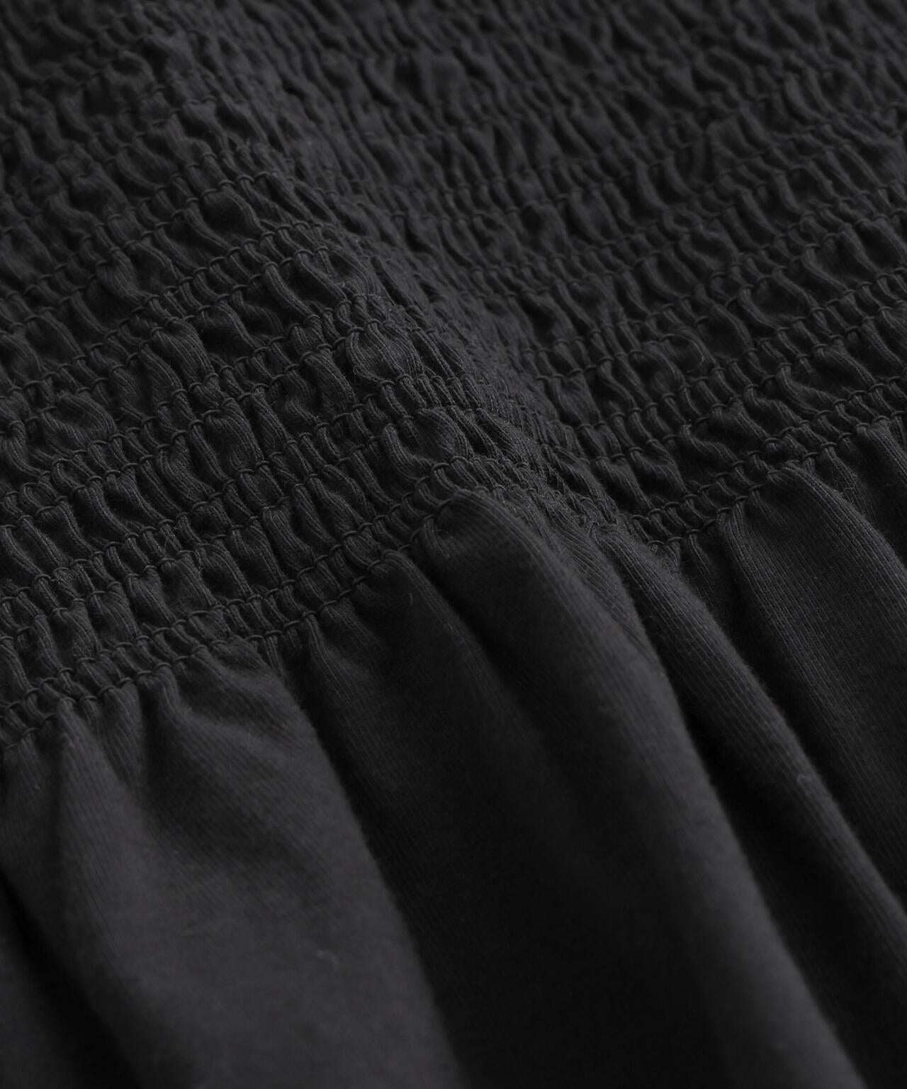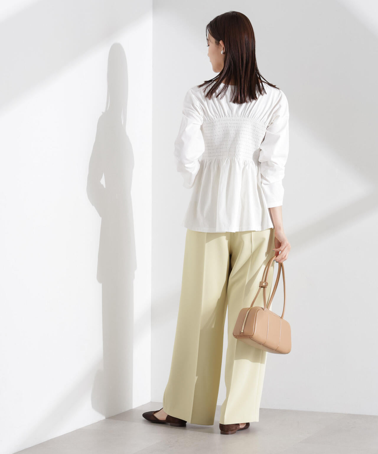 胸元にビスチェのようなシャーリング加工を施した、ブラウスライクなカットソー。女性らしくトレンドライクなルックスに仕上げてくれるので、シンプルなボトムと合わせるだけで様になります。