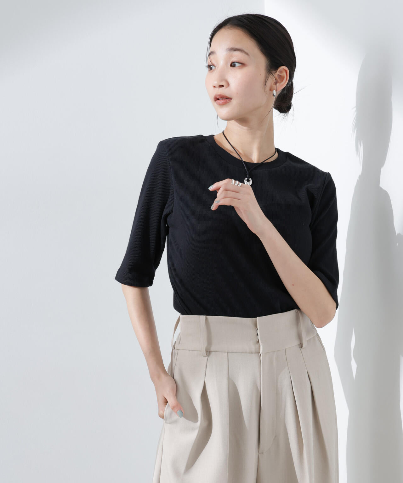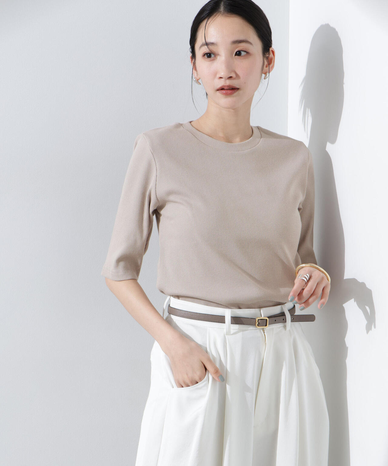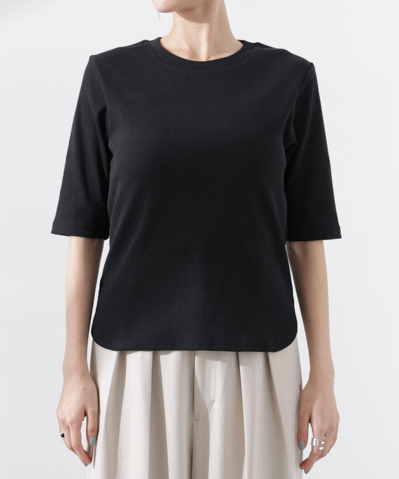 ・汗ばむ季節に嬉しい高機能素材のリブカットソー