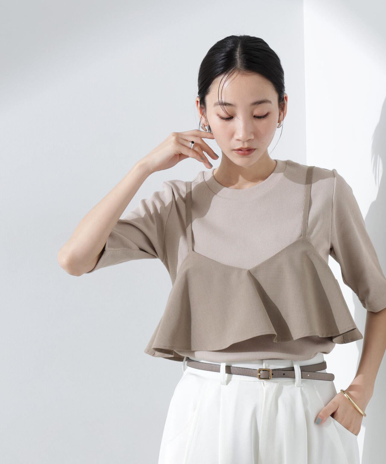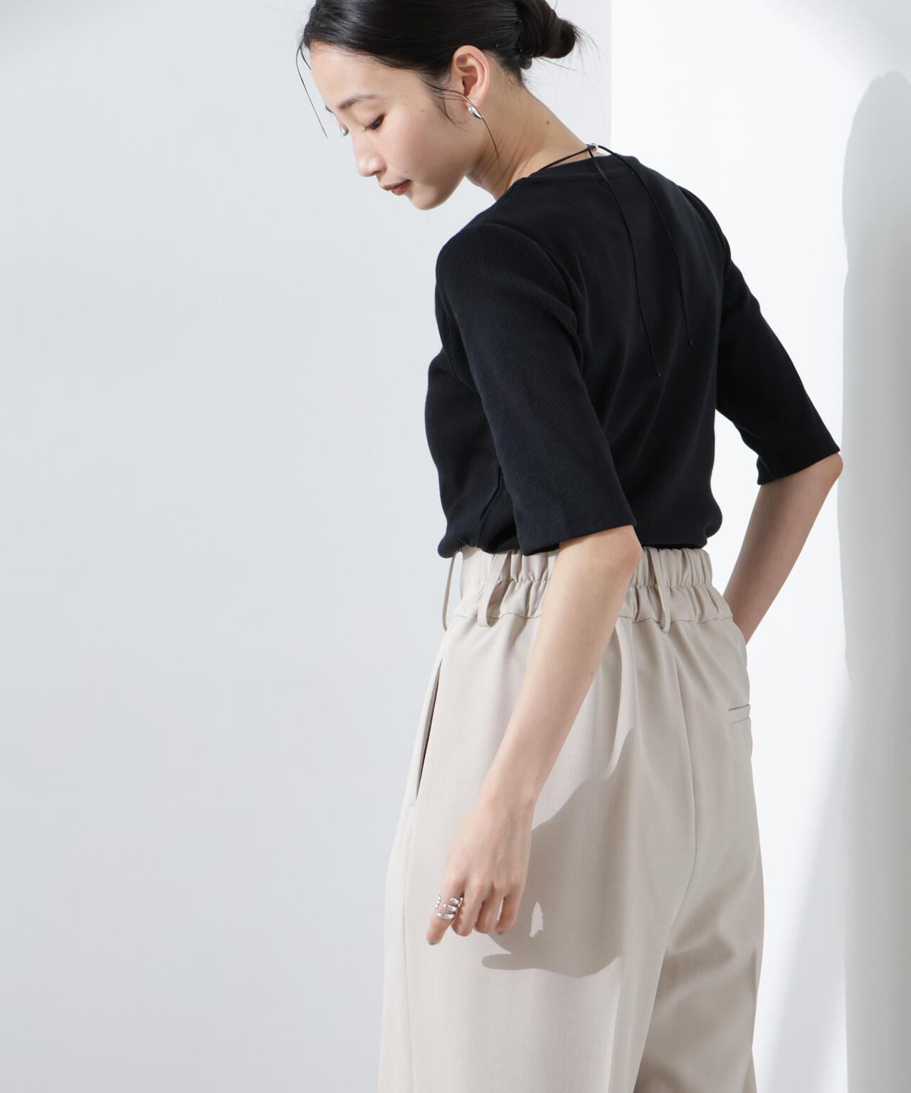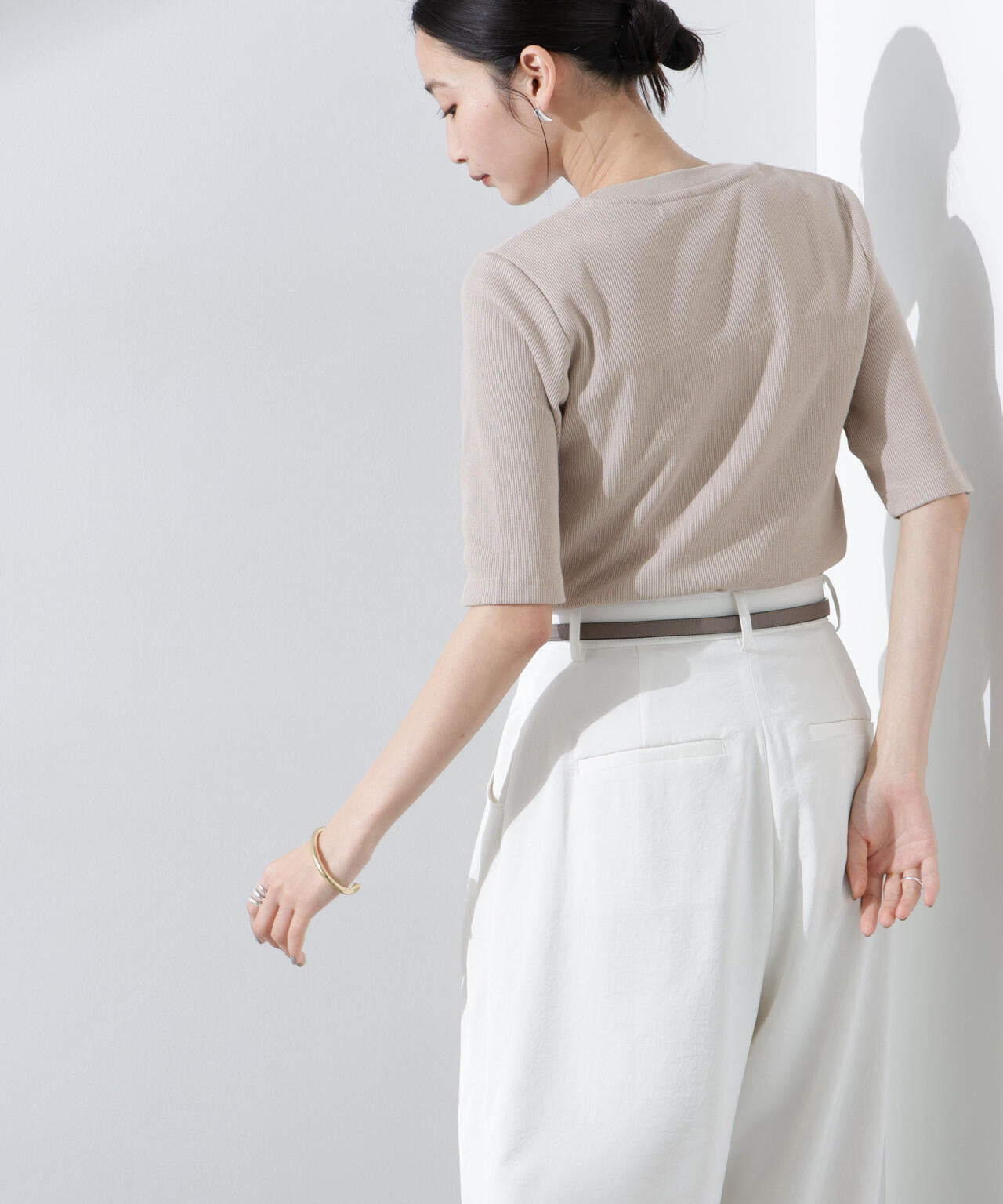 ・汗ばむ季節に嬉しい高機能素材のリブカットソー