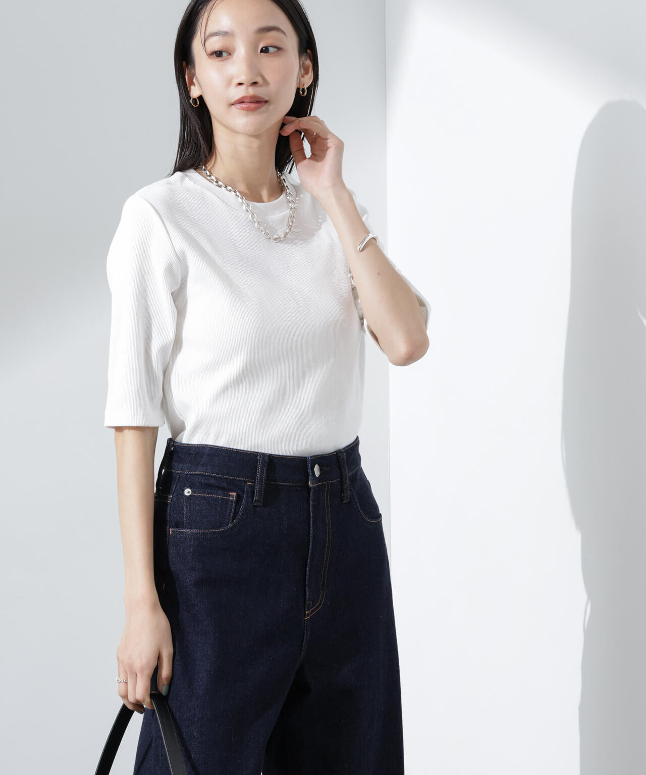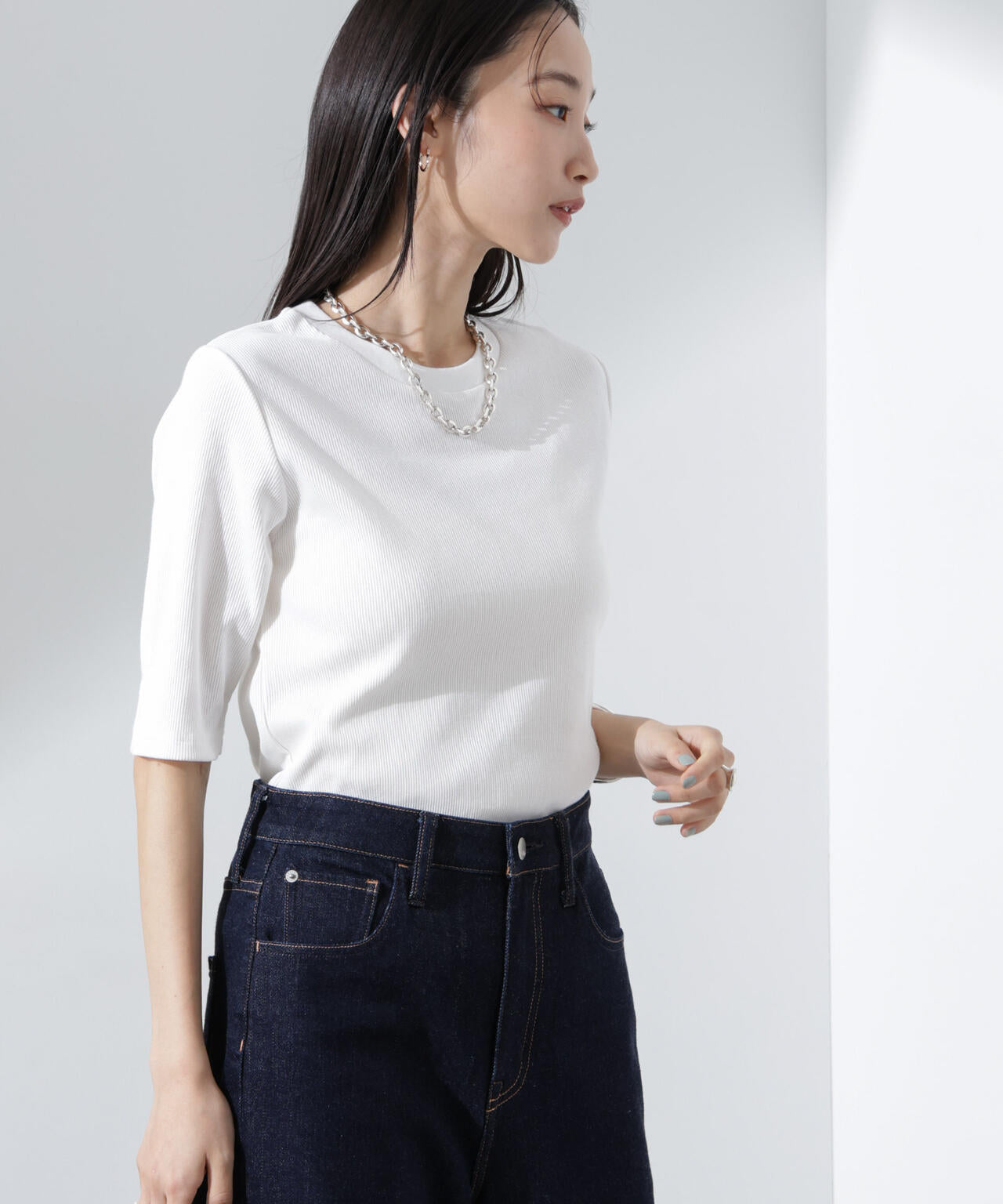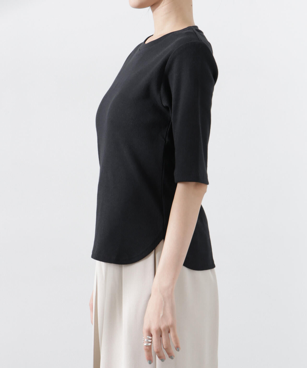 汗ばむ時季に嬉しい高機能性素材のリブカットソー。二の腕をやさしくカバーしてくれるやや長めな袖丈で、大人が上品に着られるルックスに仕上げました。シワになりにくくお手入れが簡単で、汗や水分をすばやく吸収してくれるので着心地も快適。1枚着としてもインナーとしても着回せるので、ワードローブに追加しておくと重宝しそう。