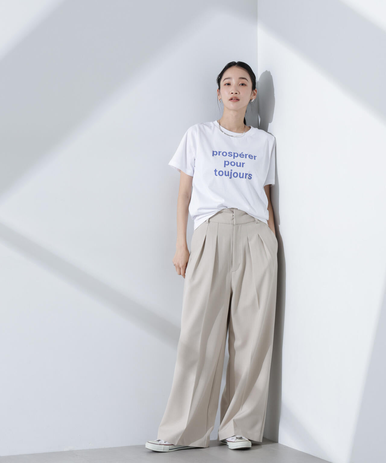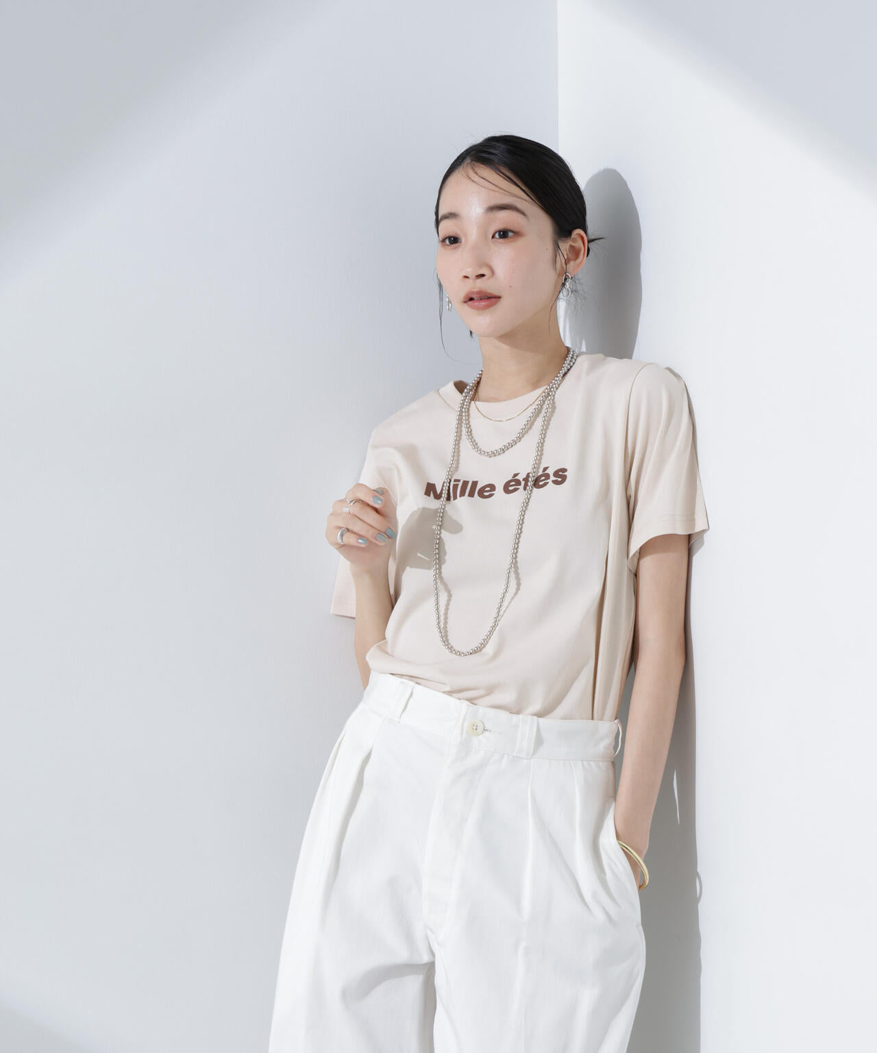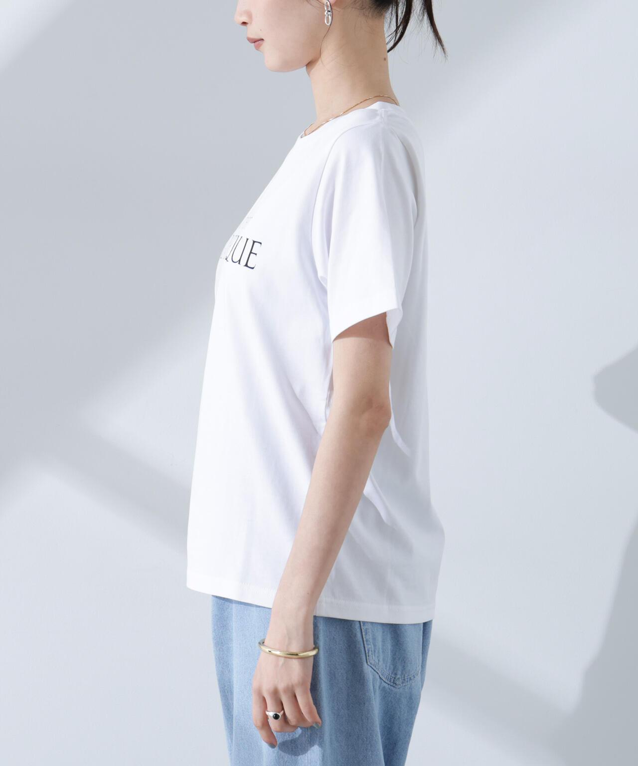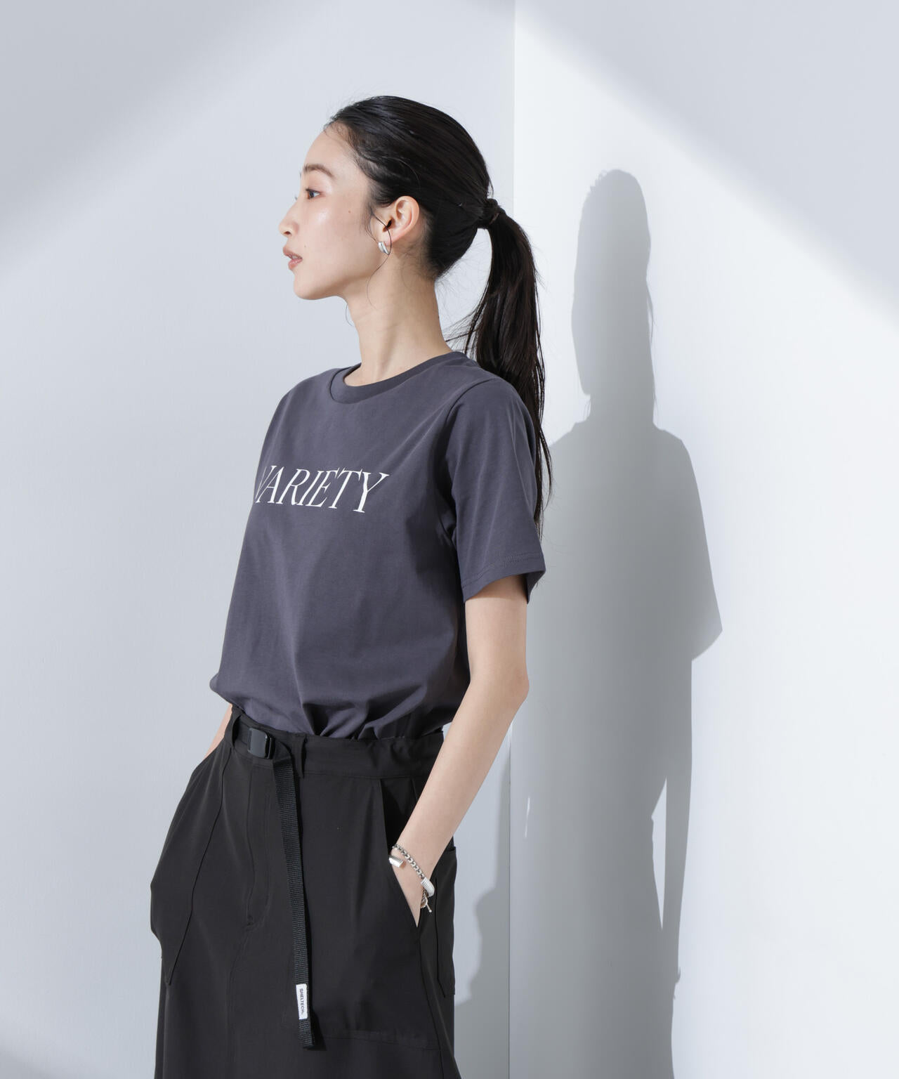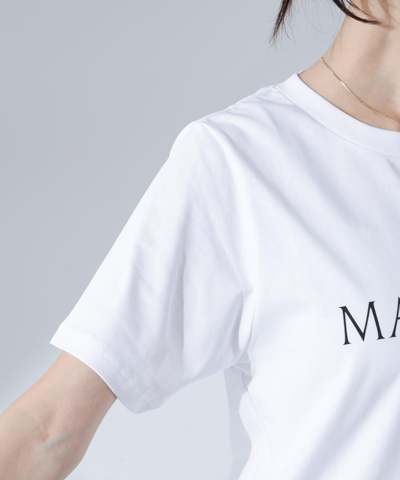 大人カジュアルなスタイルに馴染む、ややきれいめな雰囲気のロゴプリントTシャツ。上品な着こなしていただけるようフォントにこだわったメッセージ性のあるアイテム。カラーバリエーション豊富で、こなれた印象に仕上がるおすすめの一着です。