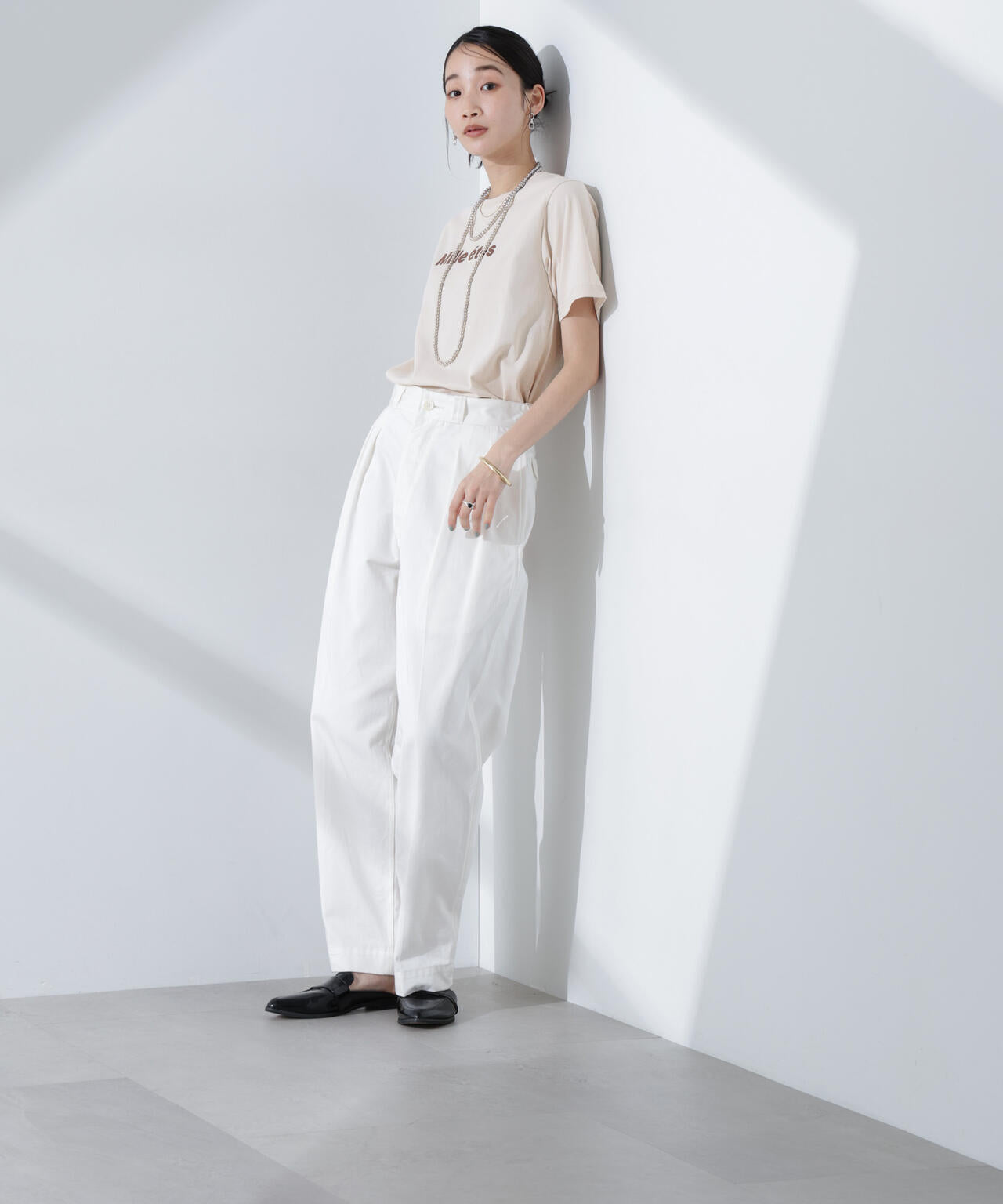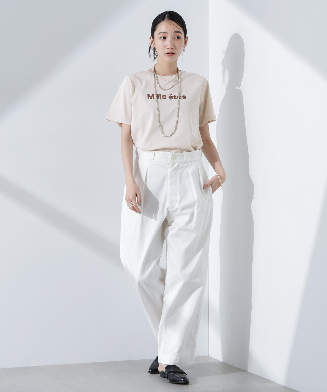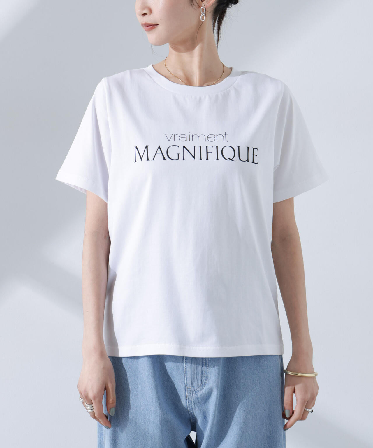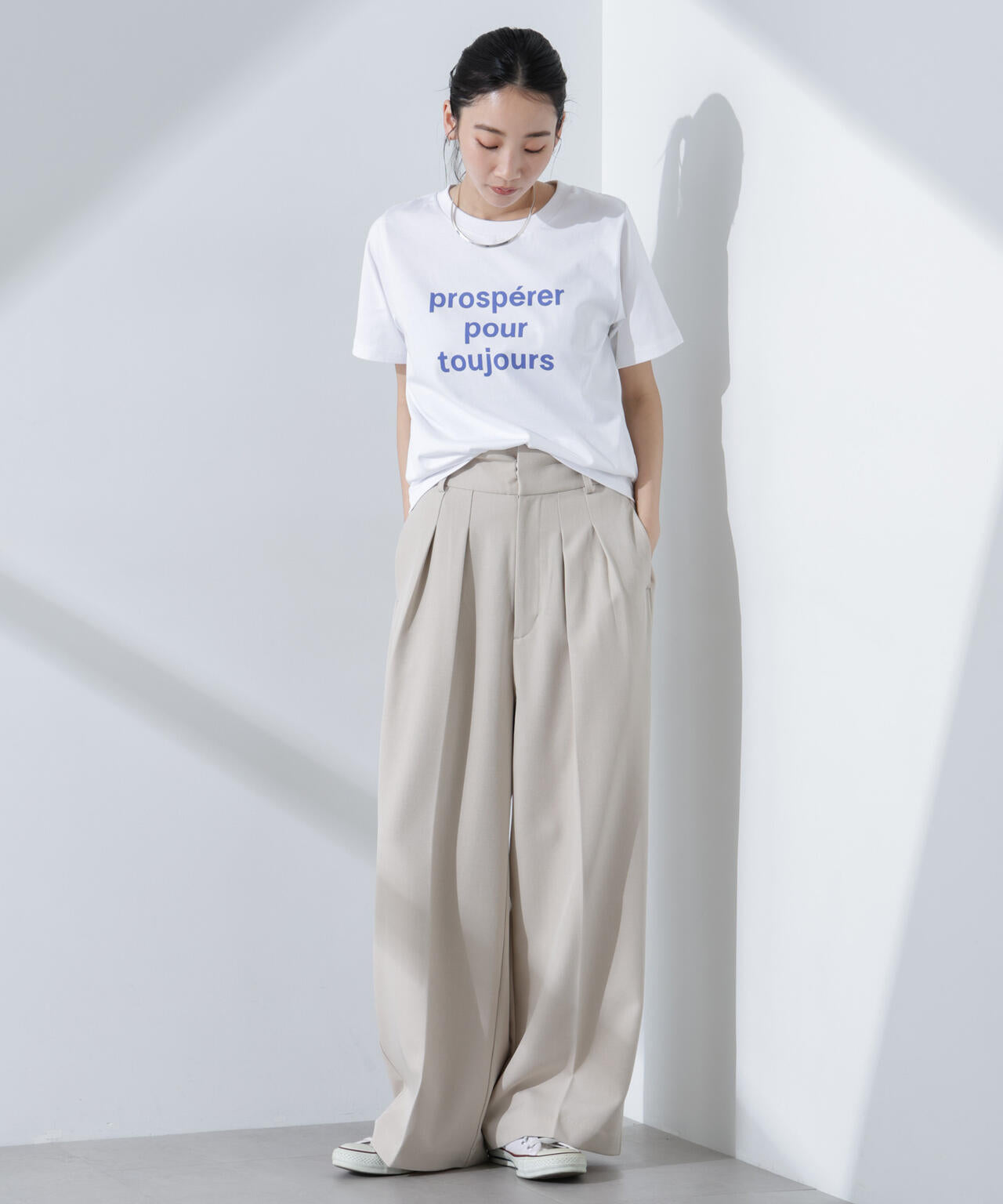 大人カジュアルなスタイルに馴染む、ややきれいめな雰囲気のロゴプリントTシャツ。上品な着こなしていただけるようフォントにこだわったメッセージ性のあるアイテム。カラーバリエーション豊富で、こなれた印象に仕上がるおすすめの一着です。
