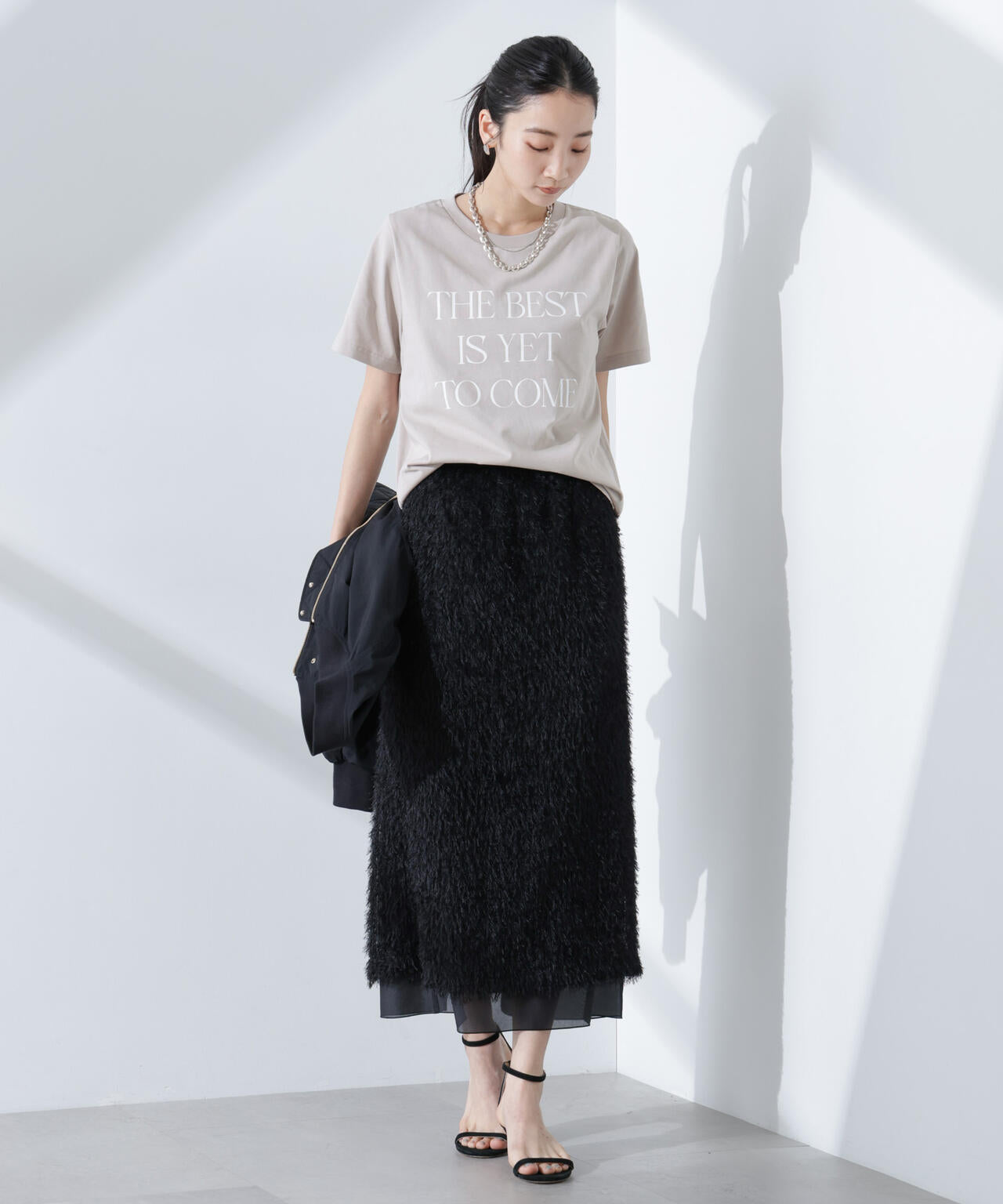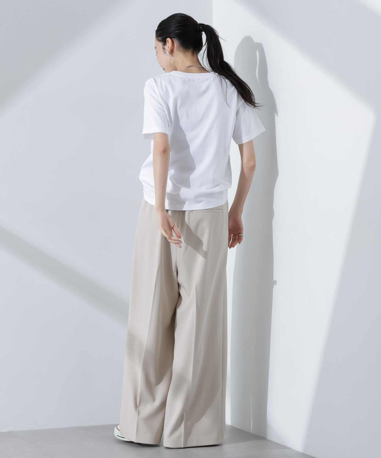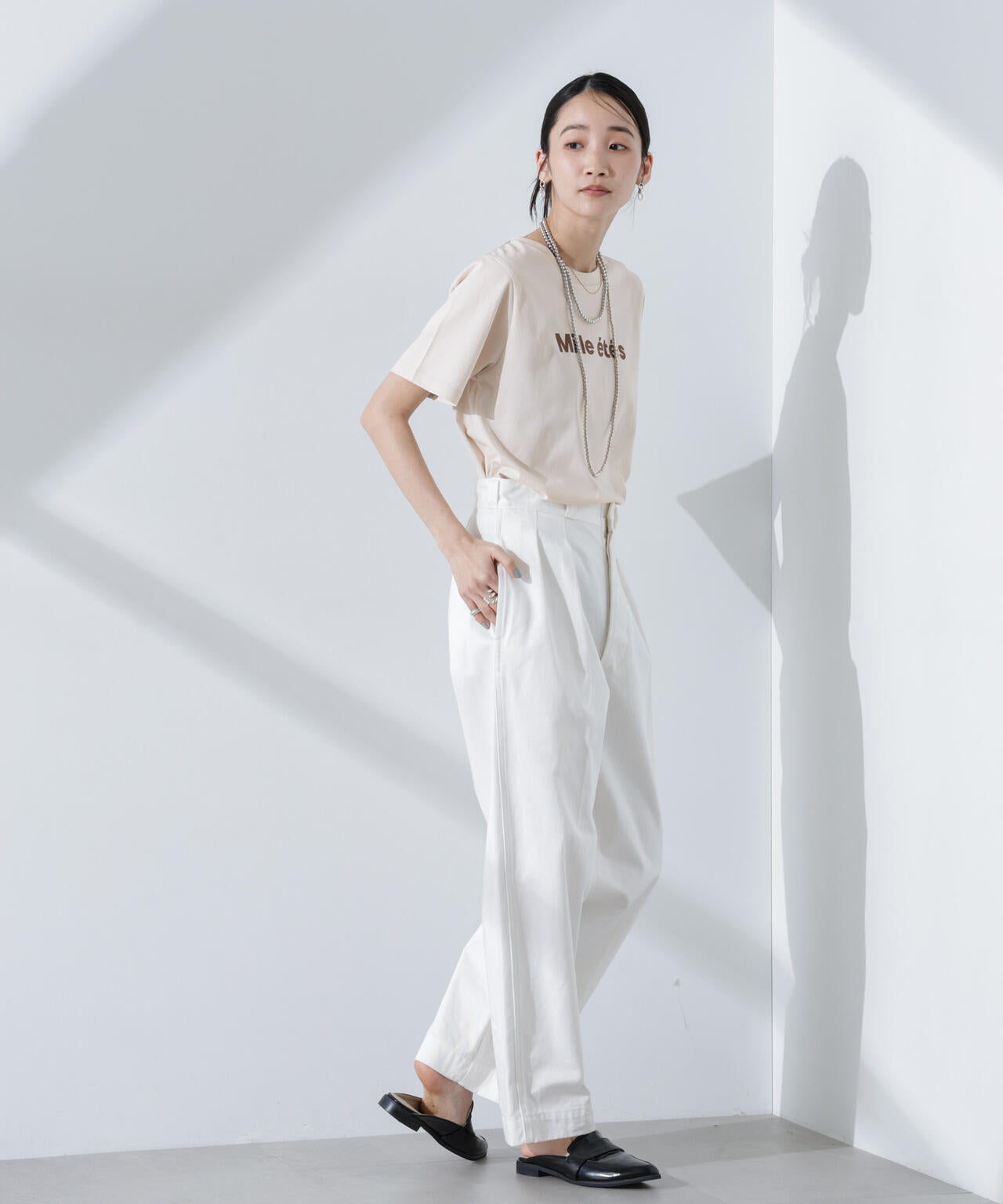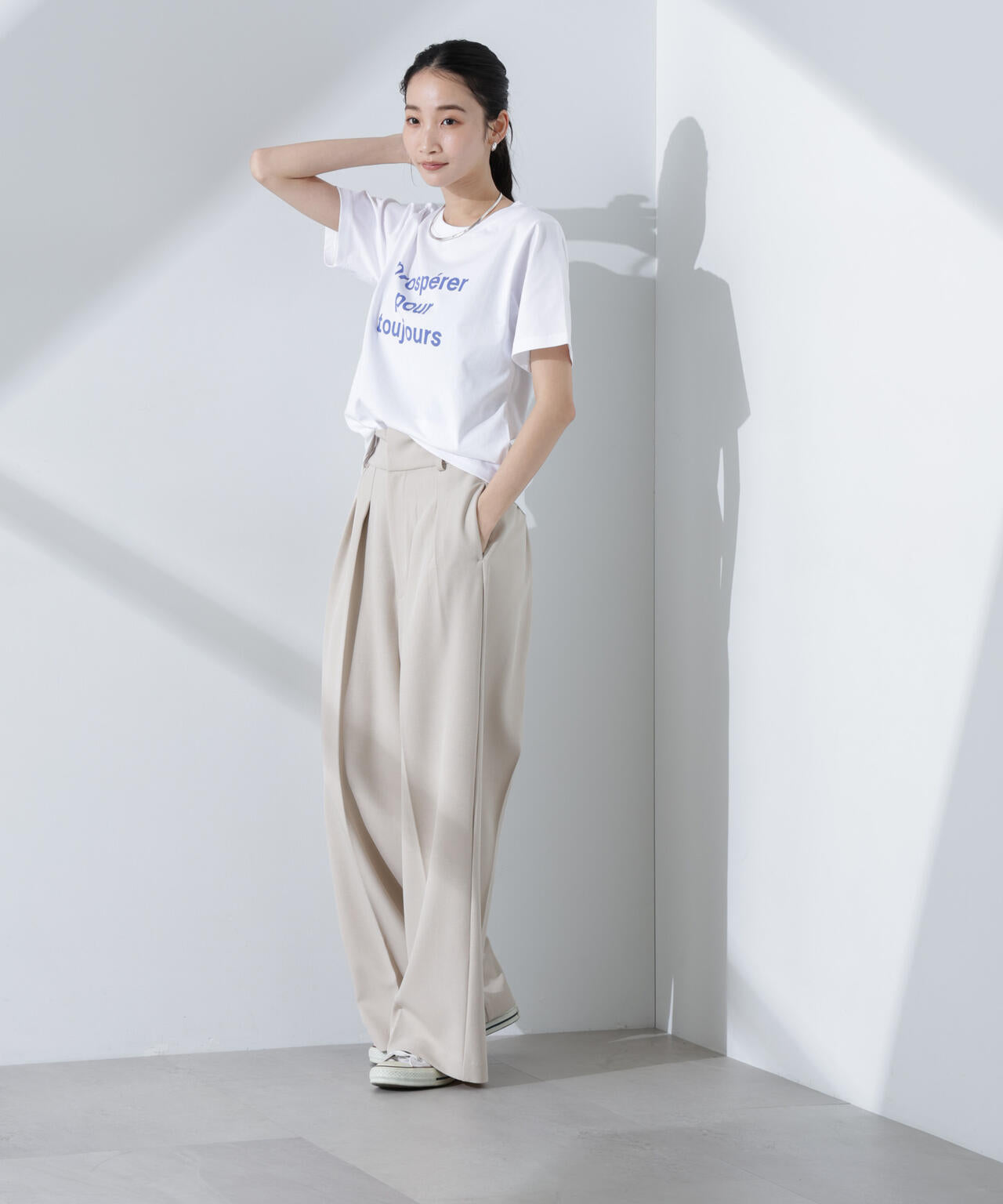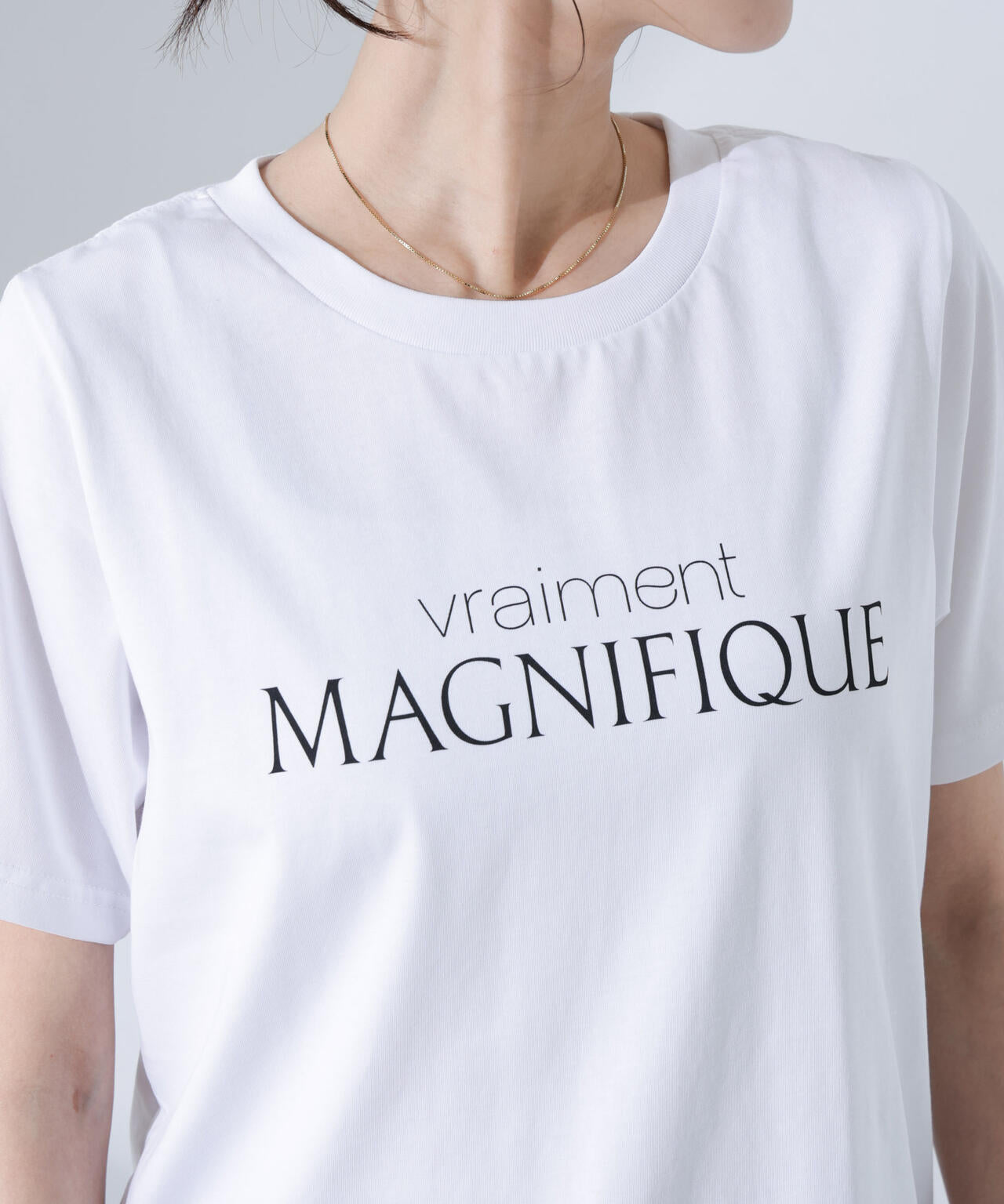 大人カジュアルなスタイルに馴染む、ややきれいめな雰囲気のロゴプリントTシャツ。上品な着こなしていただけるようフォントにこだわったメッセージ性のあるアイテム。カラーバリエーション豊富で、こなれた印象に仕上がるおすすめの一着です。
