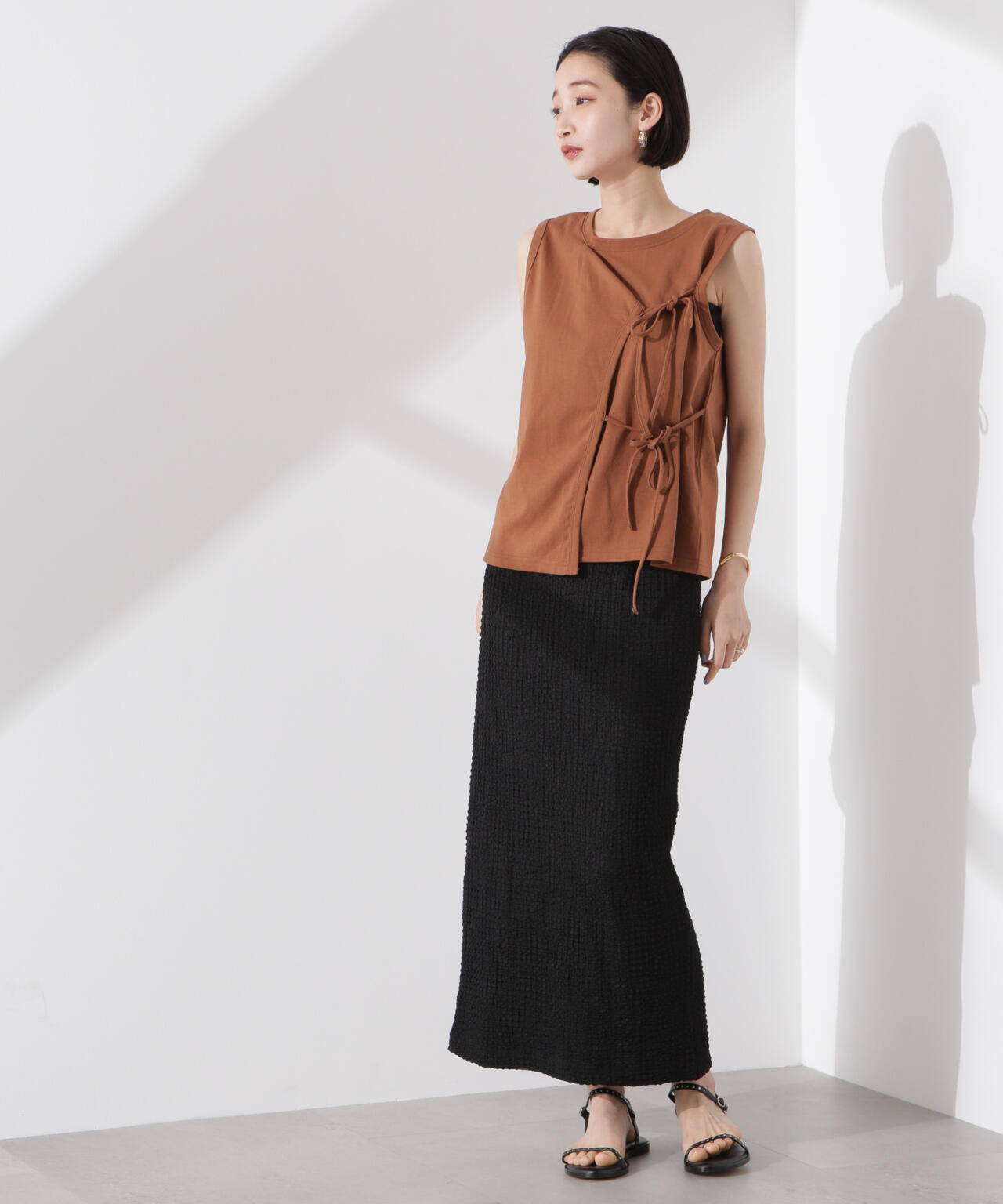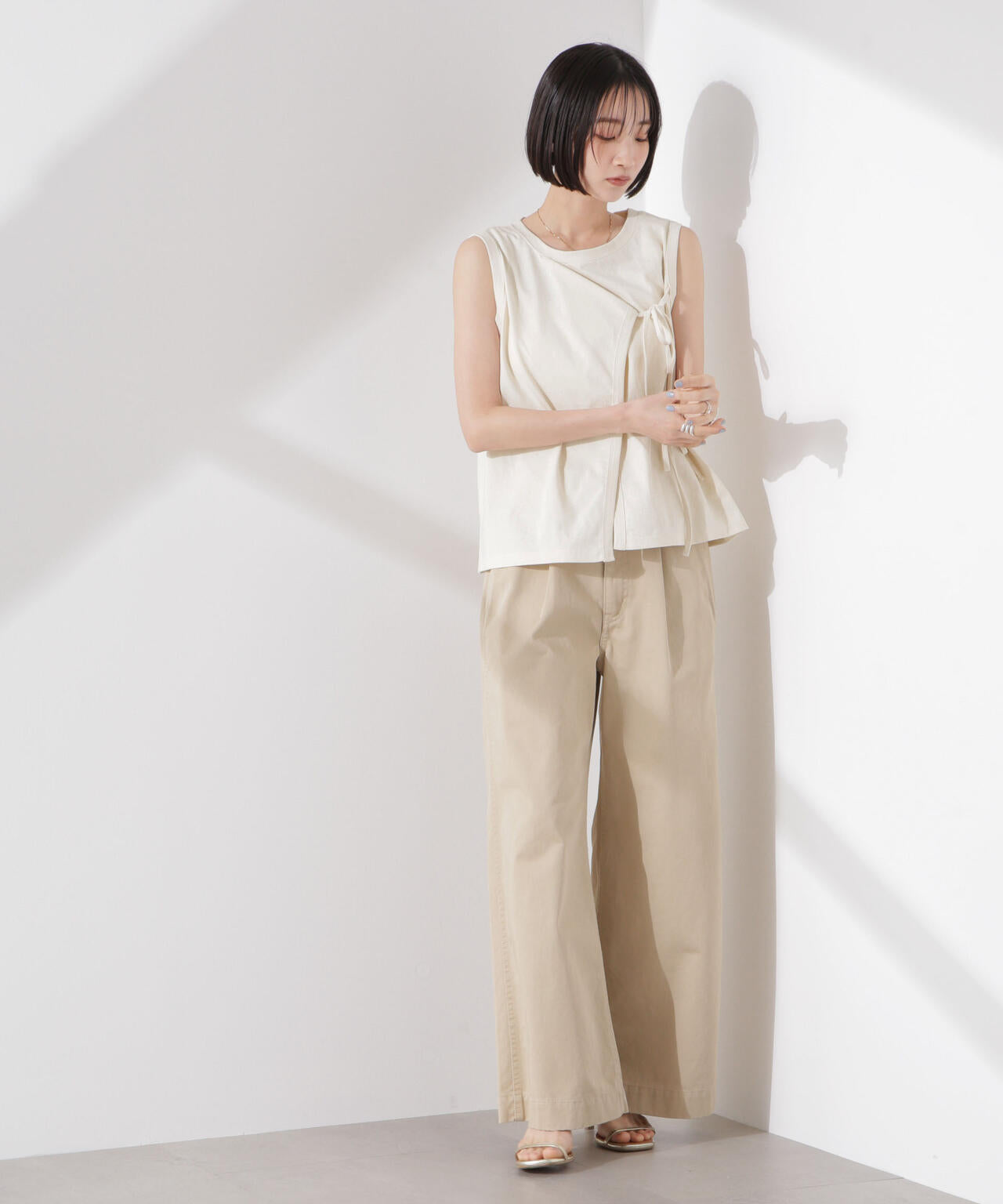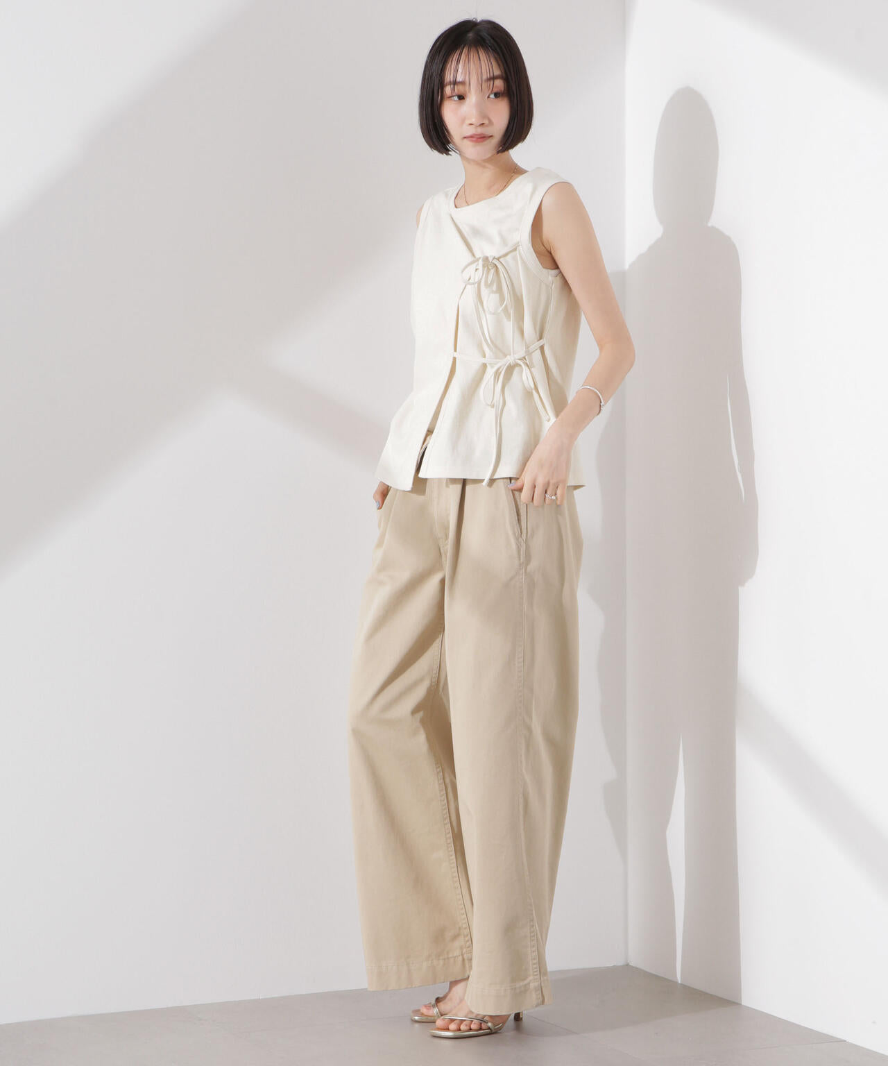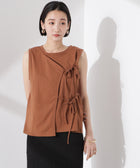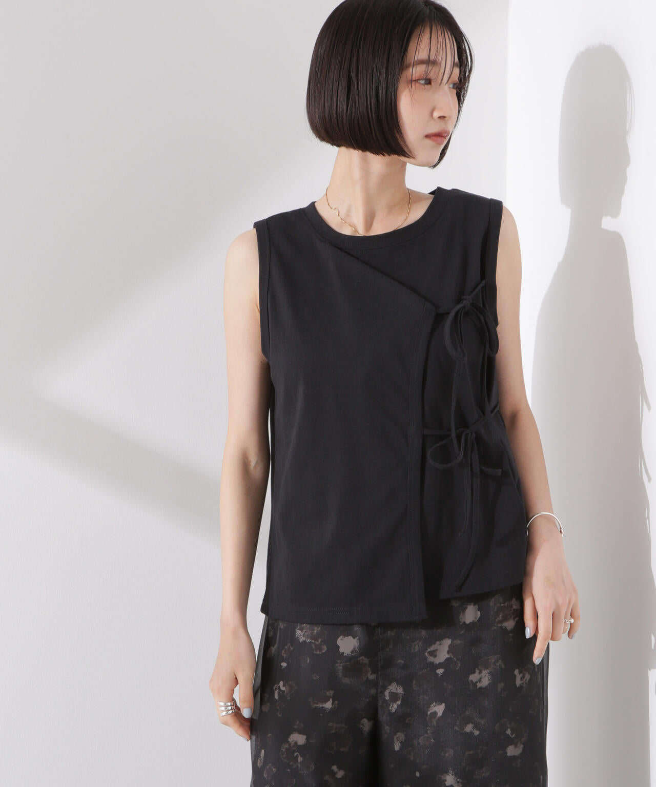 ・フロントに施されたリボンディテールが女性らしい印象のノースリーブトップス