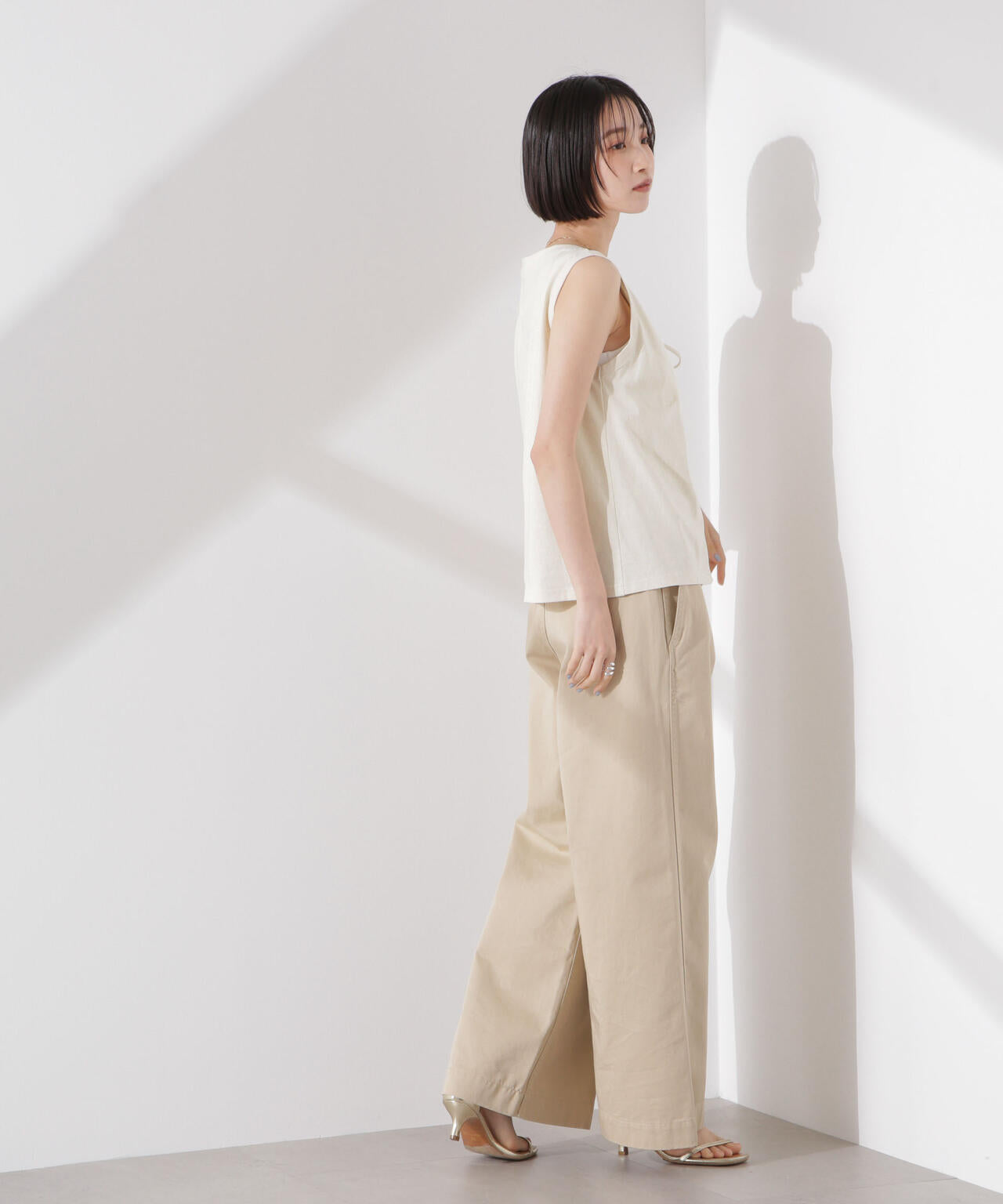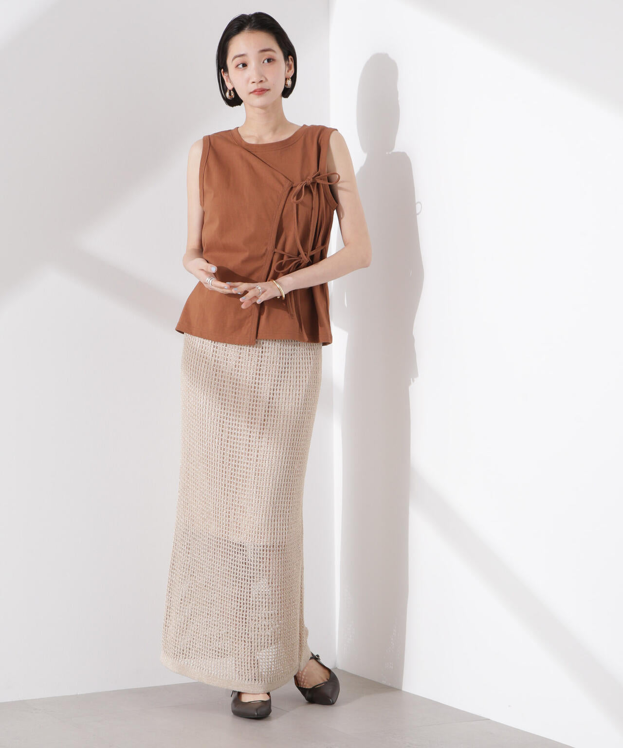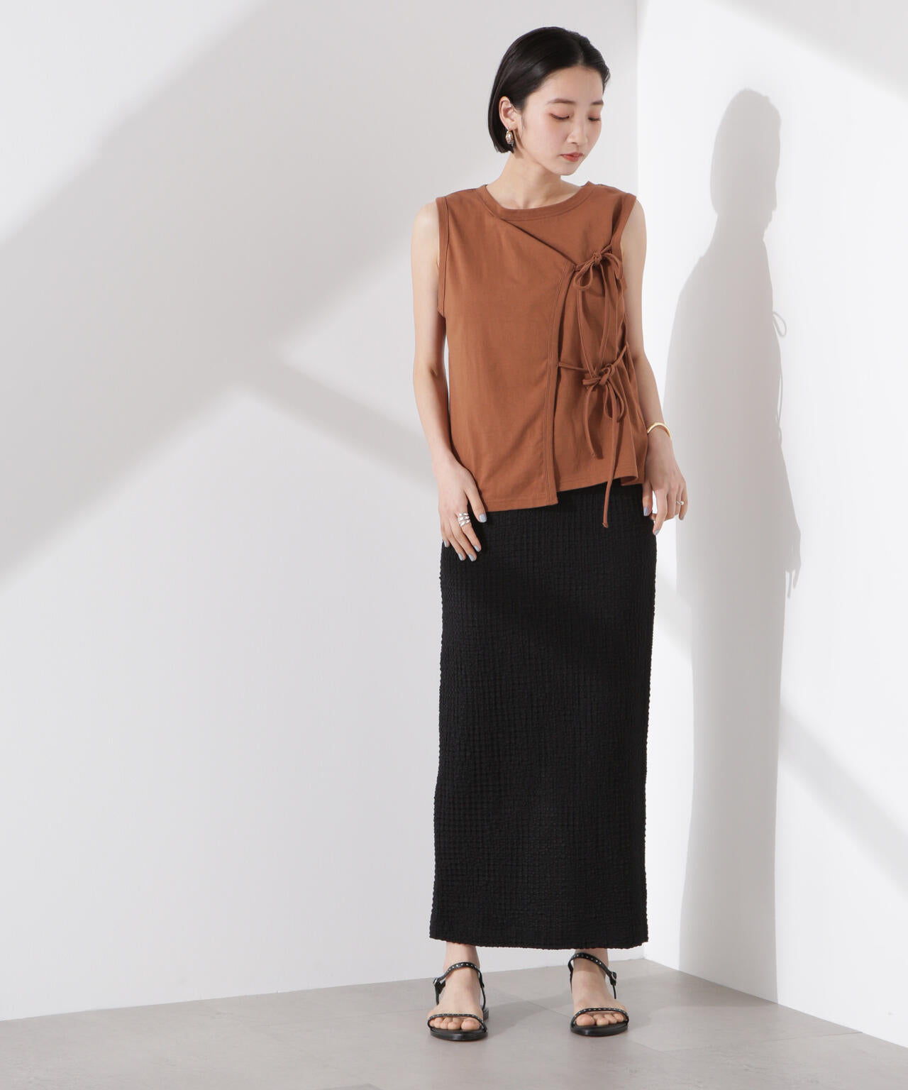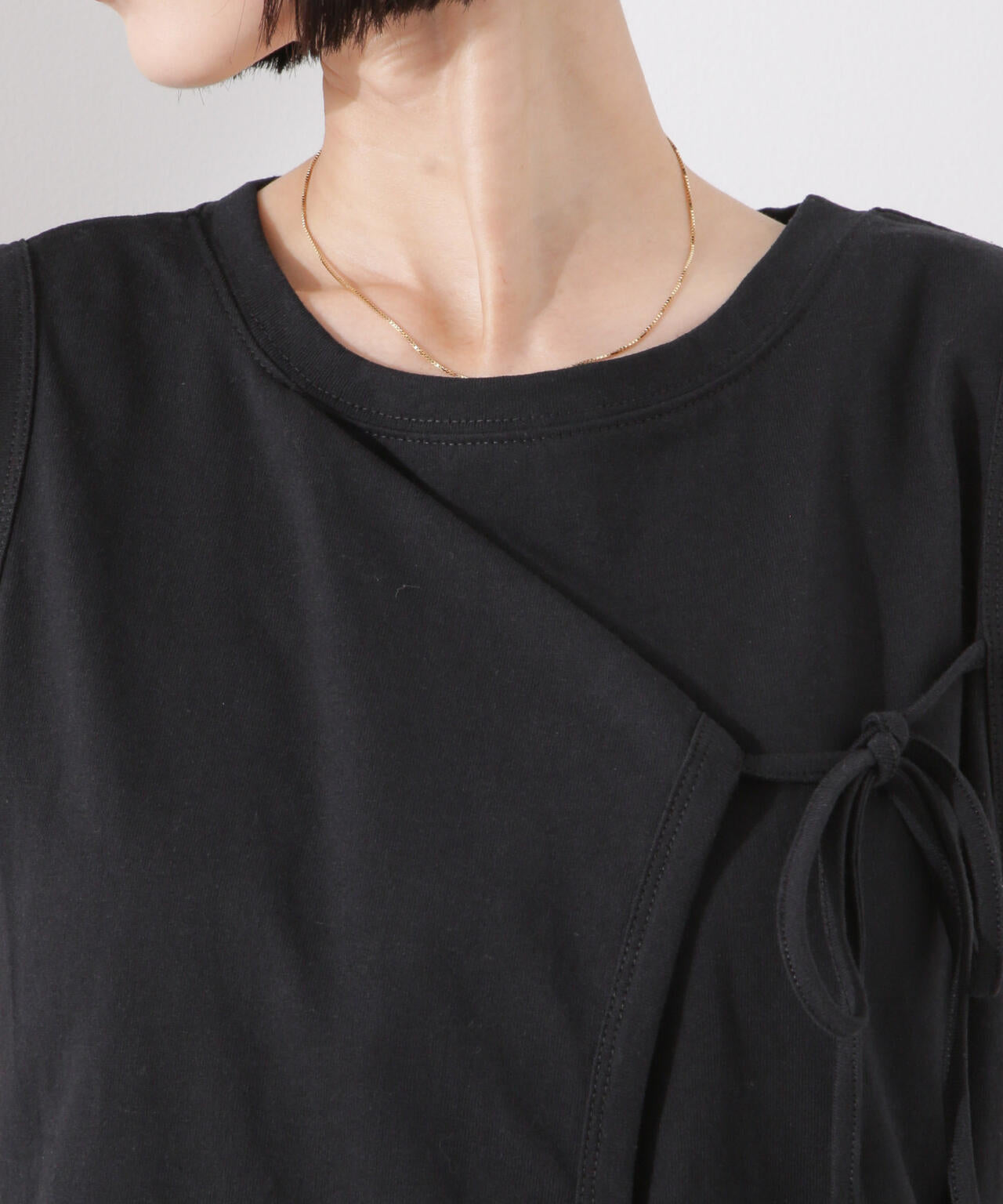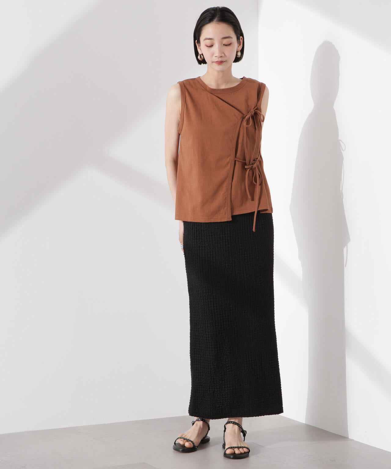 ・フロントに施されたリボンディテールが女性らしい印象のノースリーブトップス