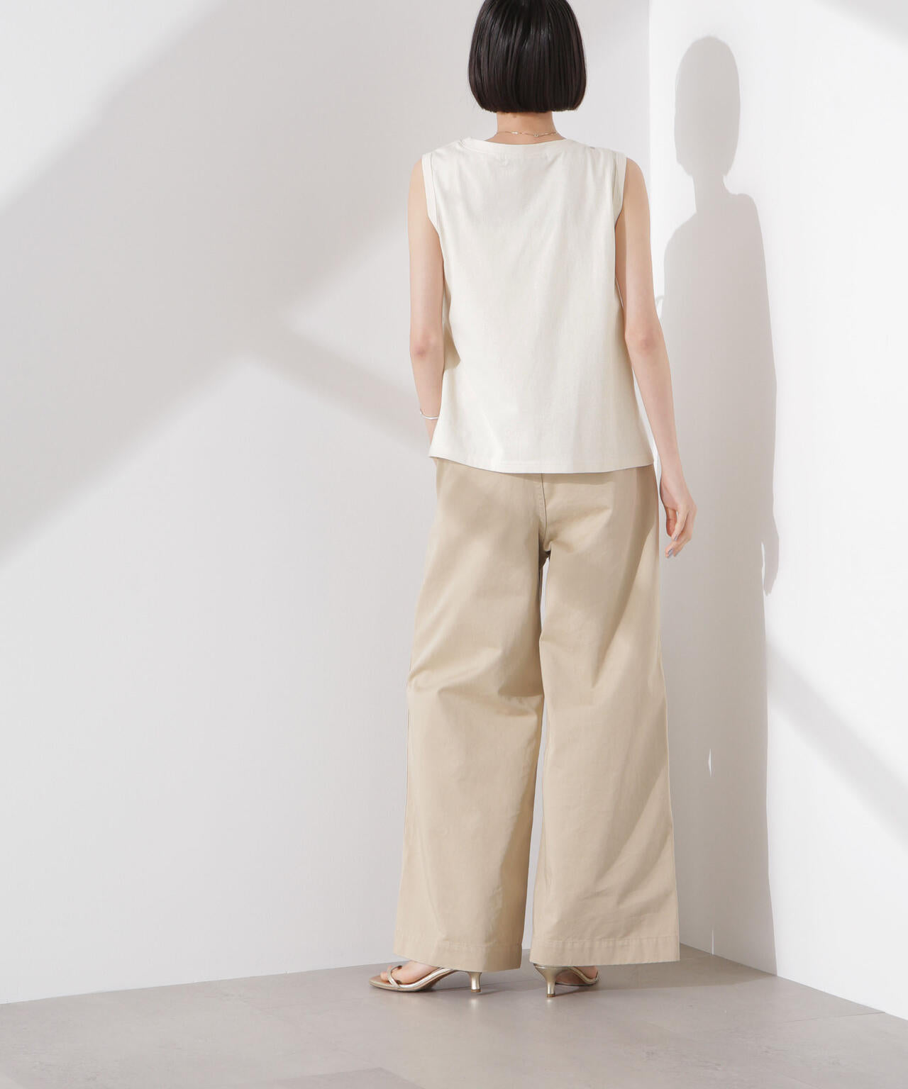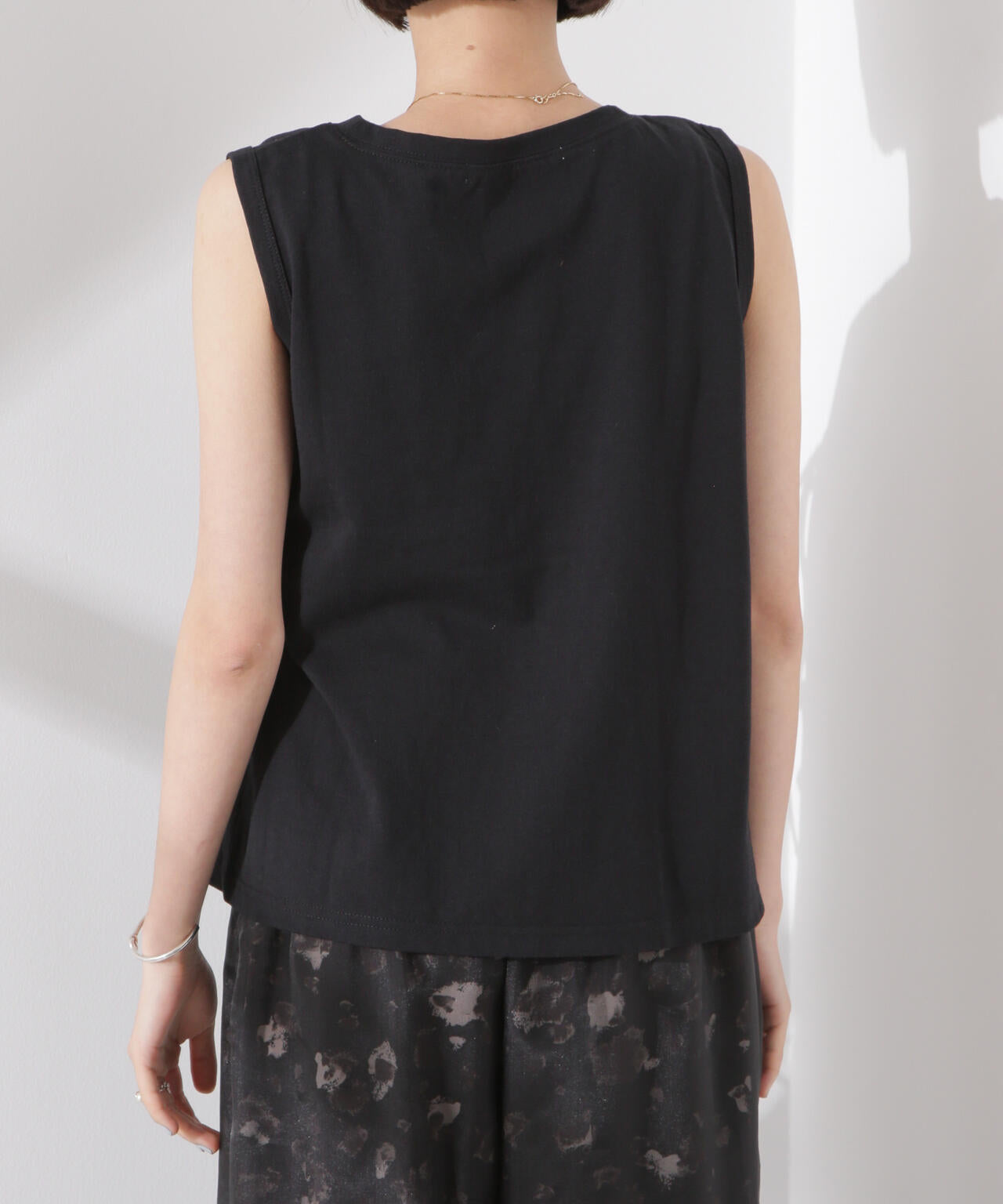 ・6735124328 ドライタッチ天竺フロントギャザーヘムノースリーブトップス