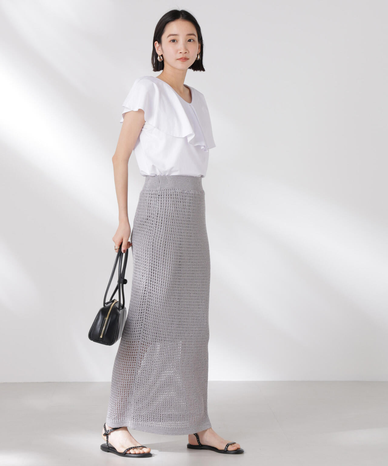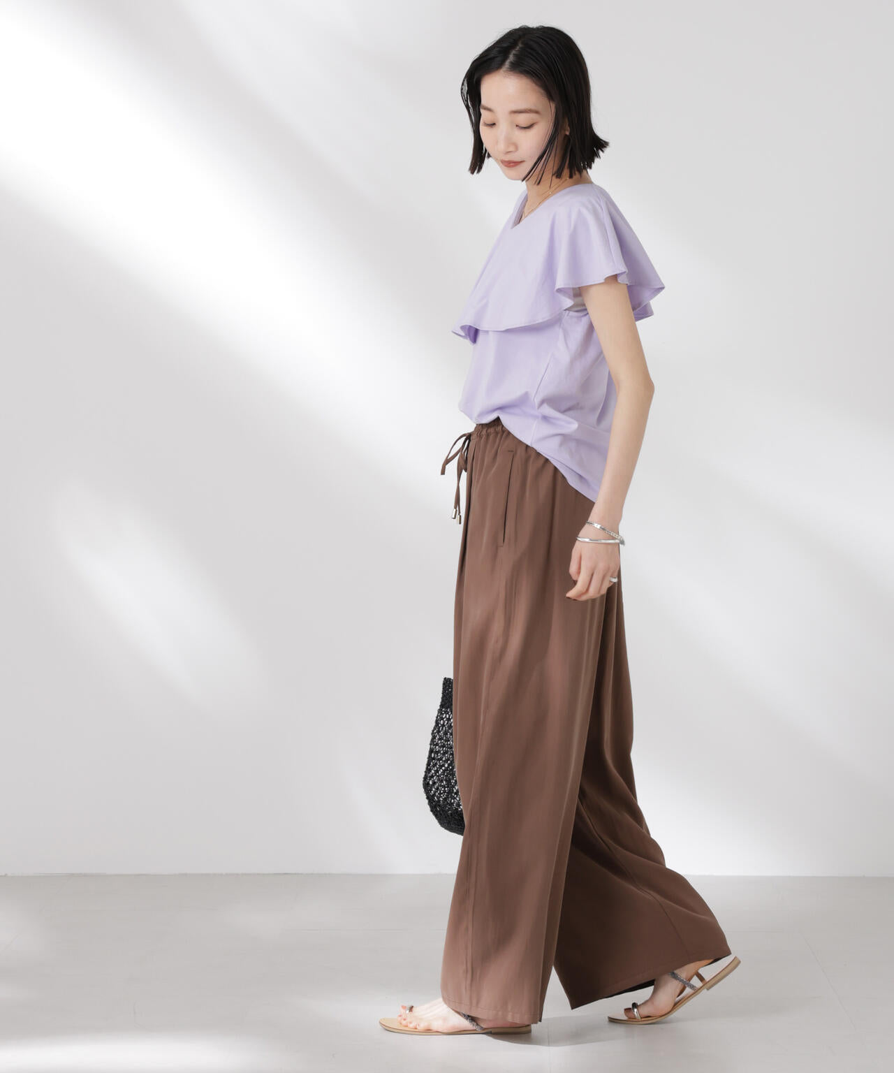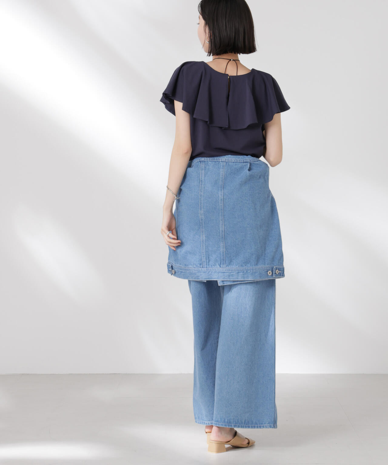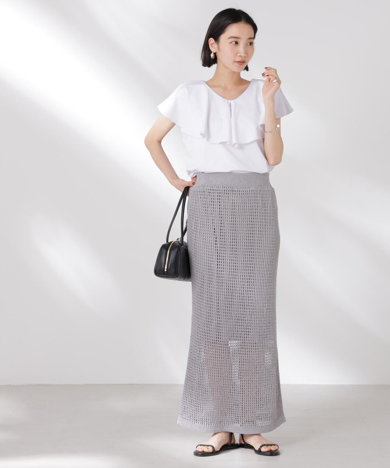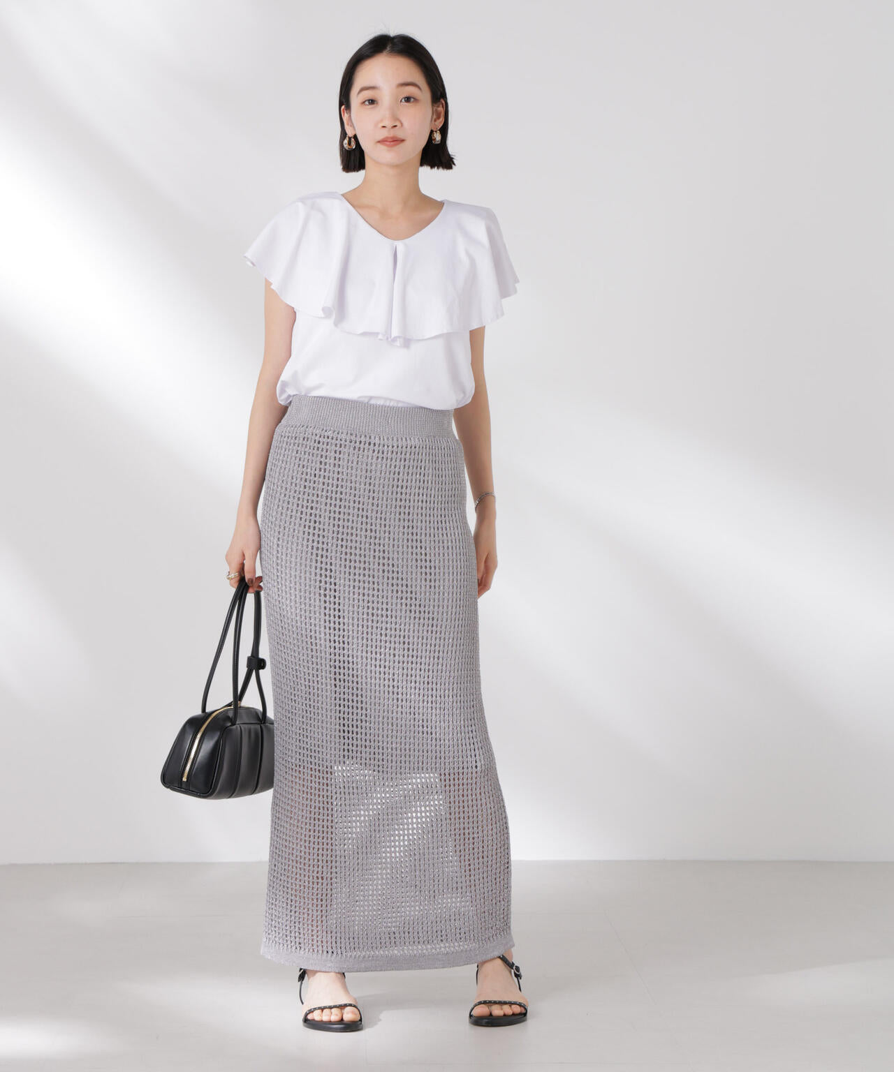 ・ノースリーブながら肩先を自然とカバーしてくれるラッフル衿