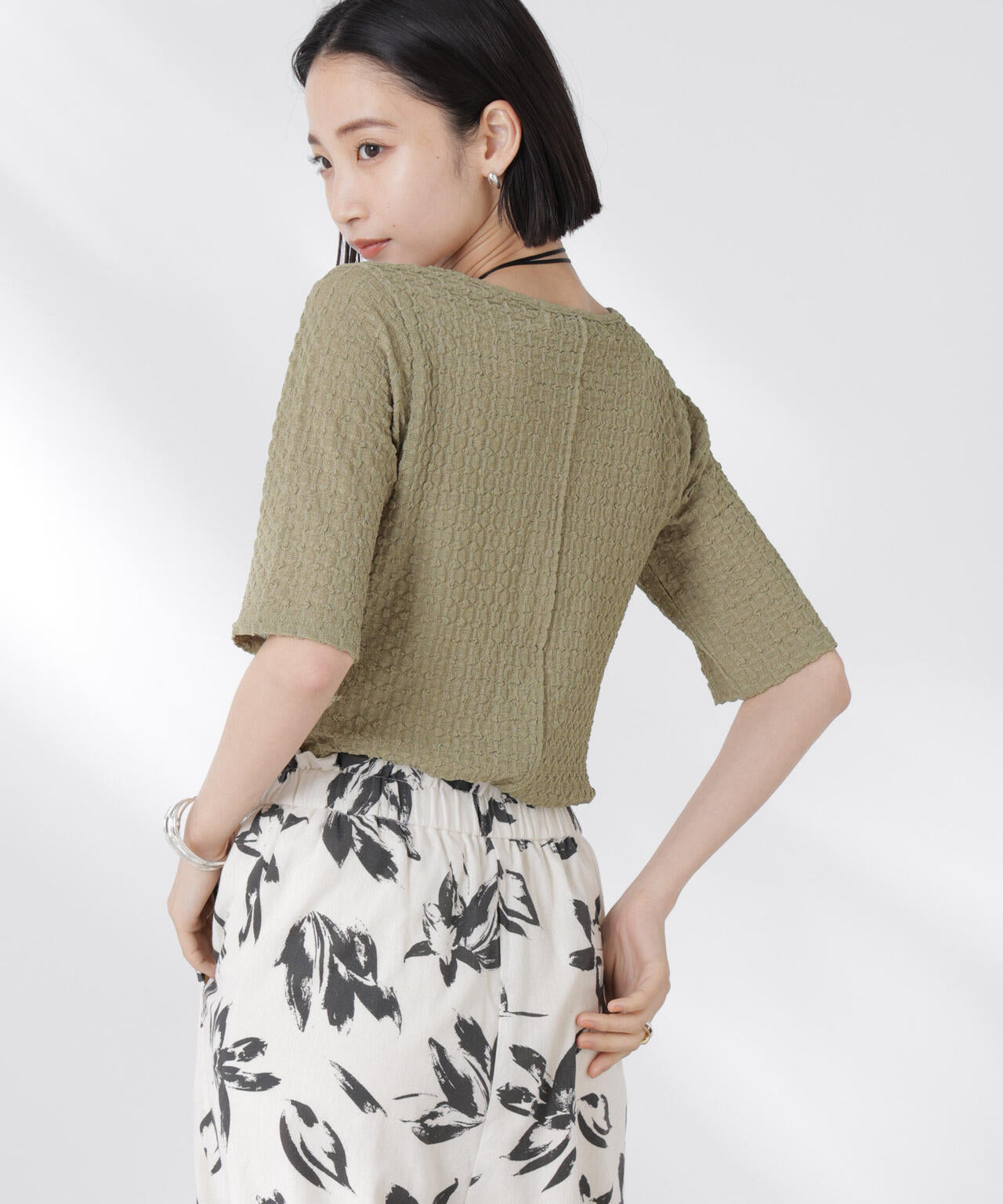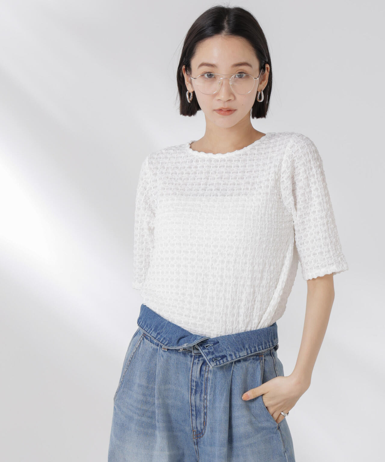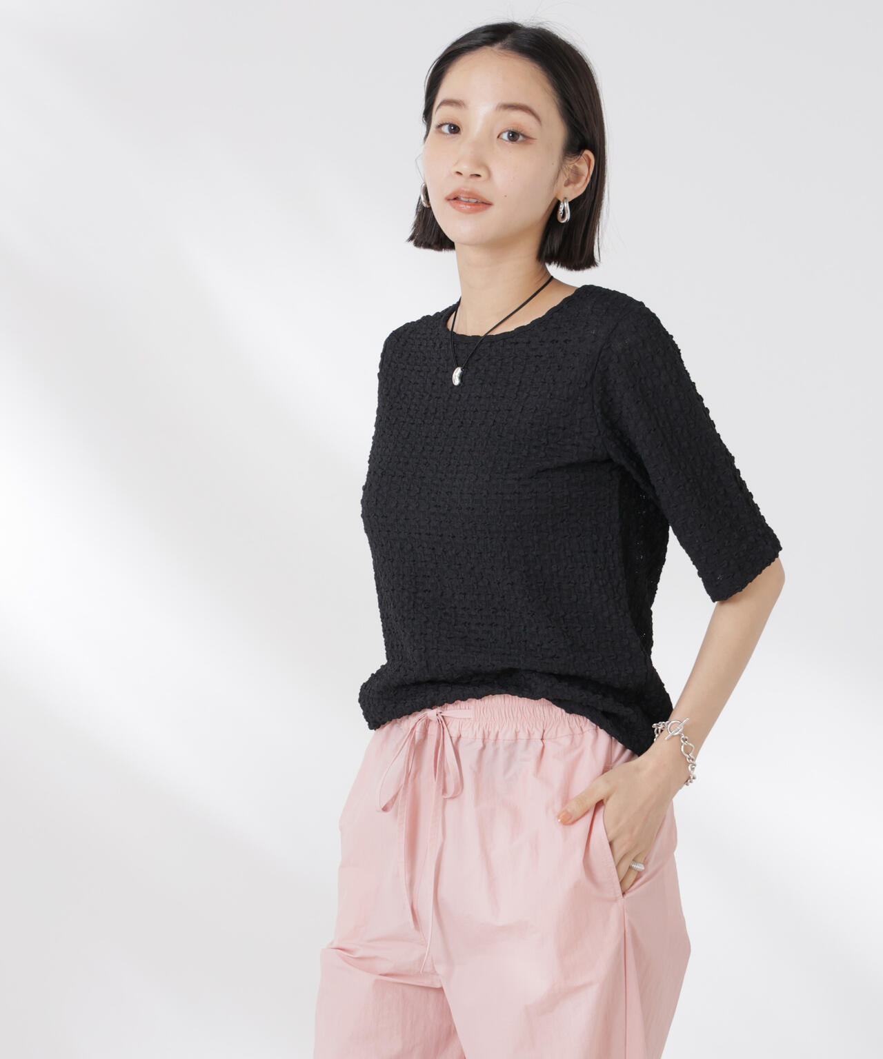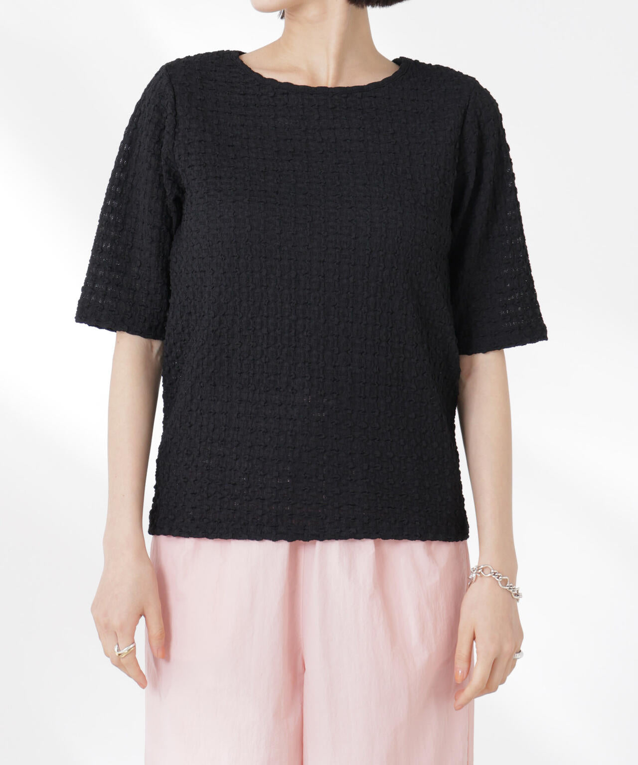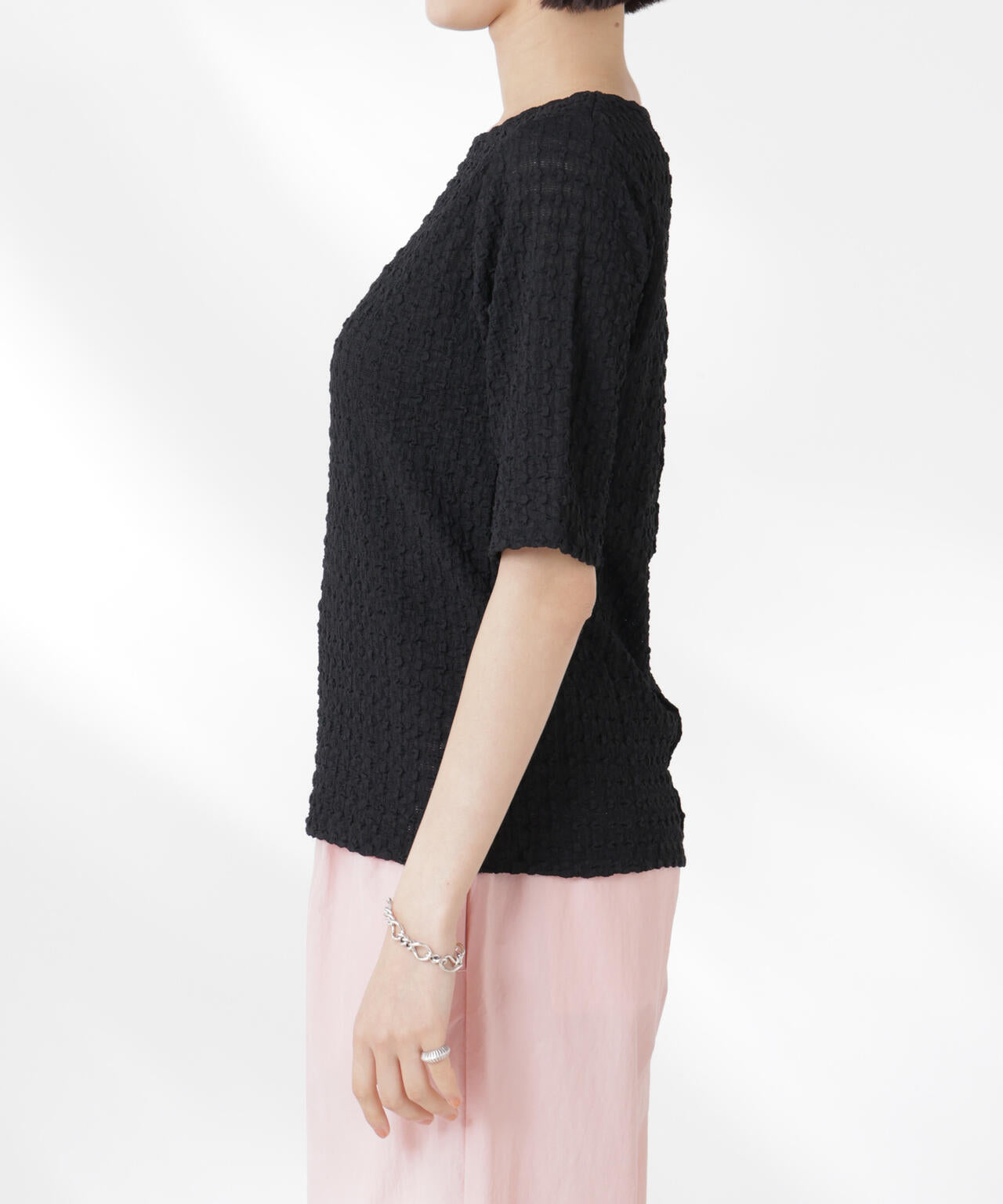 ポコポコした立体感のあるカットソー素材で仕立てたシンプルなクルーネックTシャツ。タイト過ぎずワイド過ぎずの程良いサイズ感で、一枚でもインナーとしても活躍してくれます。