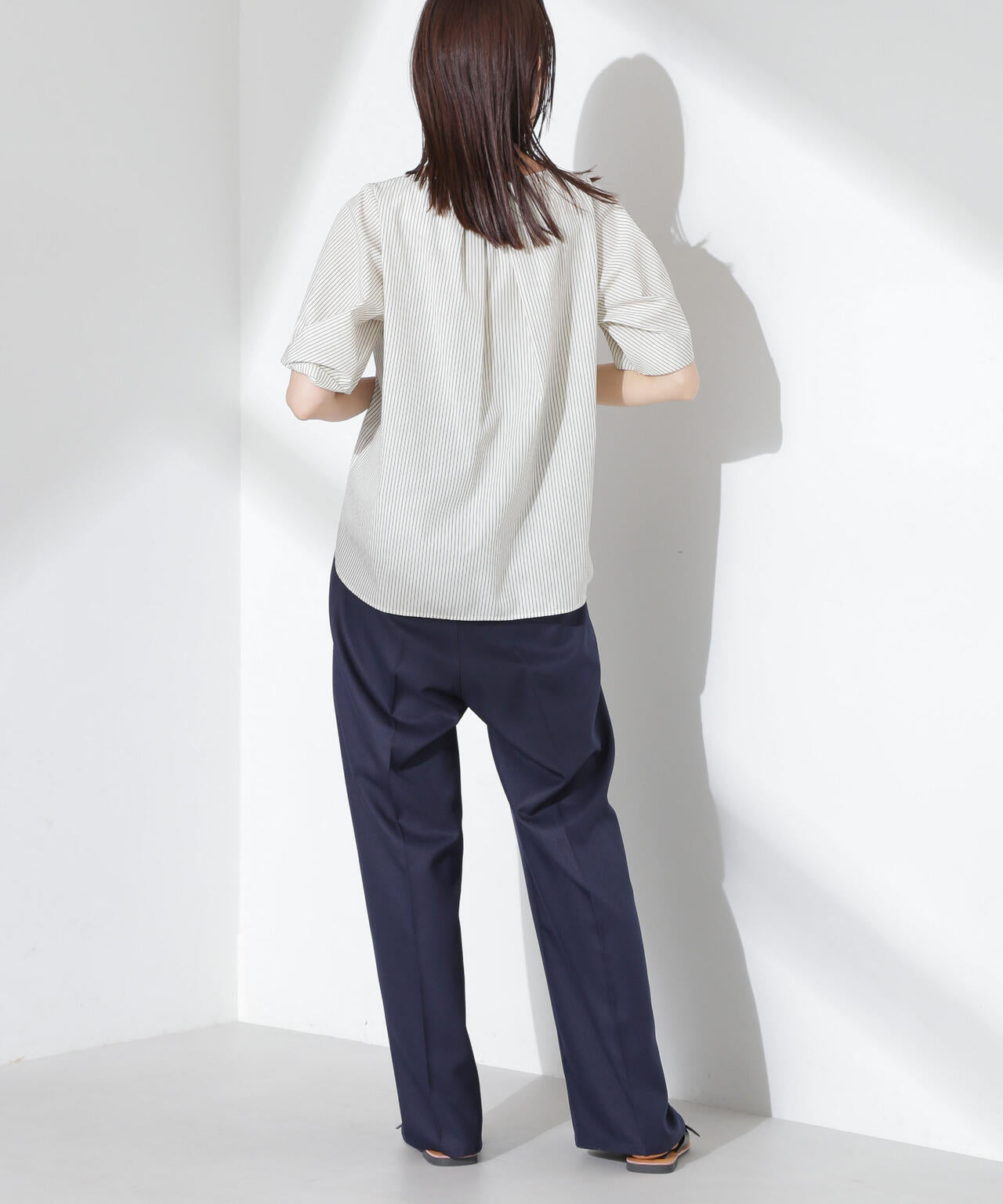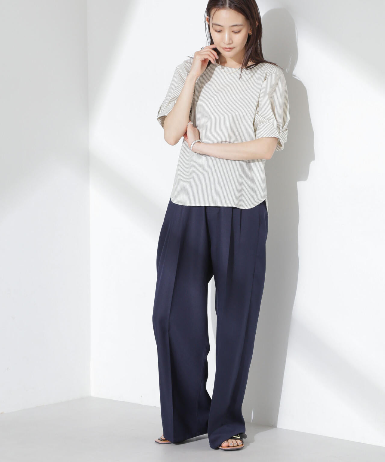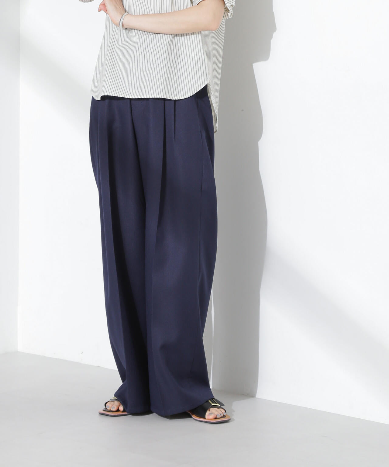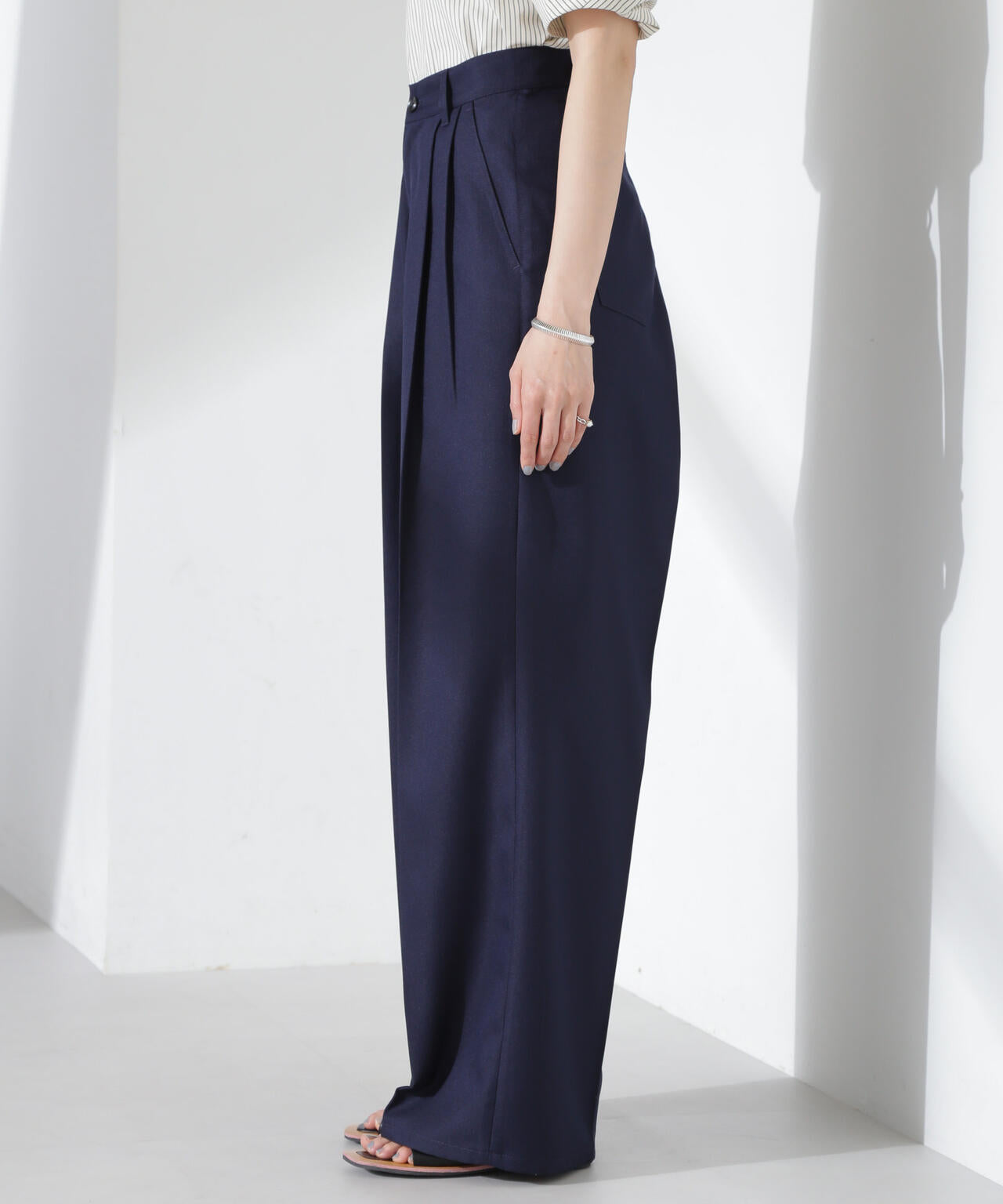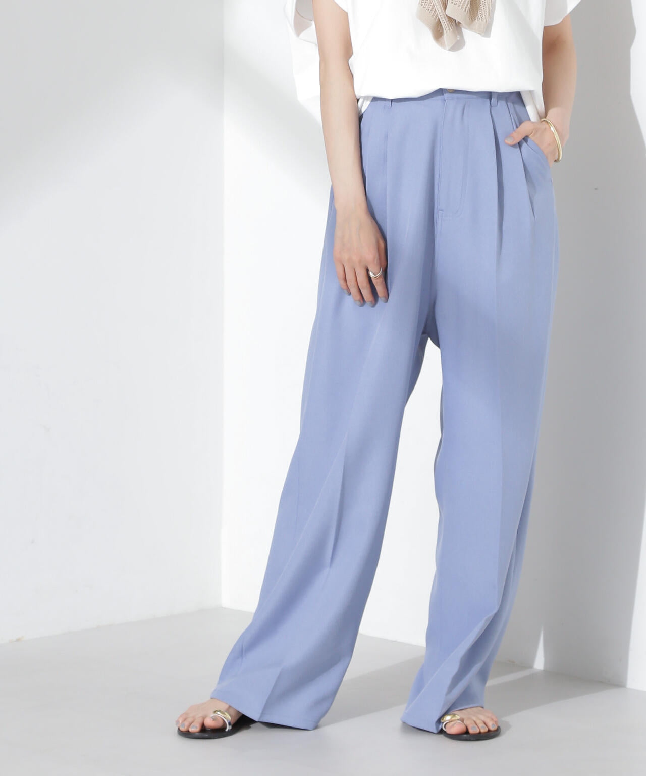 ・ストンと落ちる素材で上品さがあり、キレイ目な印象のパンツ