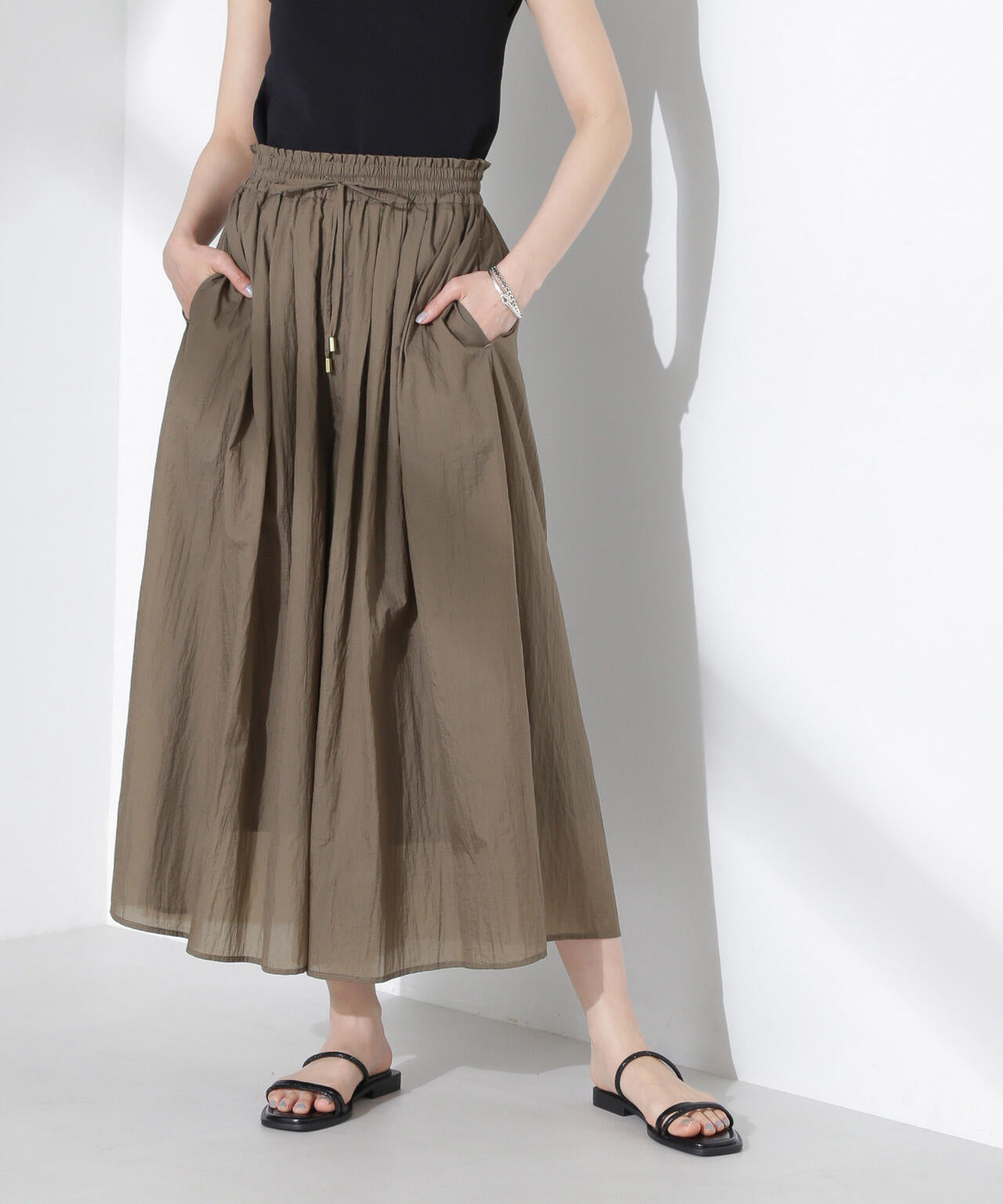 ・ウエストから裾にかけて、たっぷり入ったギャザー