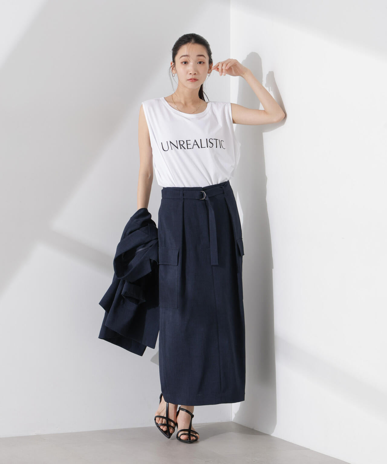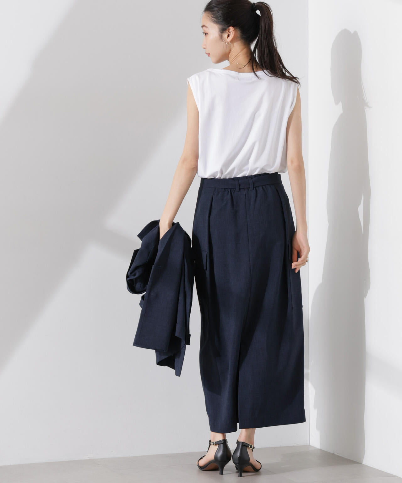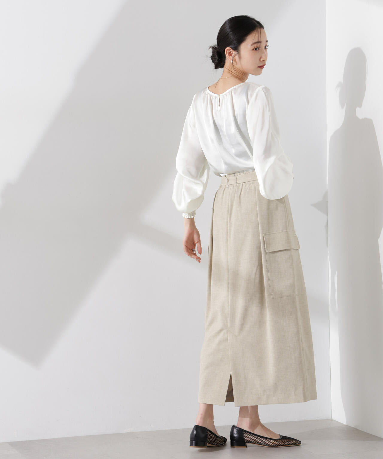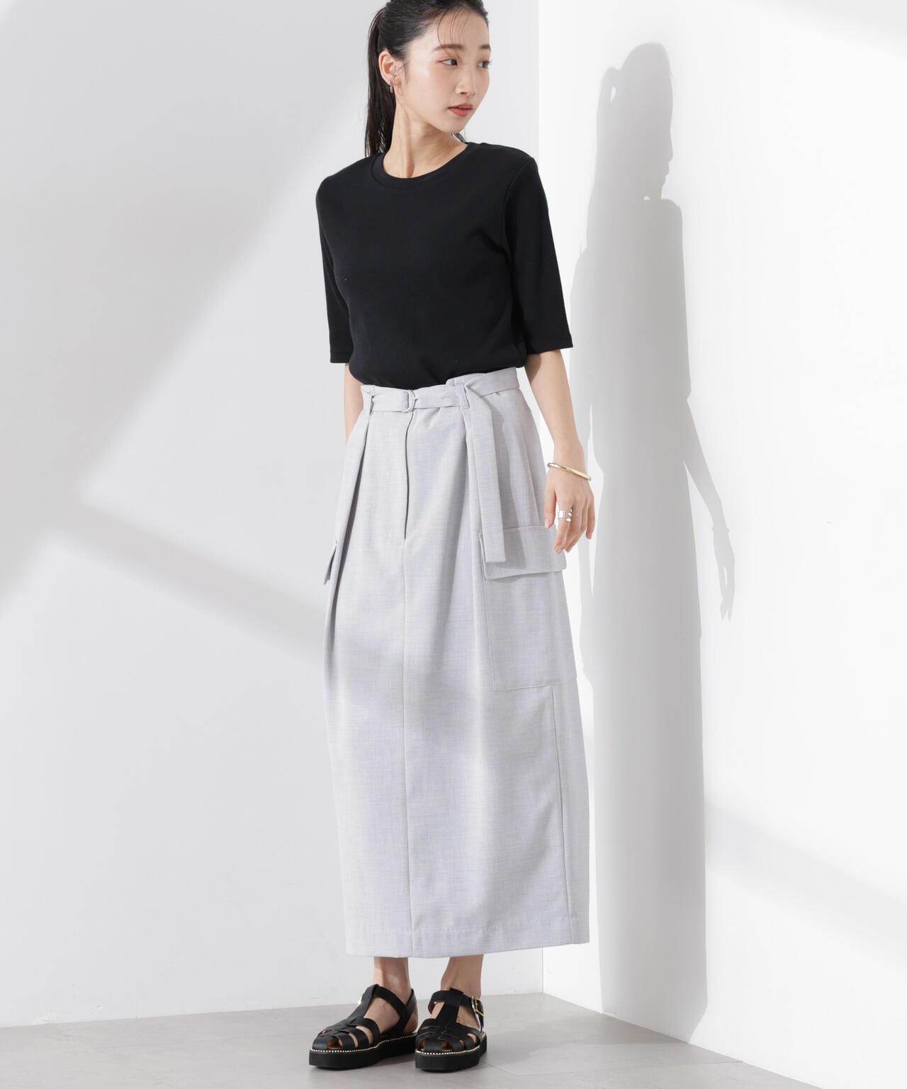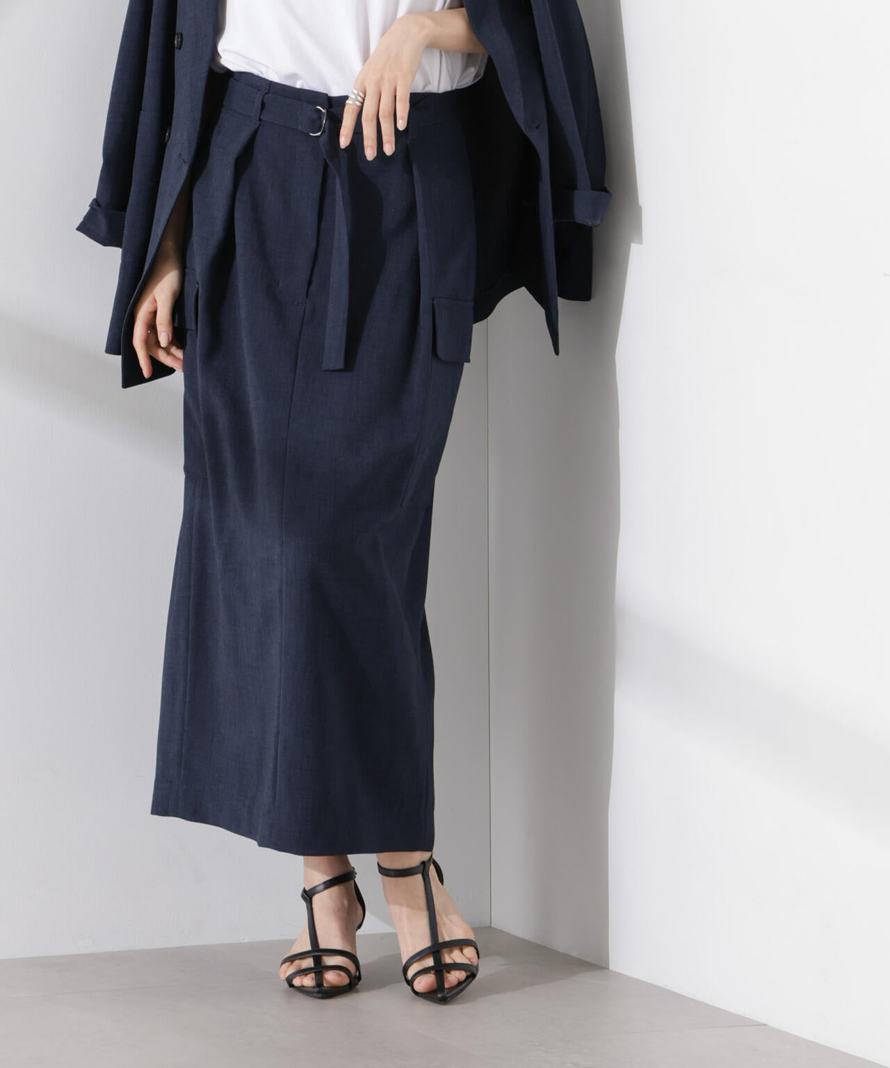 ・トップスの裾をインして共地ベルトをポイントにする着こなしも◎