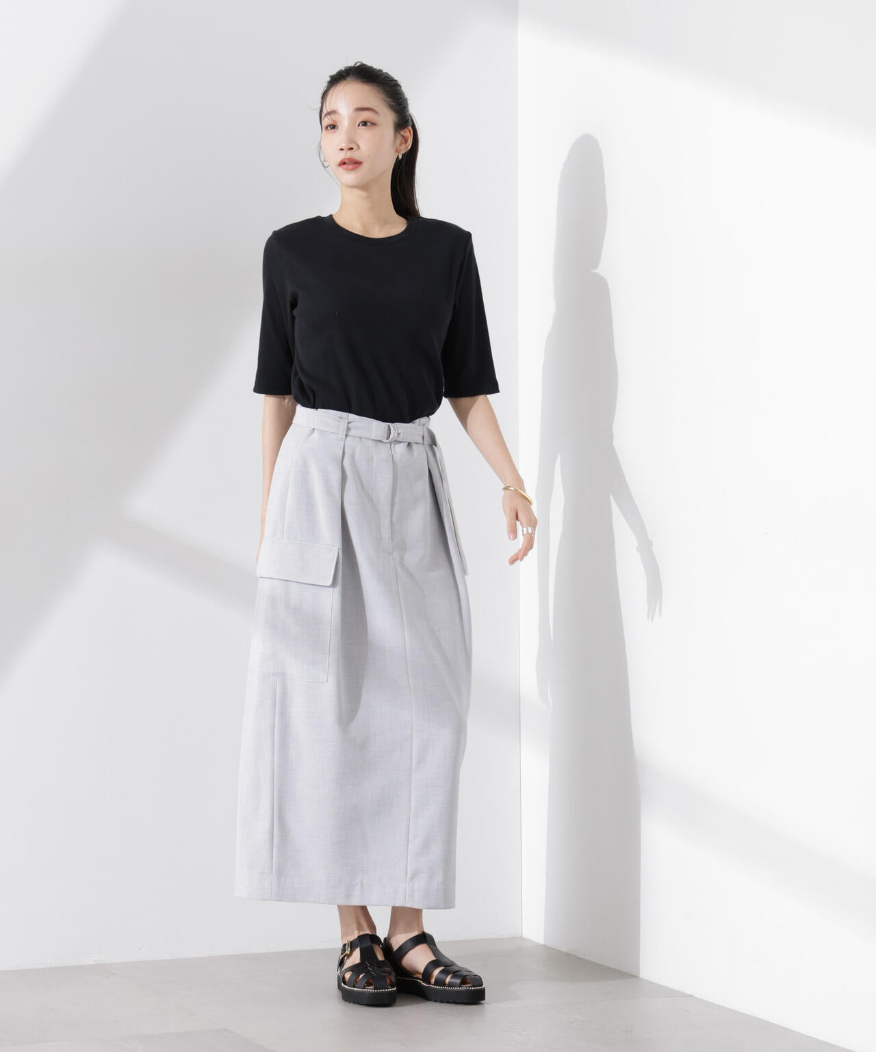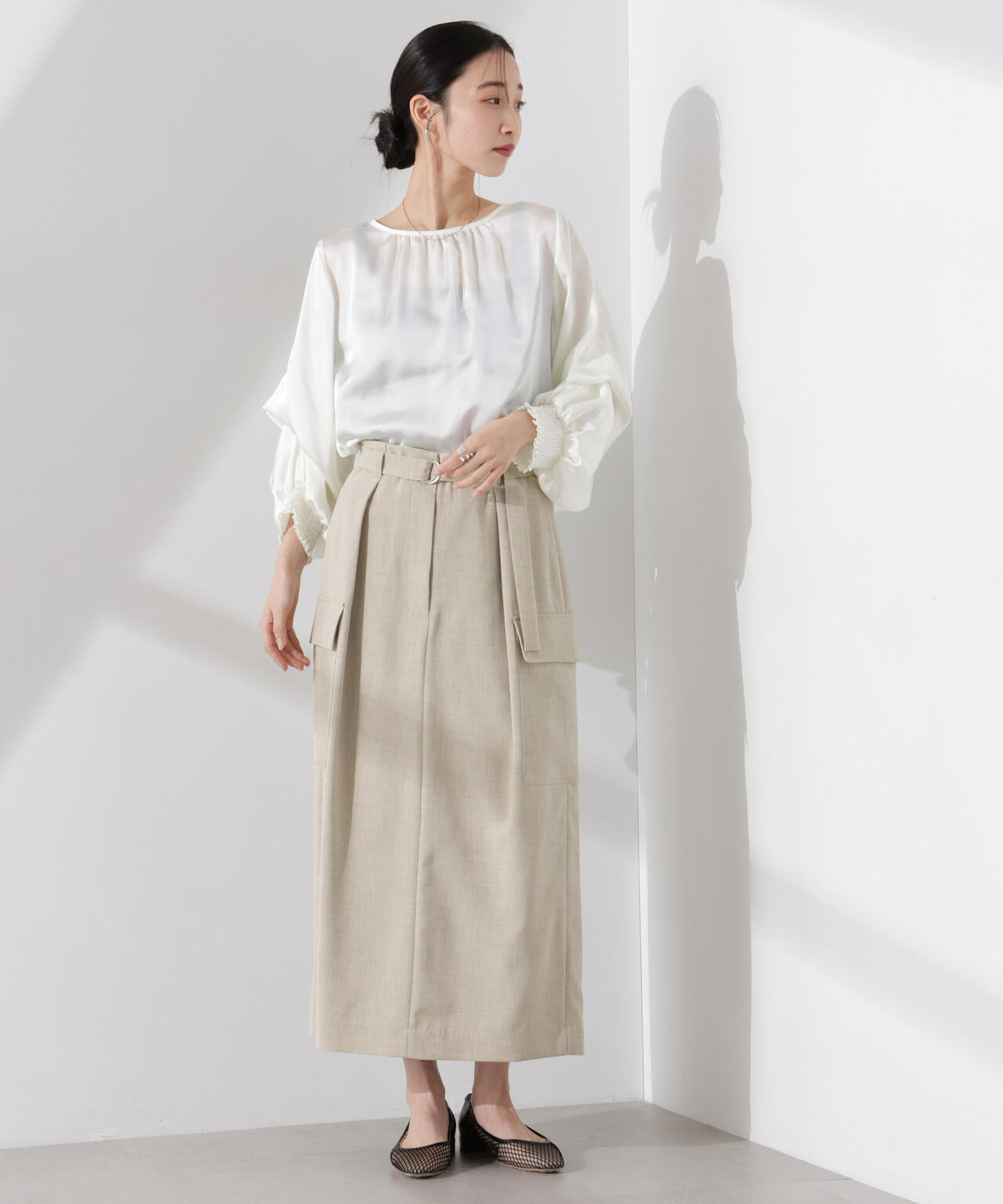 ・体型カバーにも◎なワンタックを効かせたシルエット