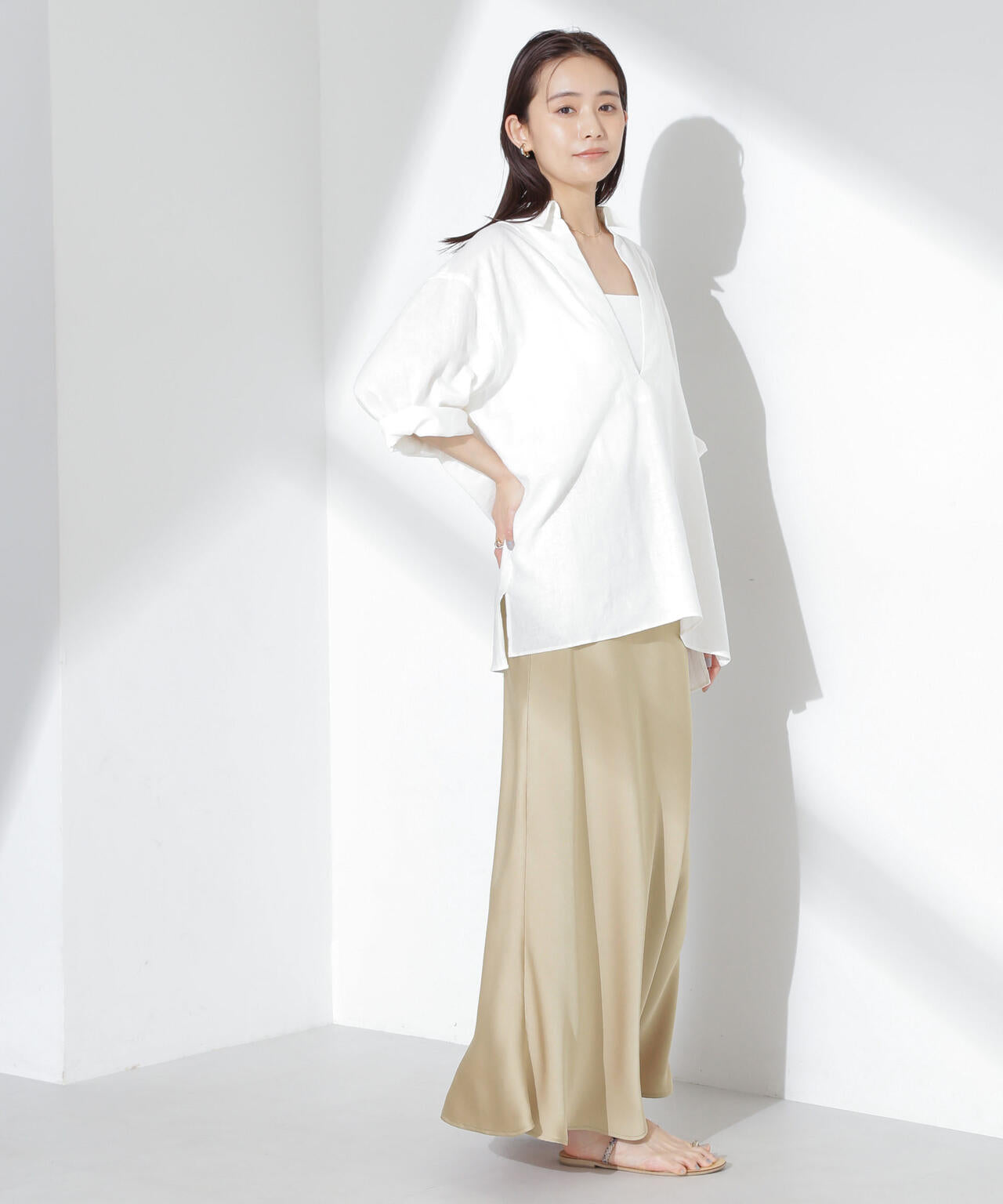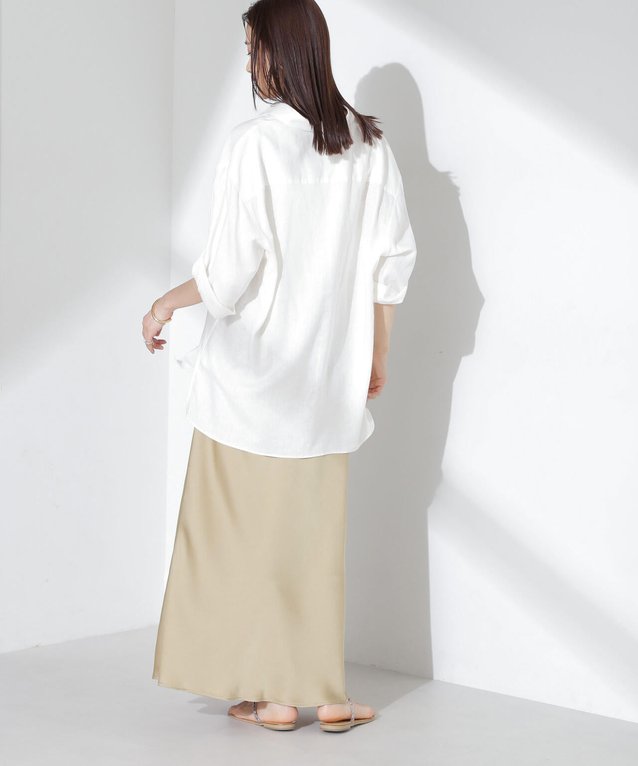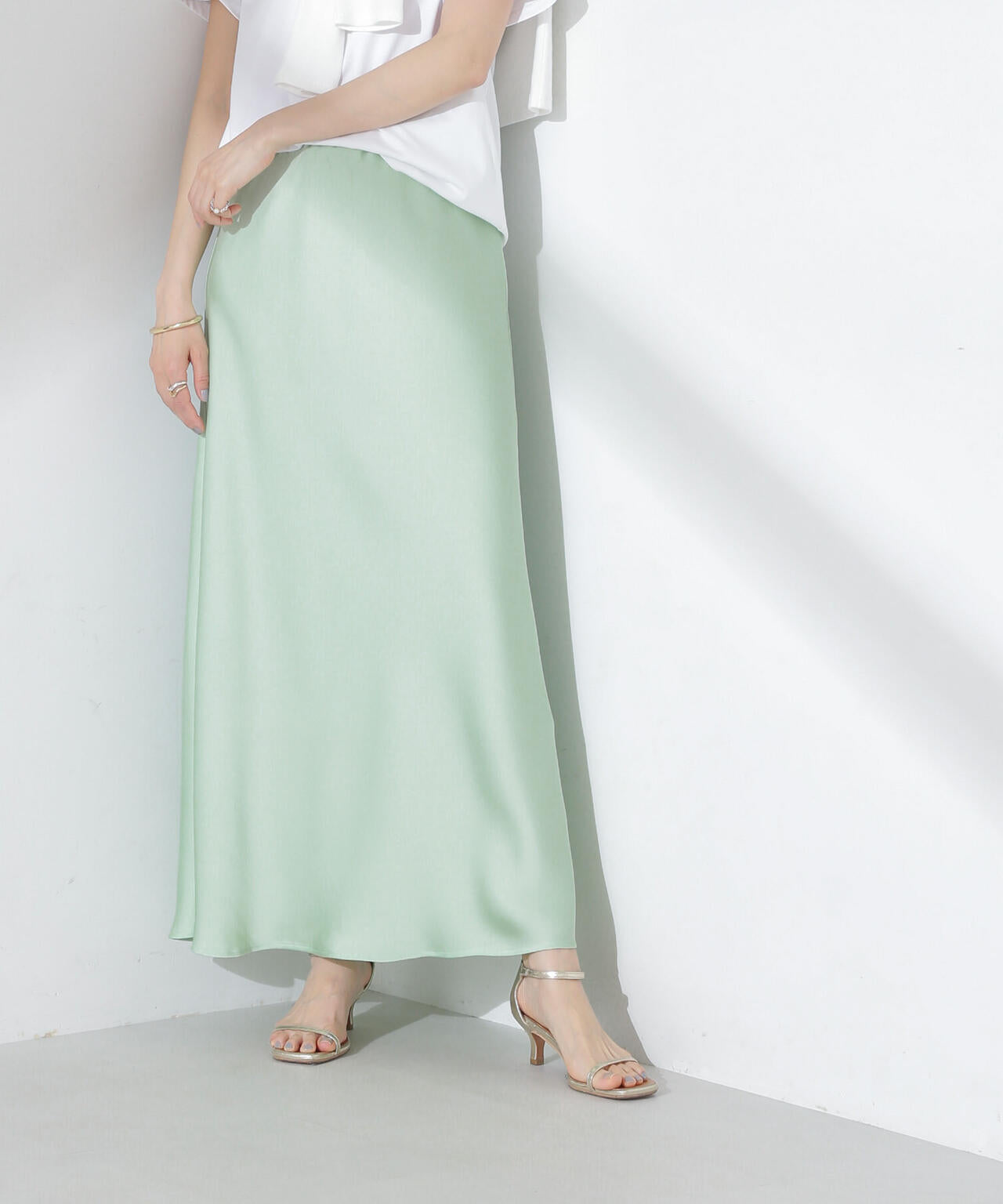 ・上品なサテン素材を使用した女性らしさを引き立つスカート