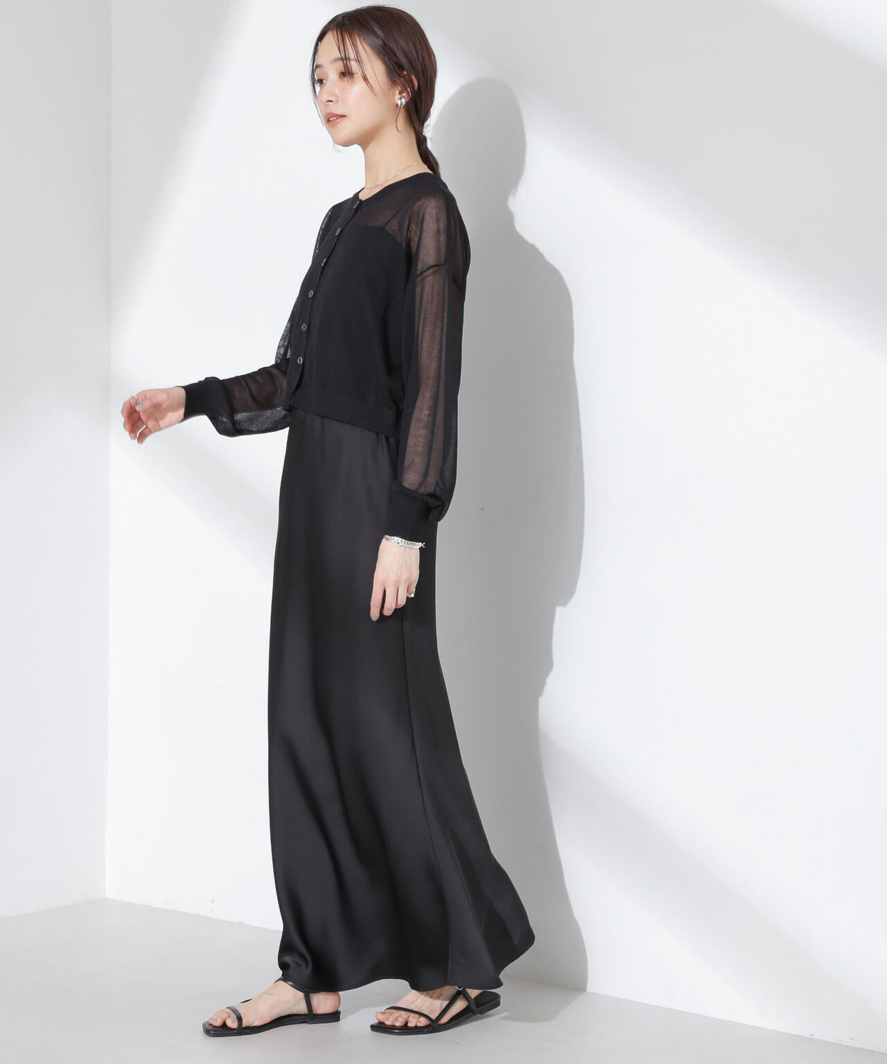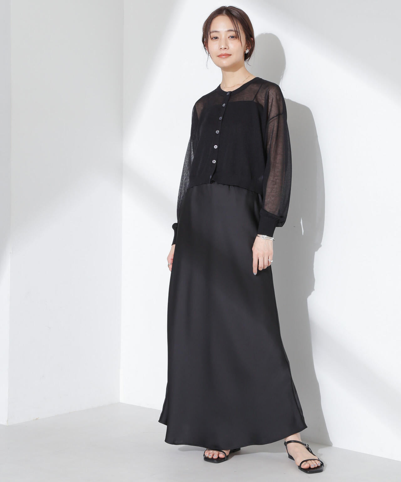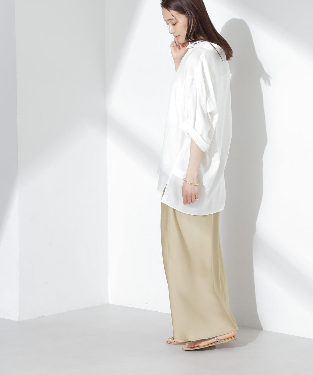 ・上品なサテン素材を使用した女性らしさを引き立つスカート