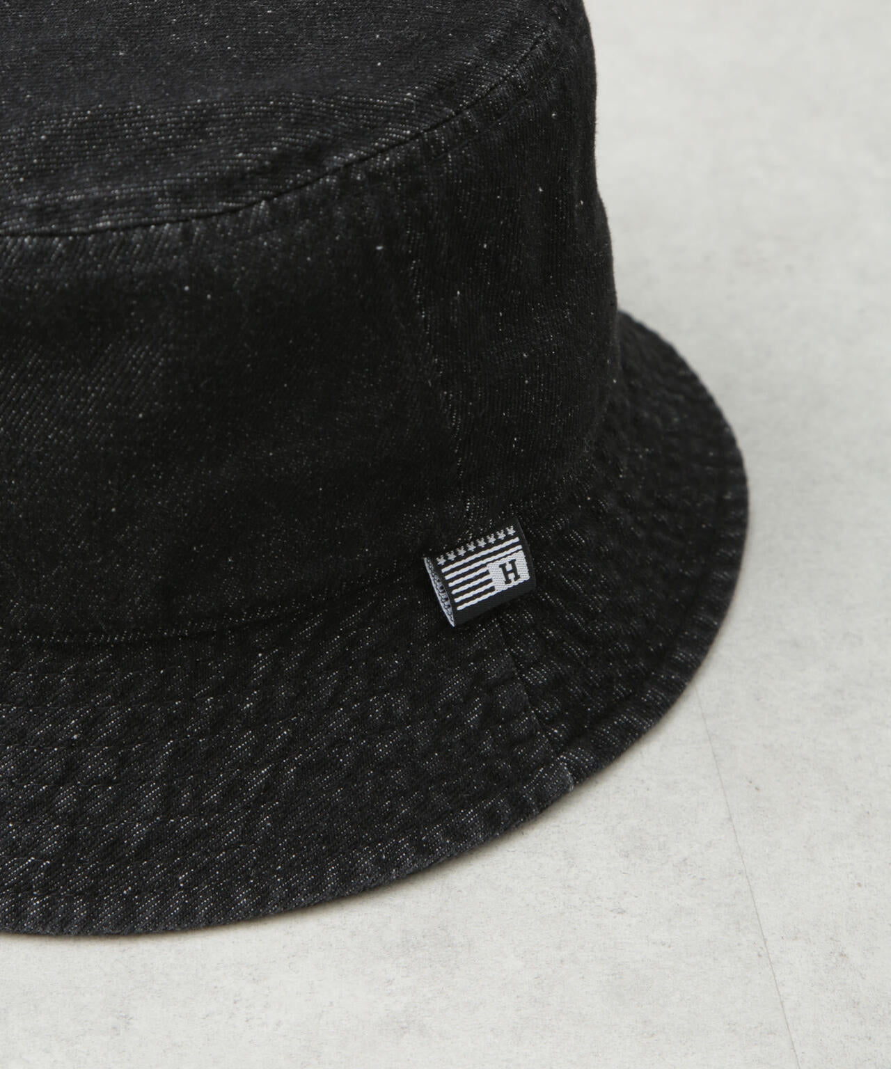 Healthknit×ナノ・ユニバースの別注デニムバケットハット。春夏のタウンユースにぴったりのきれいめ見えするデニム素材で仕立てた一品。カジュアル過ぎず大人っぽい雰囲気のあるデザインが重宝します。