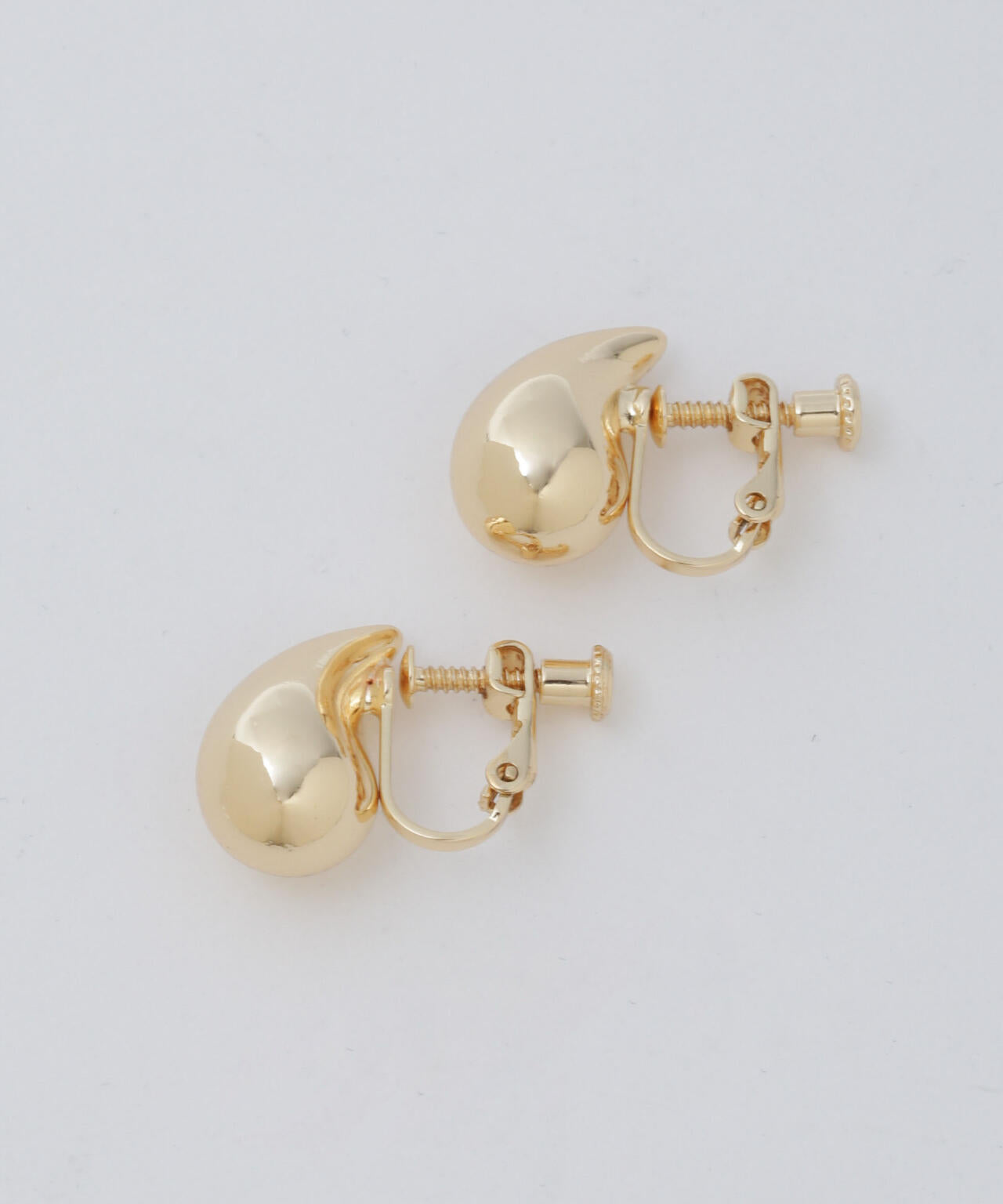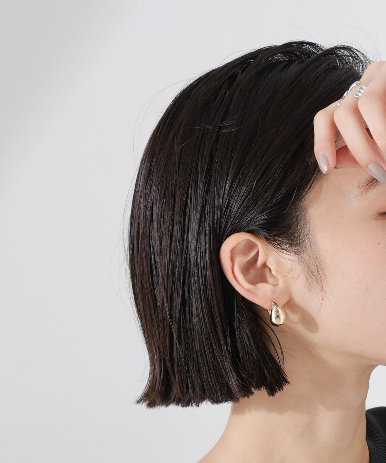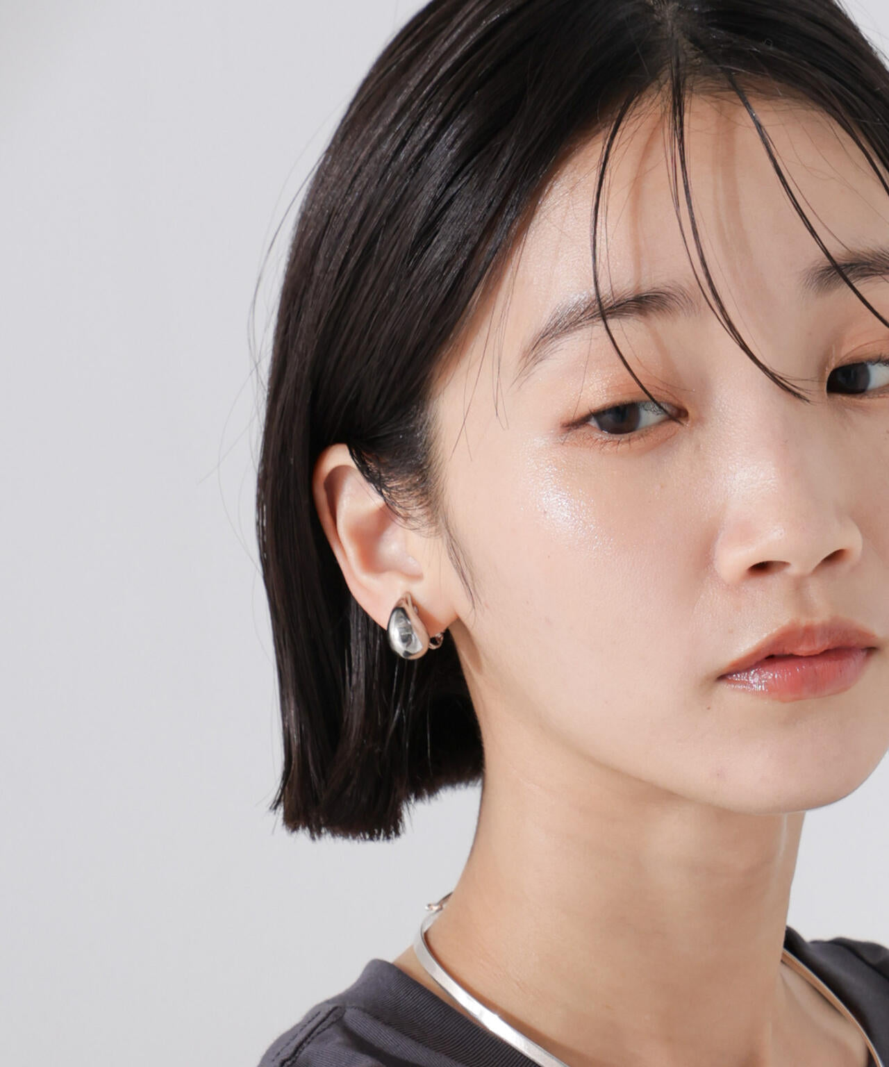 ぷっくりとした立体的なシルエットが可愛いイヤリング。耳元で揺れることで華やかなでエレガントな印象に。メタリックの光沢がポイントになり、スタイリングが締まります。