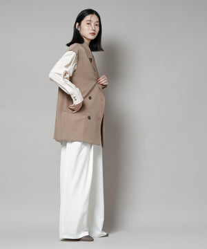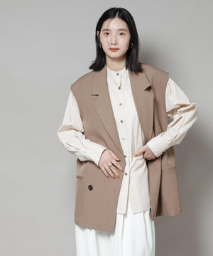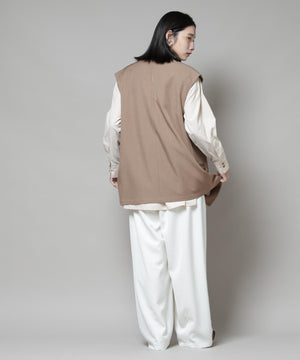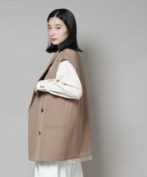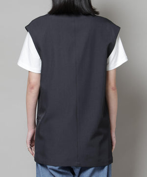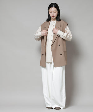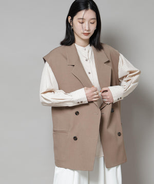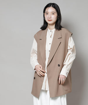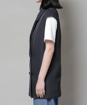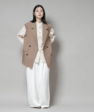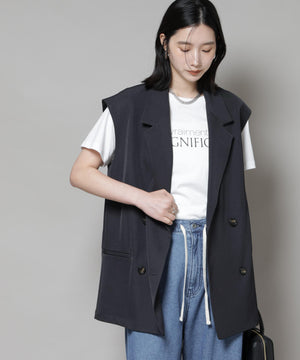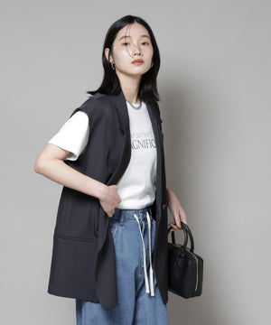 ロングシーズン使えて着るだけでサマになるテーラードジレ。アームホールを大きめに仕立てることでインナーにニットやシャツも合わせやすく、いろんなレイヤードスタイルを楽しめる万能アイテムです!