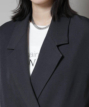 ・きちんと感のあるスタイリングにまとまるテーラードとWボタンデザイン