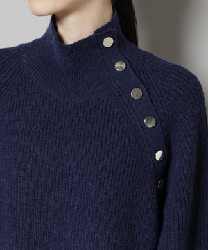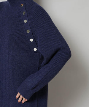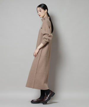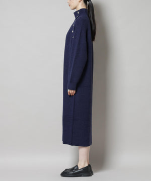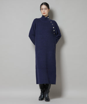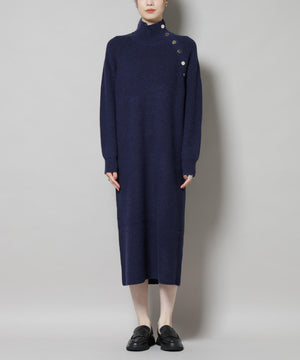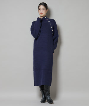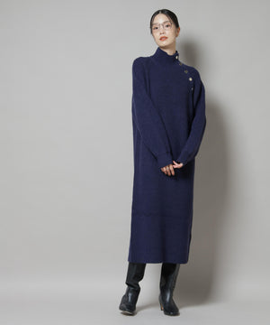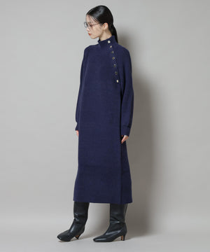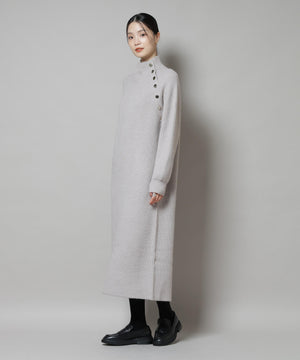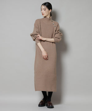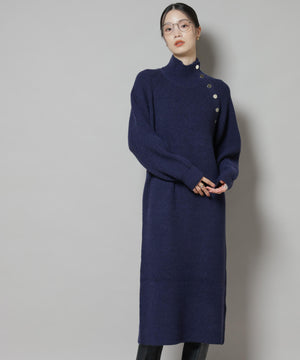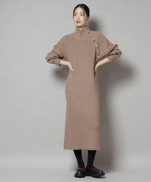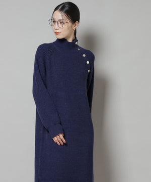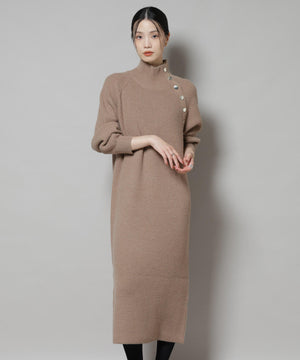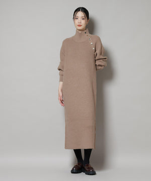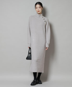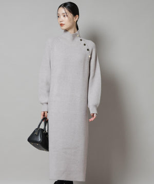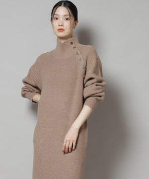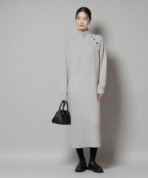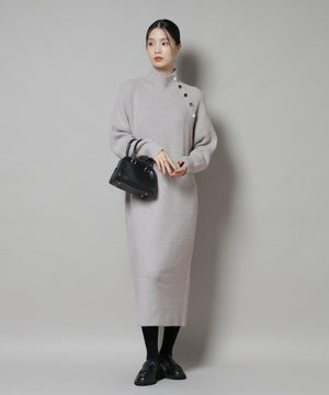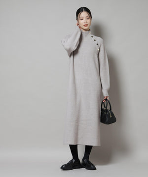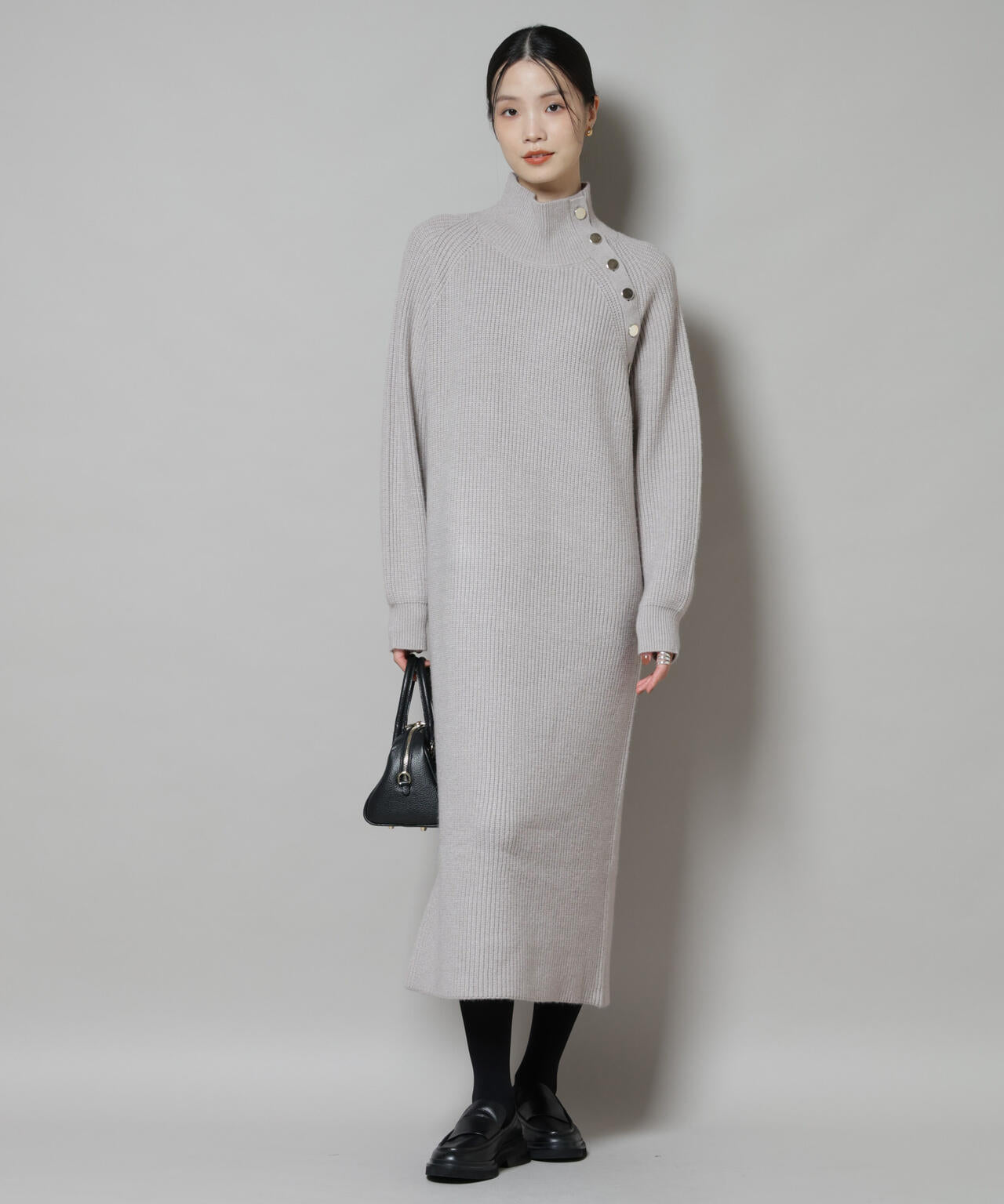 ハイネックの釦ディティールが大人可愛いニットワンピース。カジュアルからキレイ目まで幅広いスタイルに着回せるから、ワードローブに備えておくと重宝しそう!