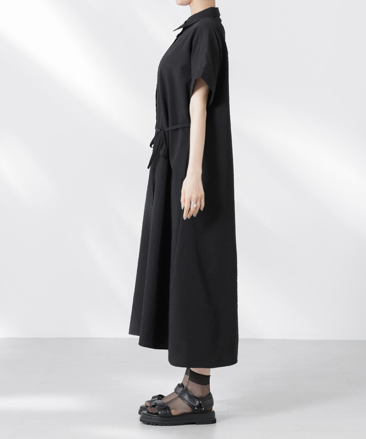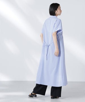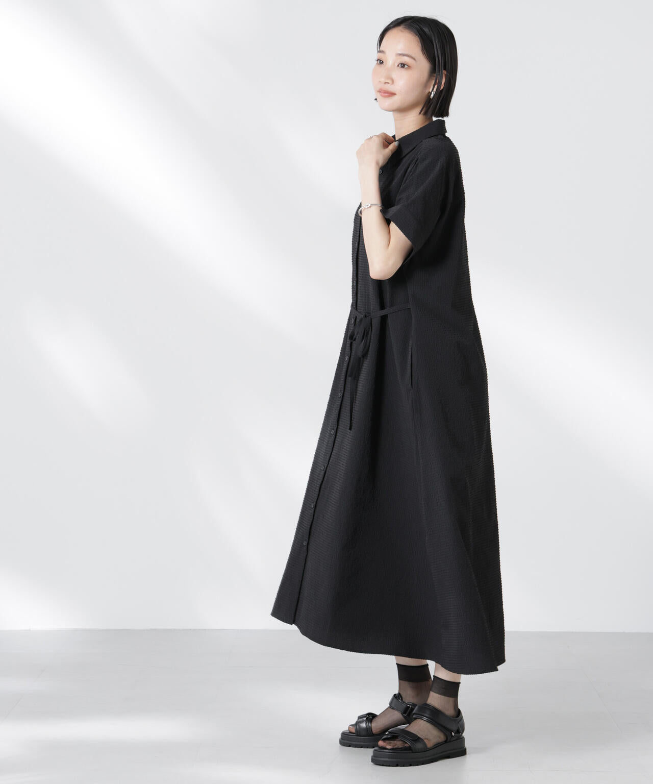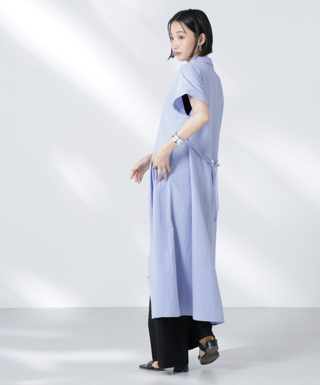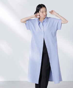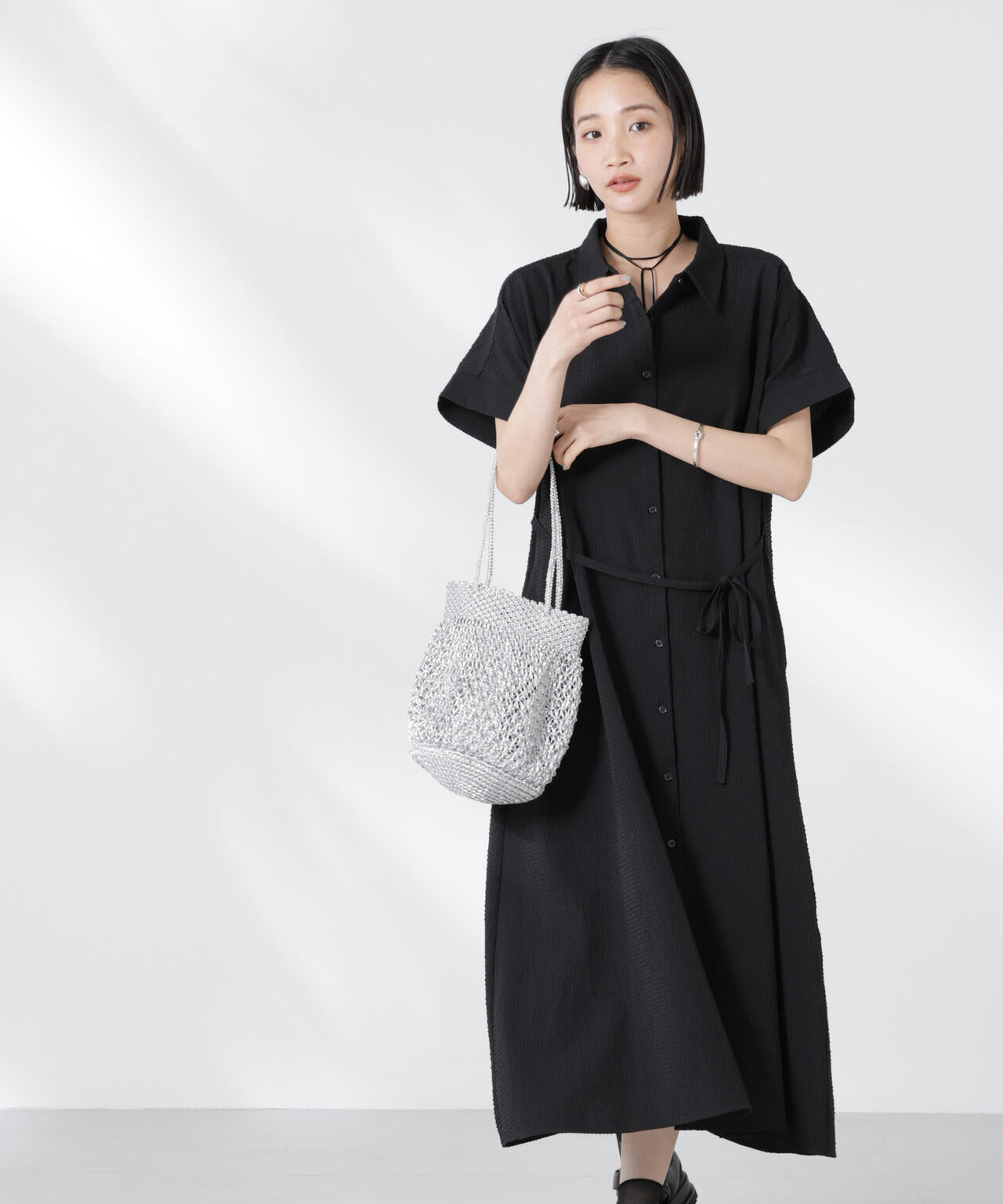 裾に広がるフレアシルエットがリラックス感漂うシャツワンピース。前の釦を閉めてウエストベルトを合わせたり、釦を開けて羽織にしたりとアレンジも可能。シワになりにくくお手入れしやすい素材なのでデイリーユースにピッタリの一枚です。
