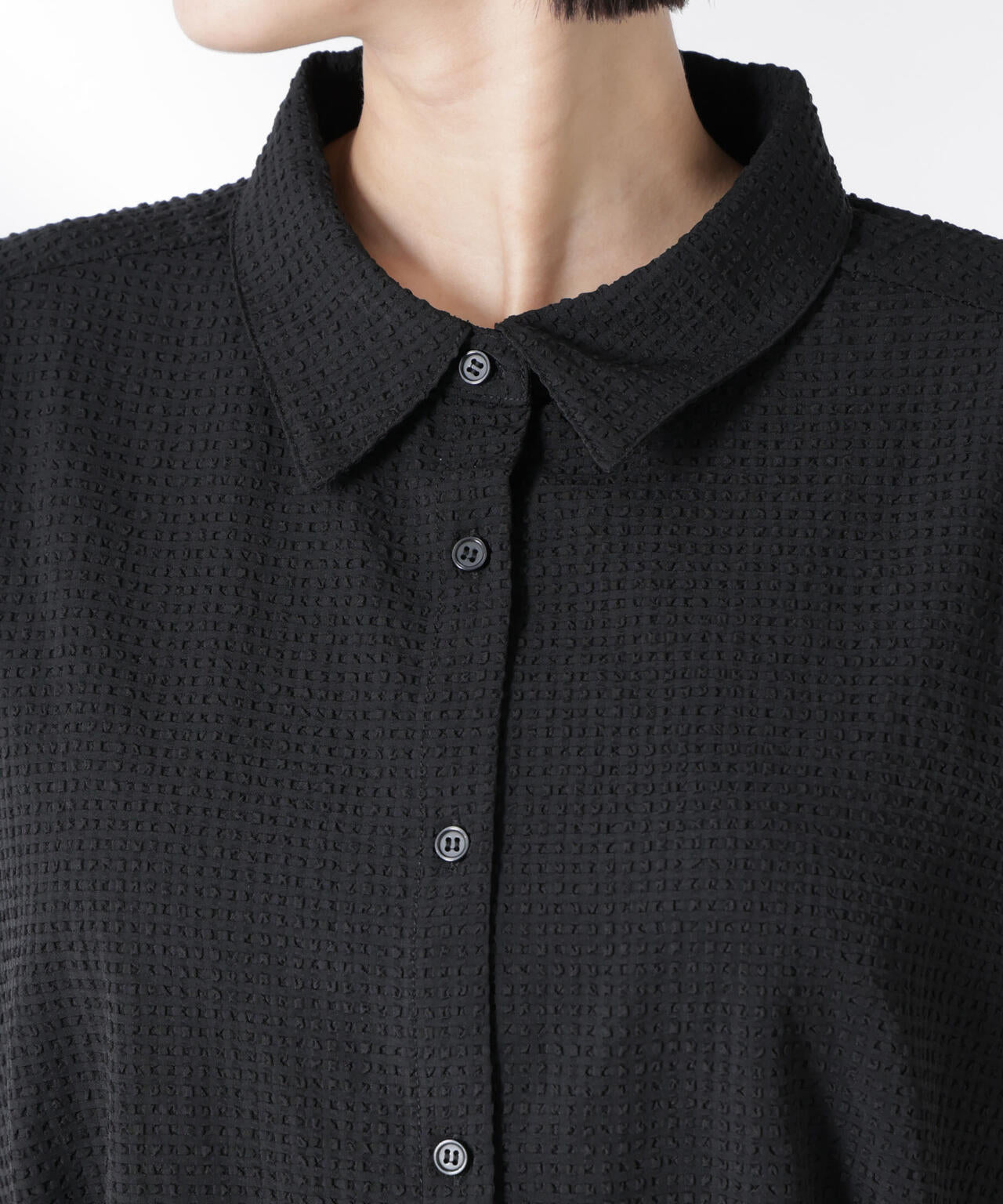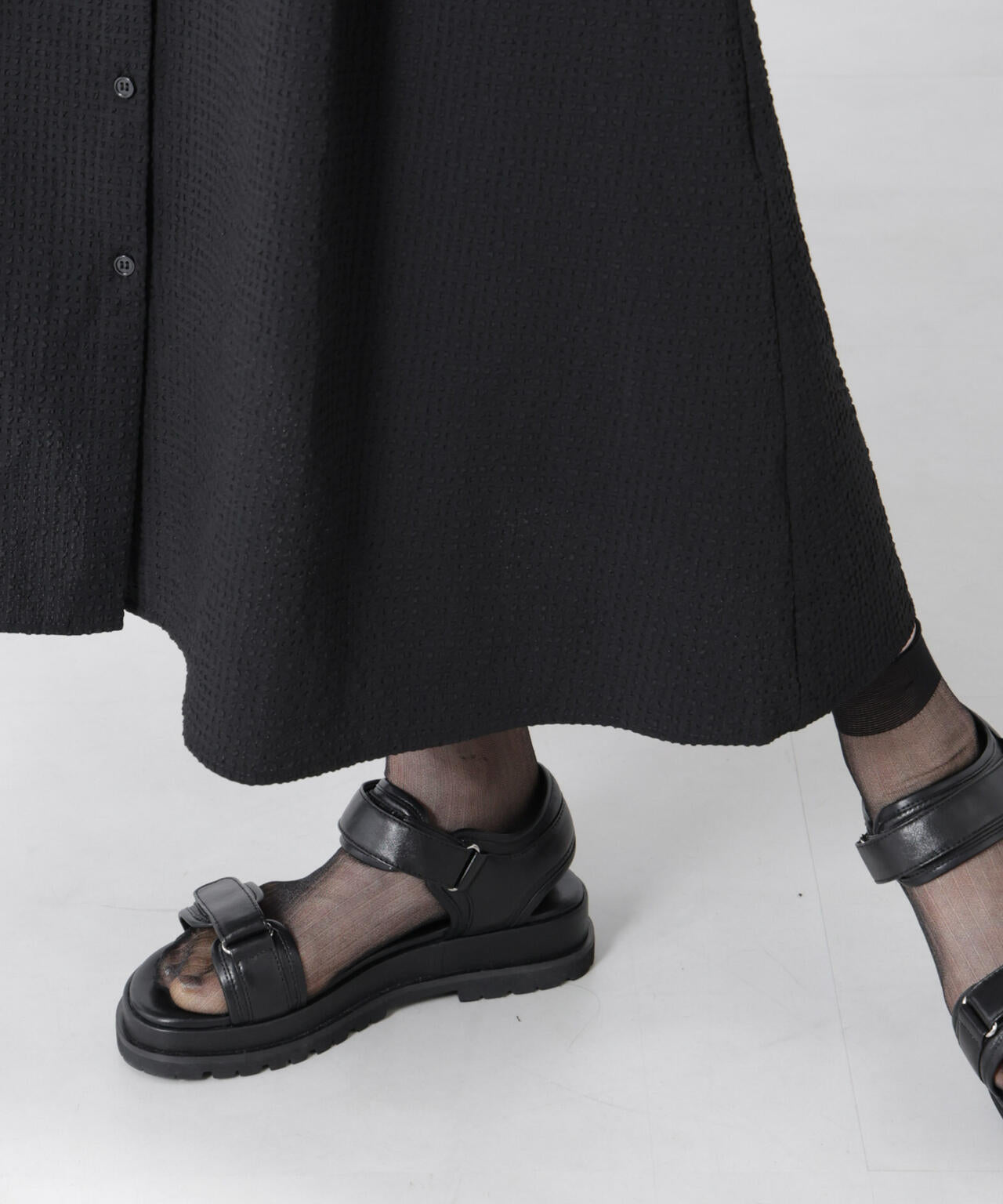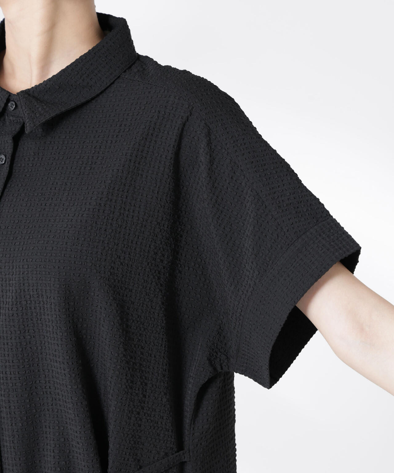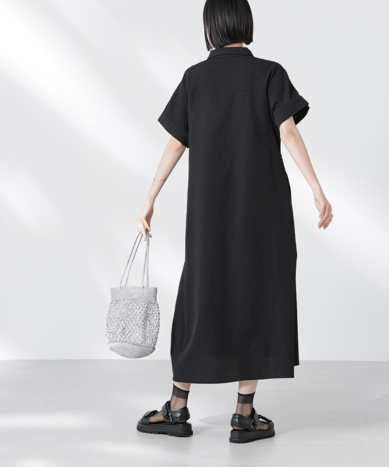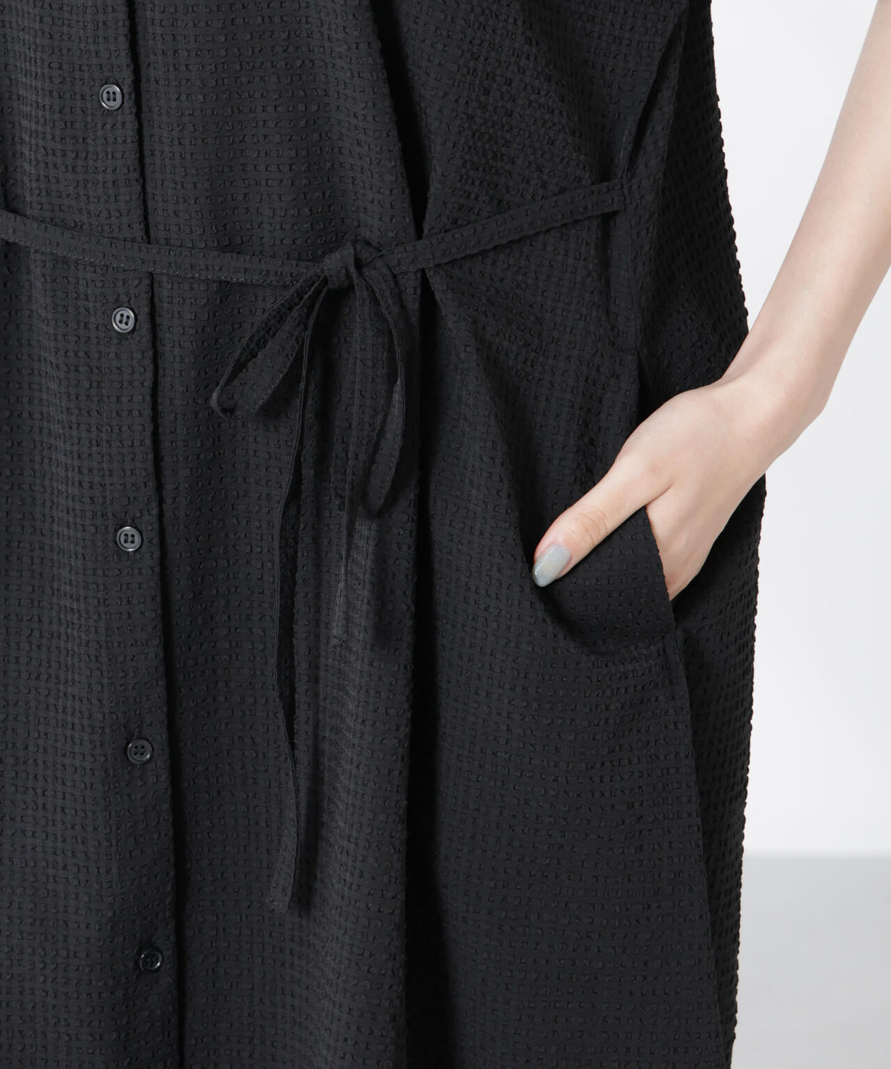 裾に広がるフレアシルエットがリラックス感漂うシャツワンピース。前の釦を閉めてウエストベルトを合わせたり、釦を開けて羽織にしたりとアレンジも可能。シワになりにくくお手入れしやすい素材なのでデイリーユースにピッタリの一枚です。