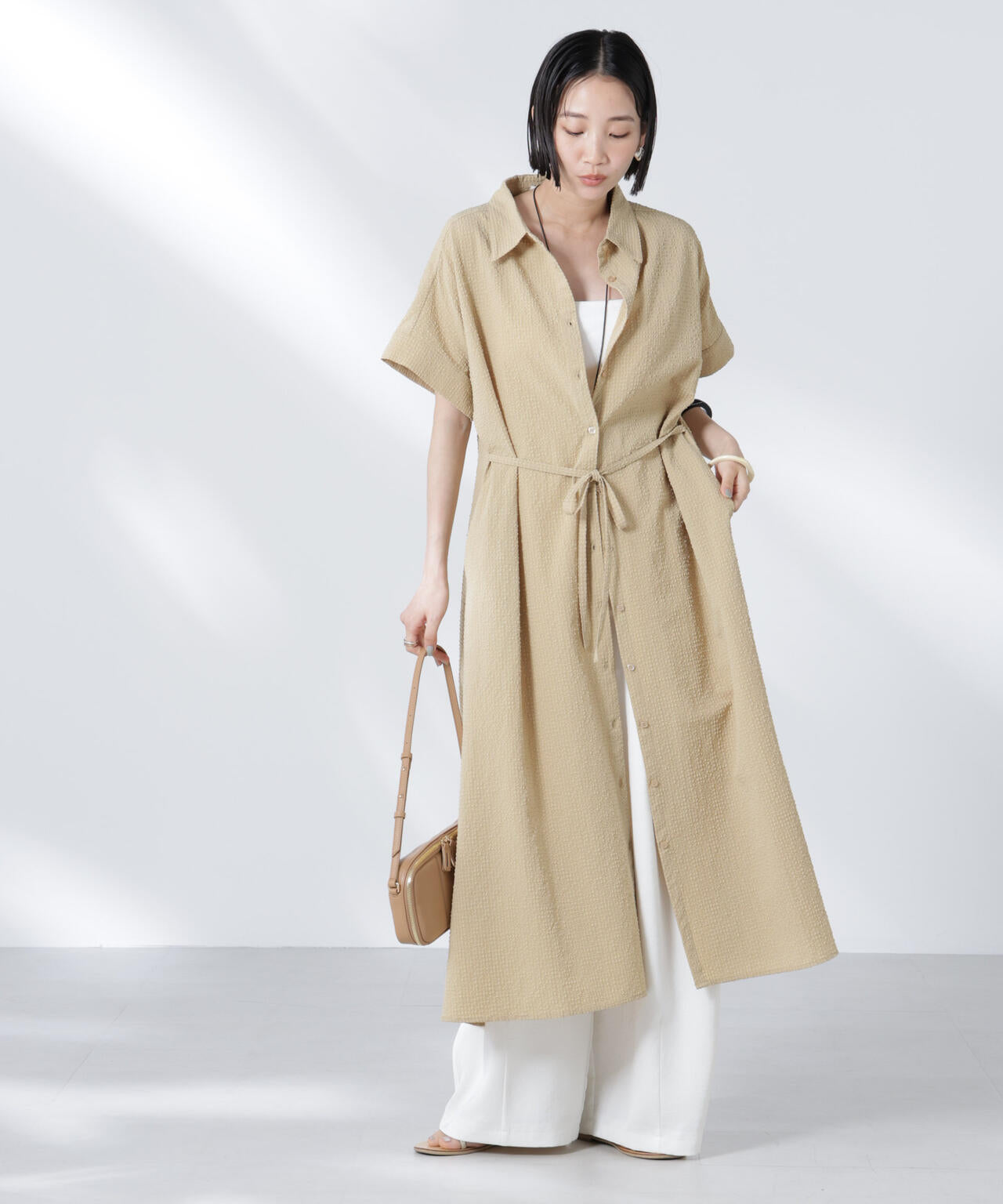 ◆ご好評のシャツワンピースが新色(ベージュ)追加で再登場!◆