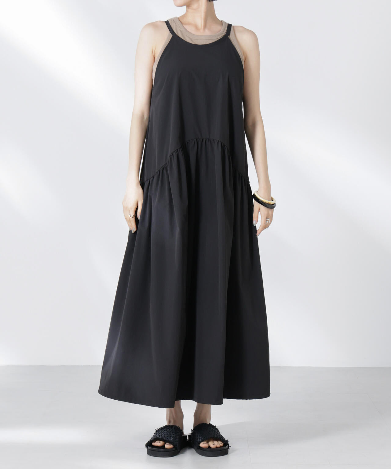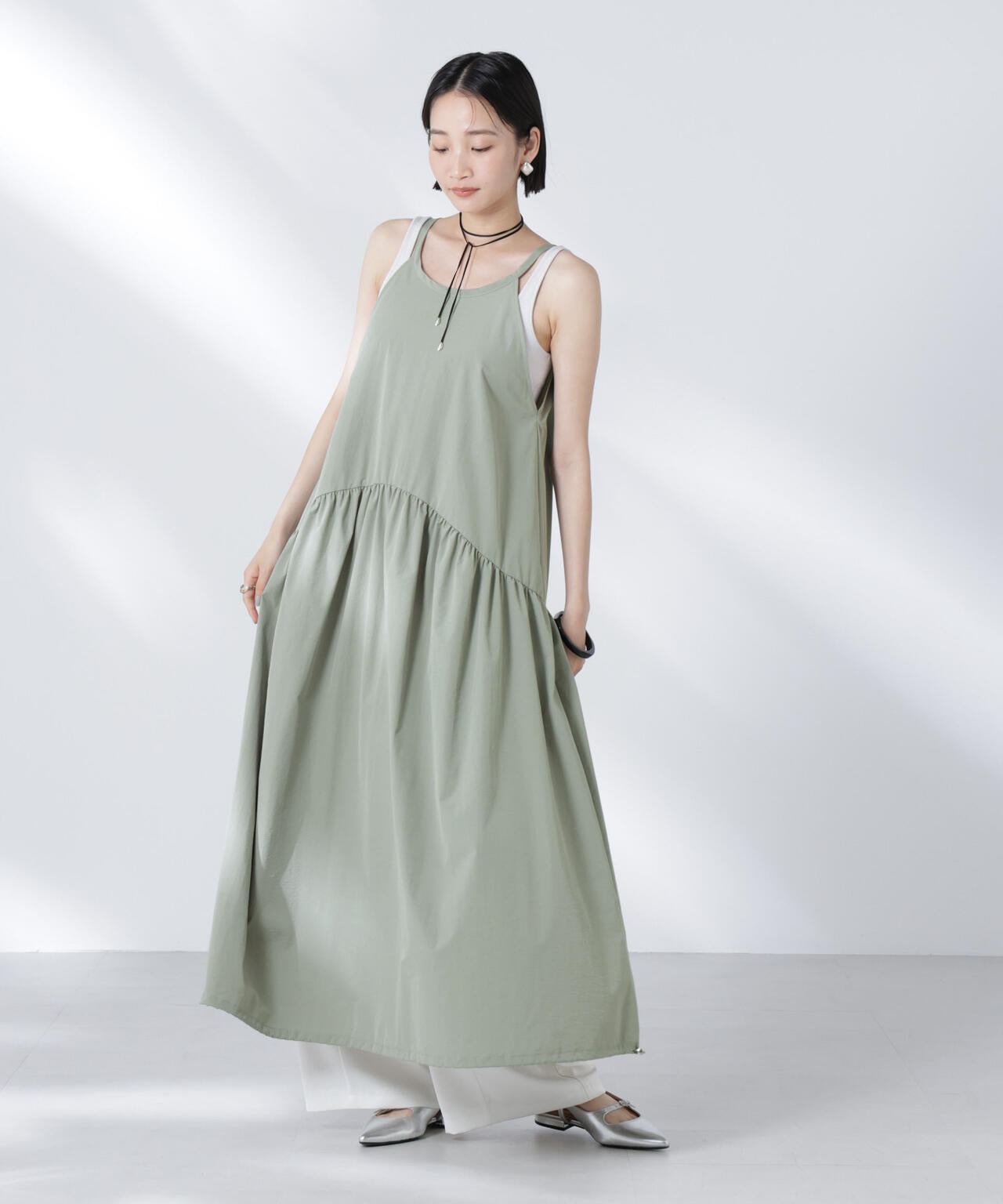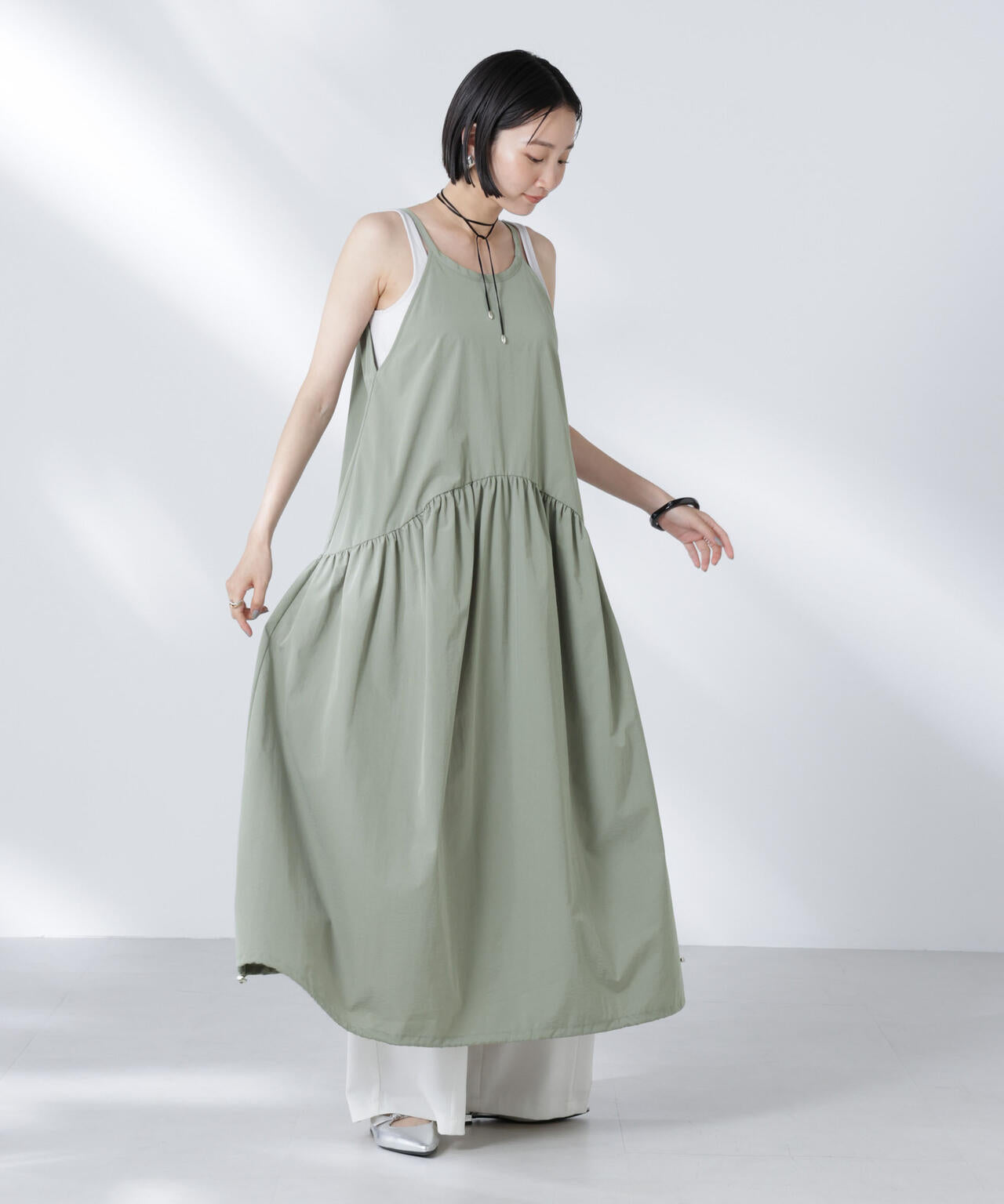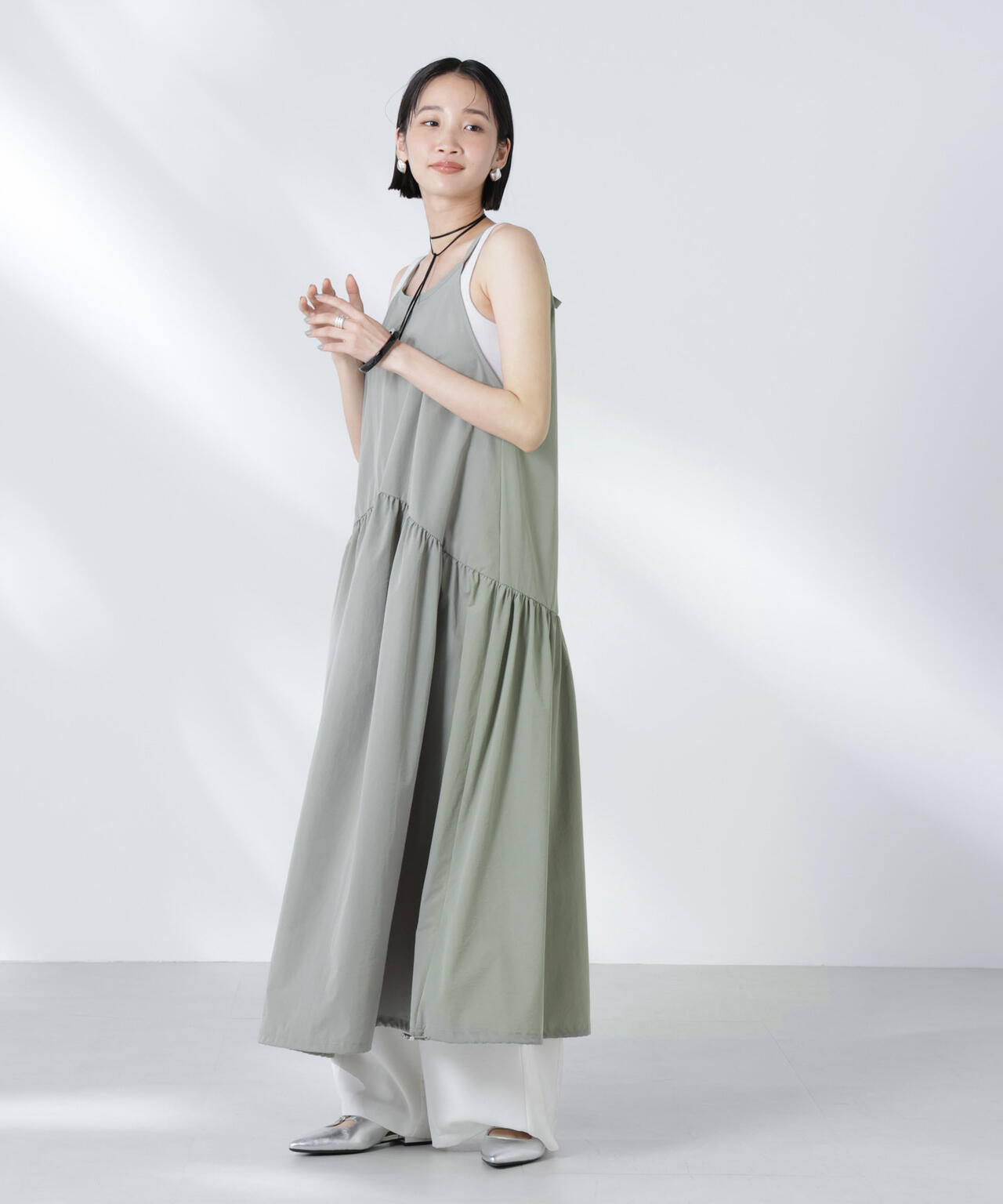 ・上身頃はすっきりと、切り替えから裾にかけてボリュームを出したリラクシーなサイズ感