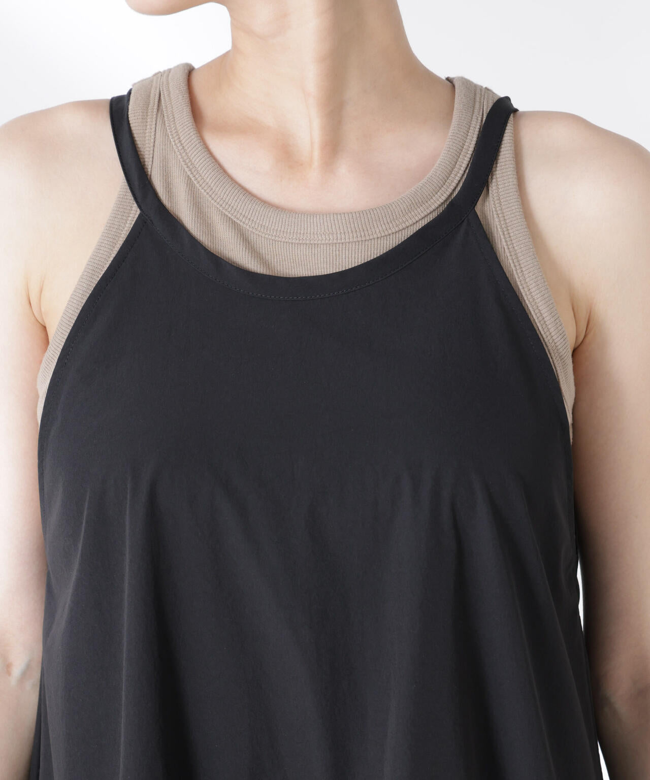 ・カップ付きキャミソールをインして、デニムパンツをレイヤードしても◎