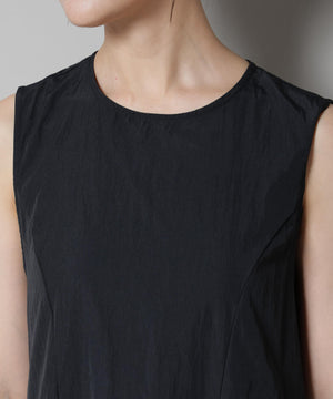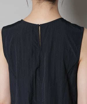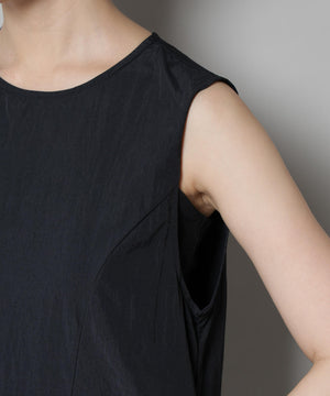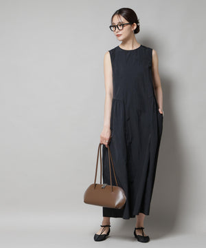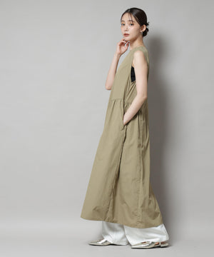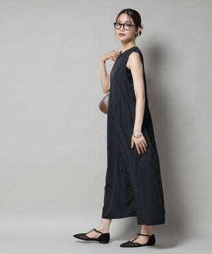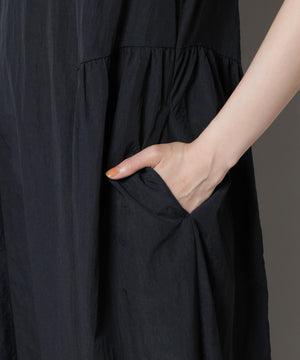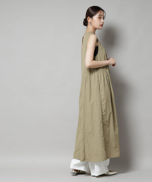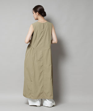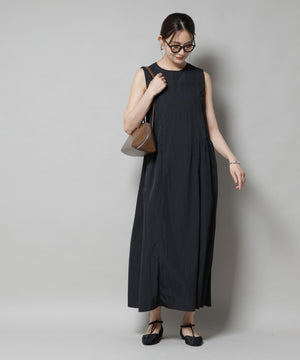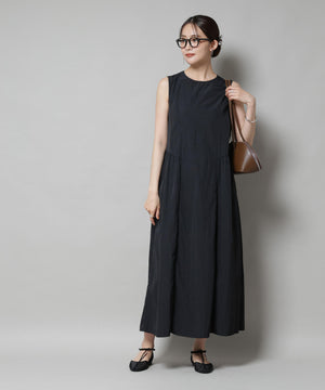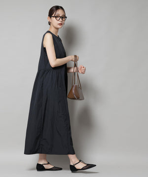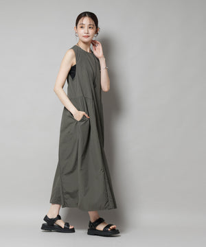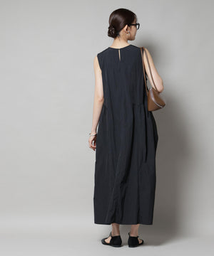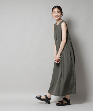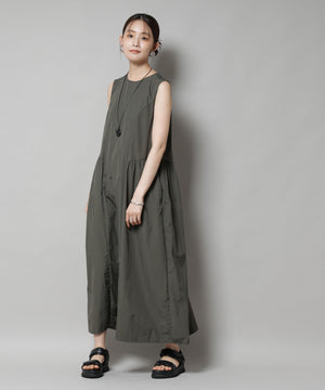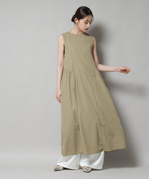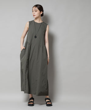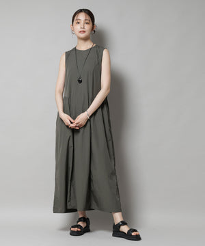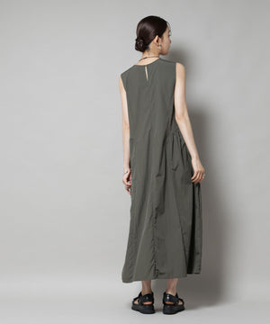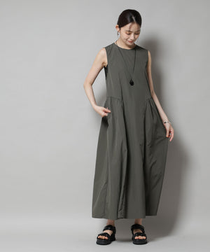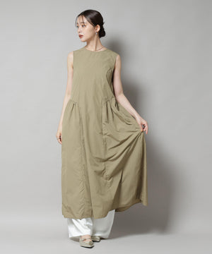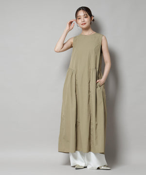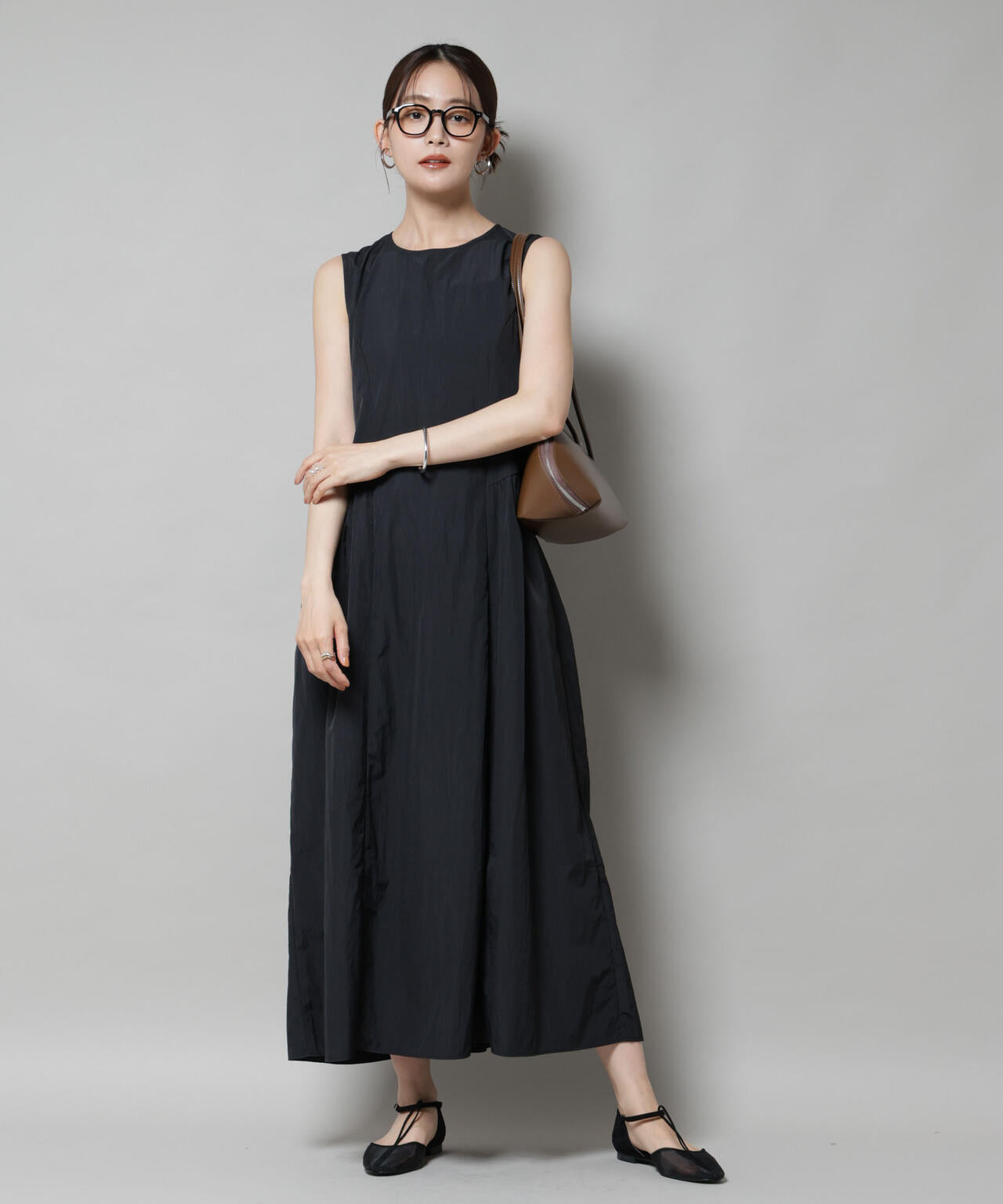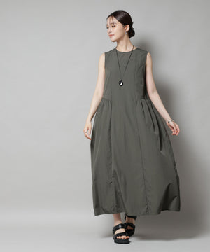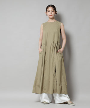 大人っぽく女性らしいスタイルが叶う、ナイロン素材のノースリーブワンピース。サイドに立体的なギャザーデザインを施したフワっと広がるシルエットがこなれた雰囲気を演出。1枚での着こなしはもちろん、上からジレやジャケットを羽織ってもサマになります。