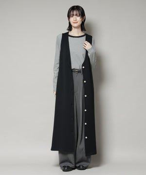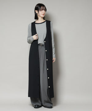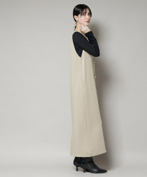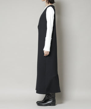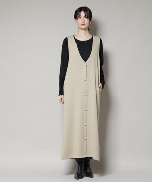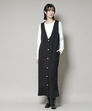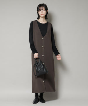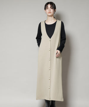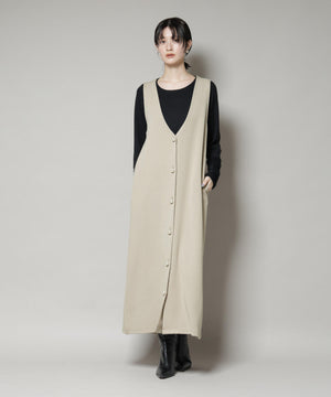 ・深Vネックがレイヤード映えするロングジレデザインのワンピース