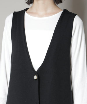 ・デザインカットソーとロングジレがセットになったアンサンブルワンピース